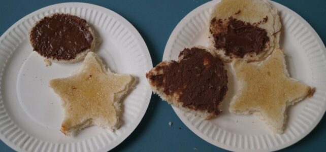 Grupa młodsza próbowała swoich sił przy robieniu „Kosmicznych” kanapek. Musimy przyznać, że robienie ich sprawiło dzieciom największą frajdę i kanapki były przepyszne.