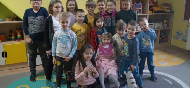 Dzisiaj swoje czwarte urodziny obchodziła Patrycja. Cała społeczność przedszkolna złożyła jej najlepsze życzenia. Dzieci solenizantce życzyły dużo radości, zdrówka oraz pysznego tortu i mnóstwa prezentów.