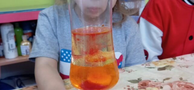 Grupa starsza w tym tygodniu realizowała temat kompleksowy dotyczący dziecięcego laboratorium. W związku z tym wykonaliśmy ciekawe i kolorowe eksperymenty.