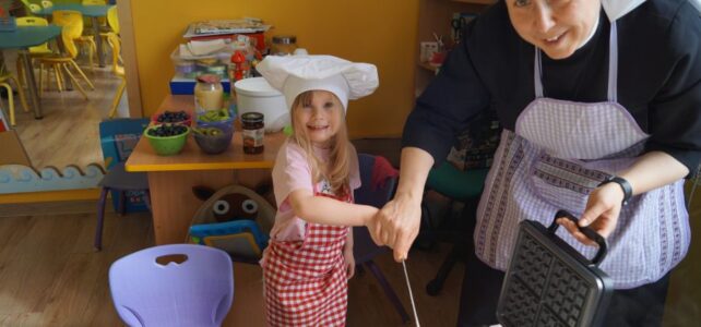 Smakowite zapachy unosiły się dzisiaj w przedszkolu, a to za sprawą naszych maluchów, które podczas zajęć z „Kuchcikowa” piekły gofry. Na szczęście zrobiły ich tak dużo, że mogły podzielić się z resztą przedszkolaków;).