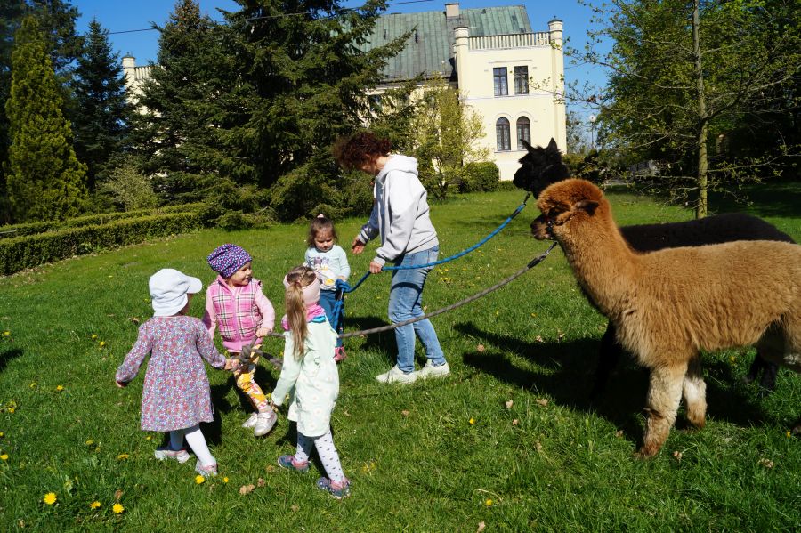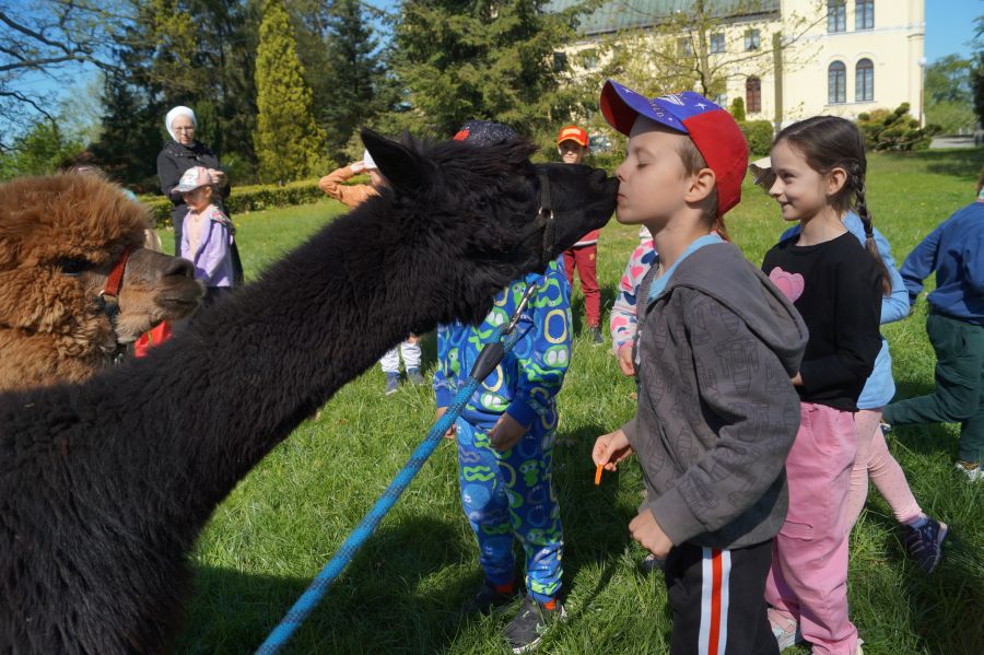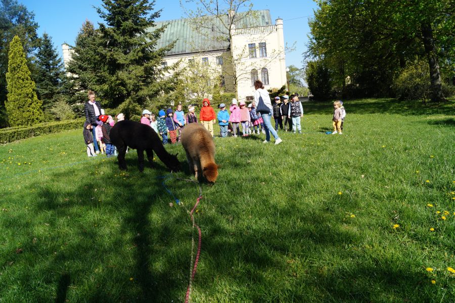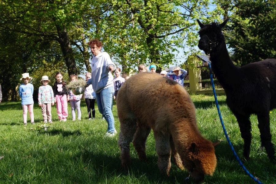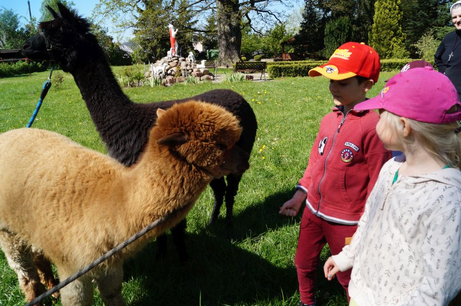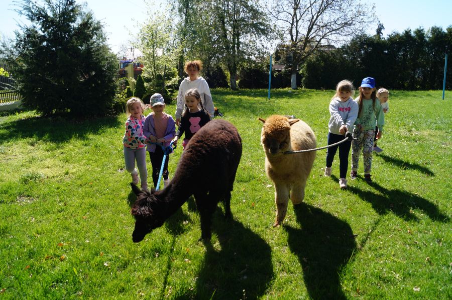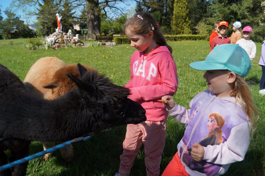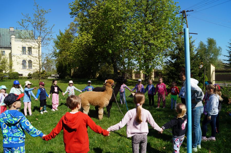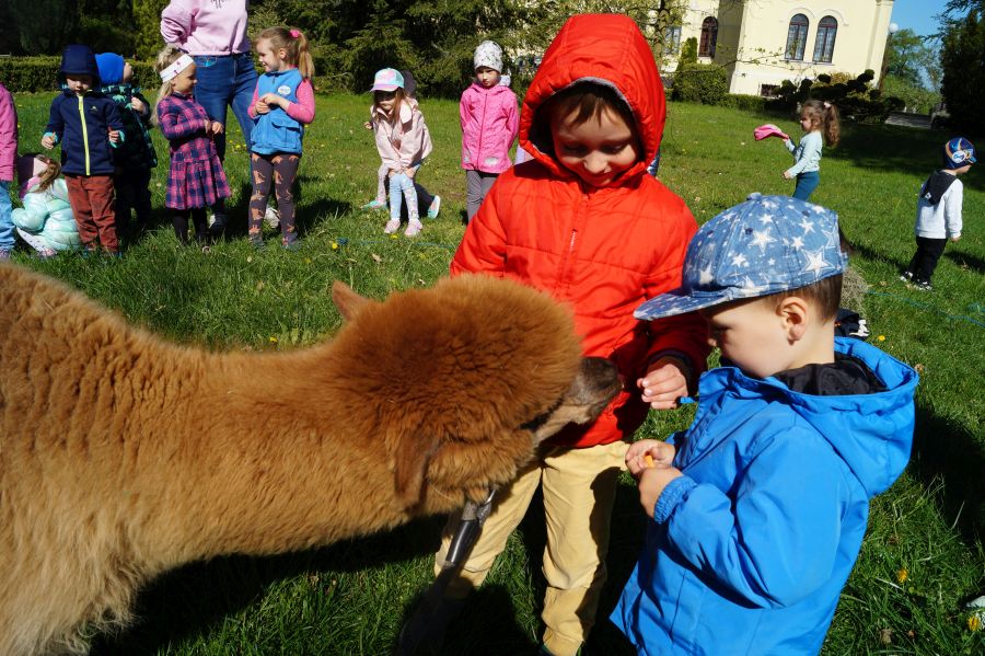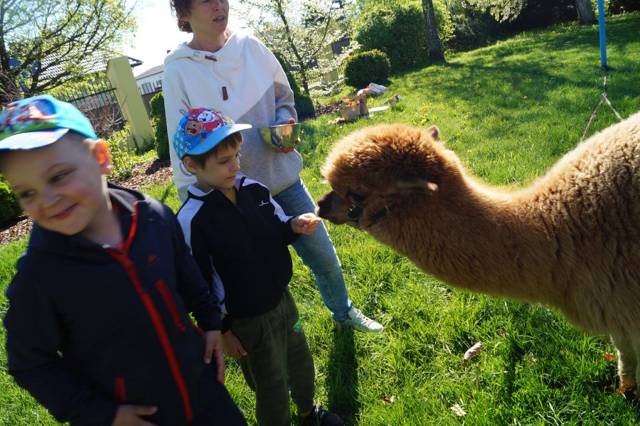 Dziś w przedszkolu niecodzienni goście, maluchy mówiły, że koniki, ale nie mogły na nich jeździć… Odwiedziły nas alpaki- Groszek i Cynamon, wraz z opiekunką ze „Stacji Alpaki” z Kruszyńca. Dzieci dowiedziały się wielu ciekawostek, mogły nakarmić i oprowadzać zwierzęta.