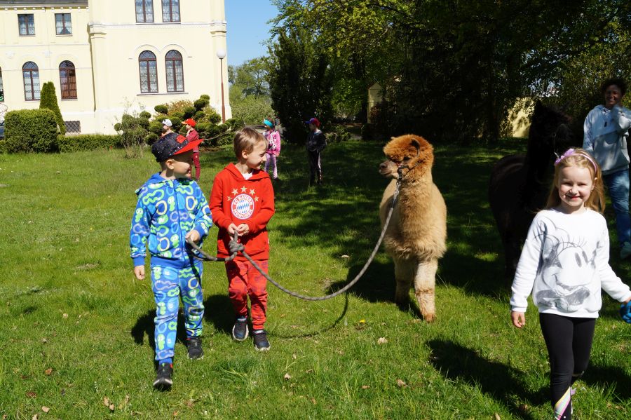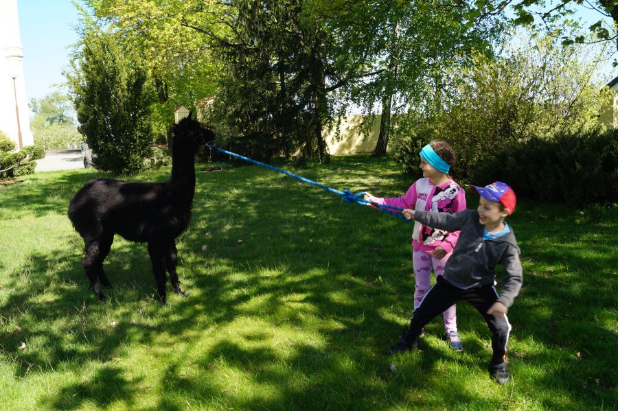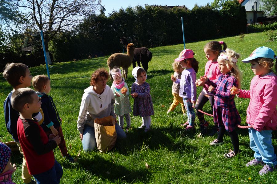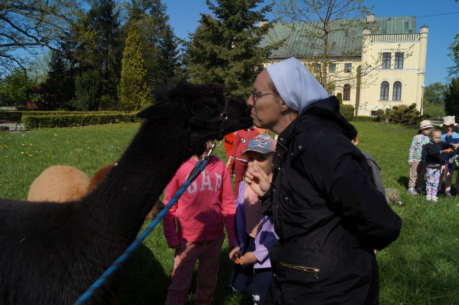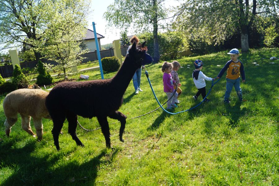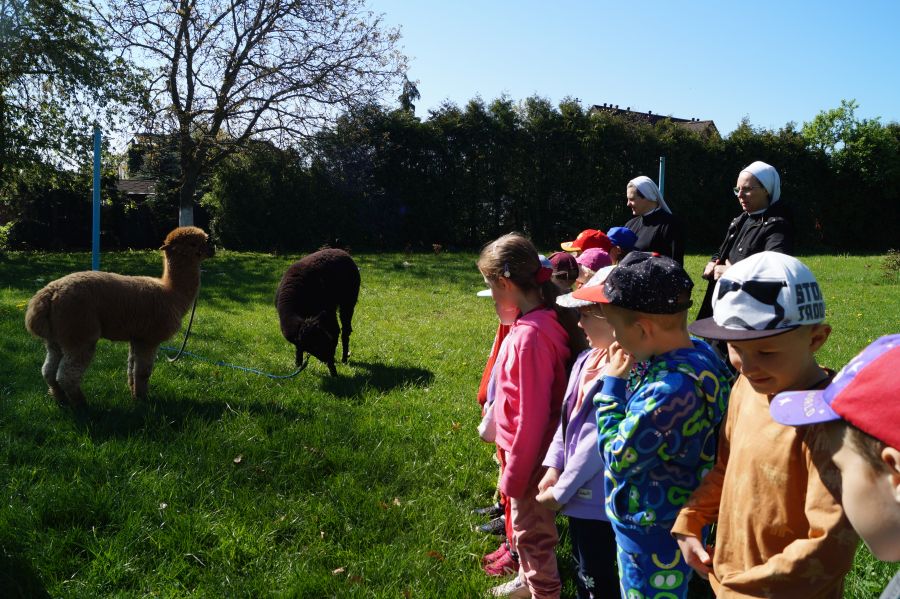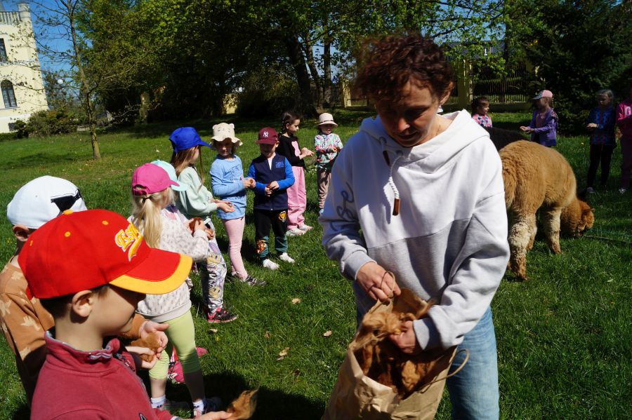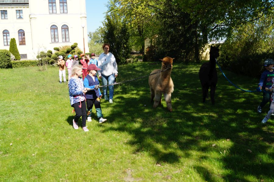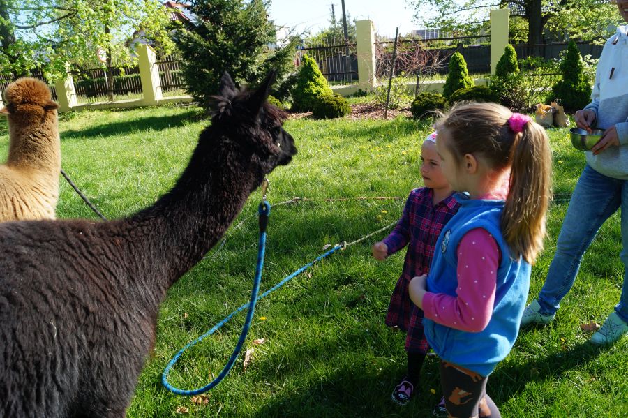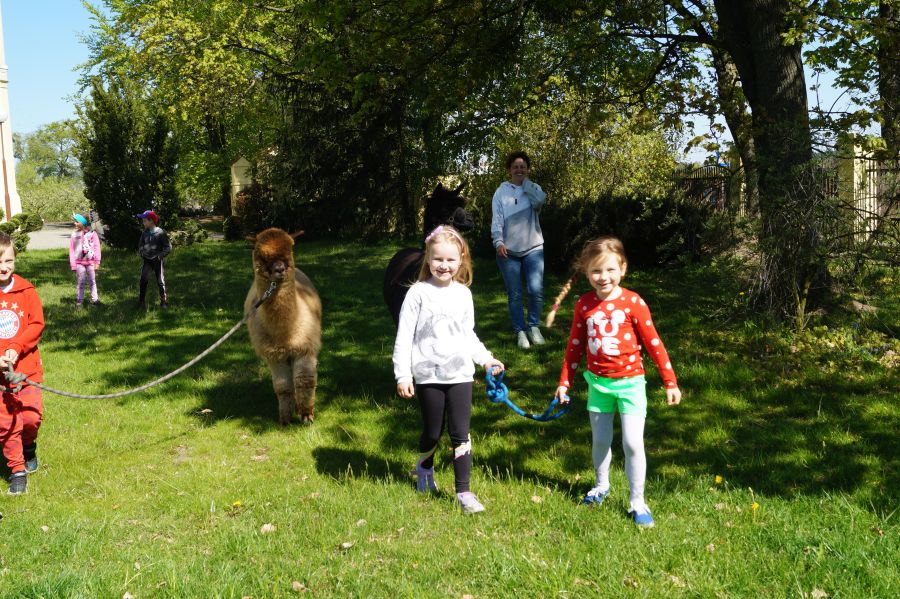 Dziś w przedszkolu niecodzienni goście, maluchy mówiły, że koniki, ale nie mogły na nich jeździć… Odwiedziły nas alpaki- Groszek i Cynamon, wraz z opiekunką ze „Stacji Alpaki” z Kruszyńca. Dzieci dowiedziały się wielu ciekawostek, mogły nakarmić i oprowadzać zwierzęta.
