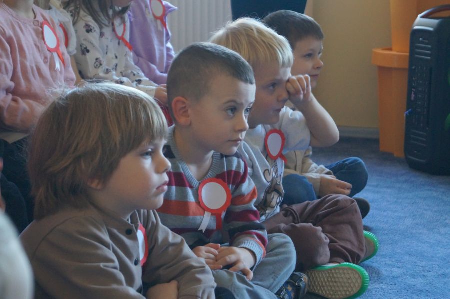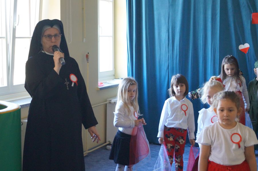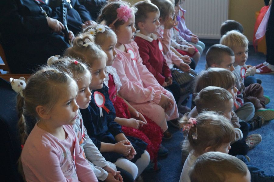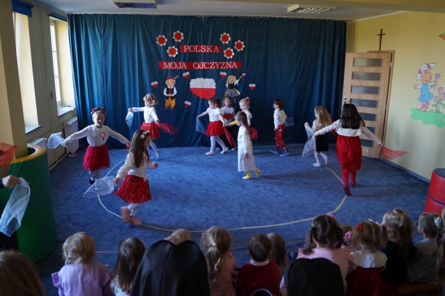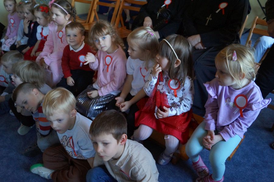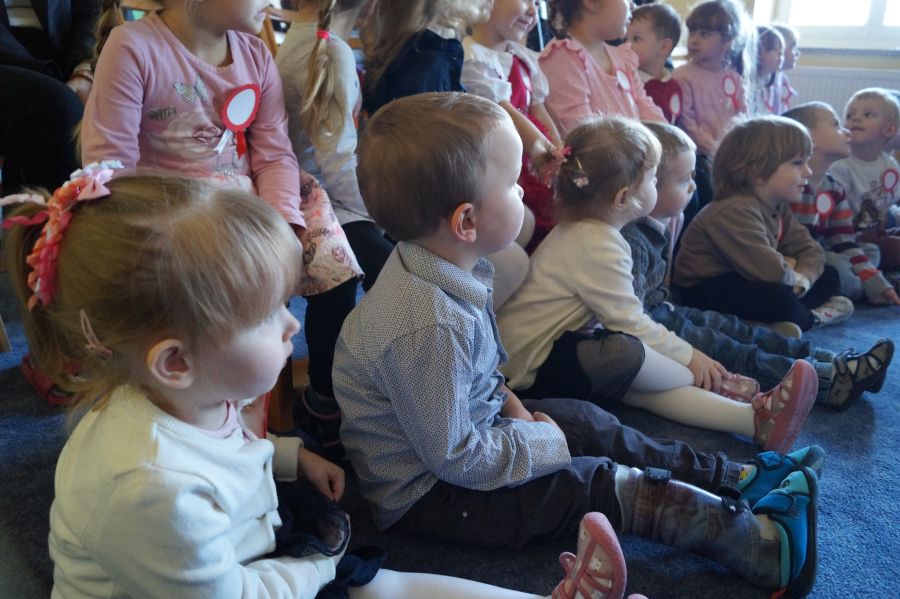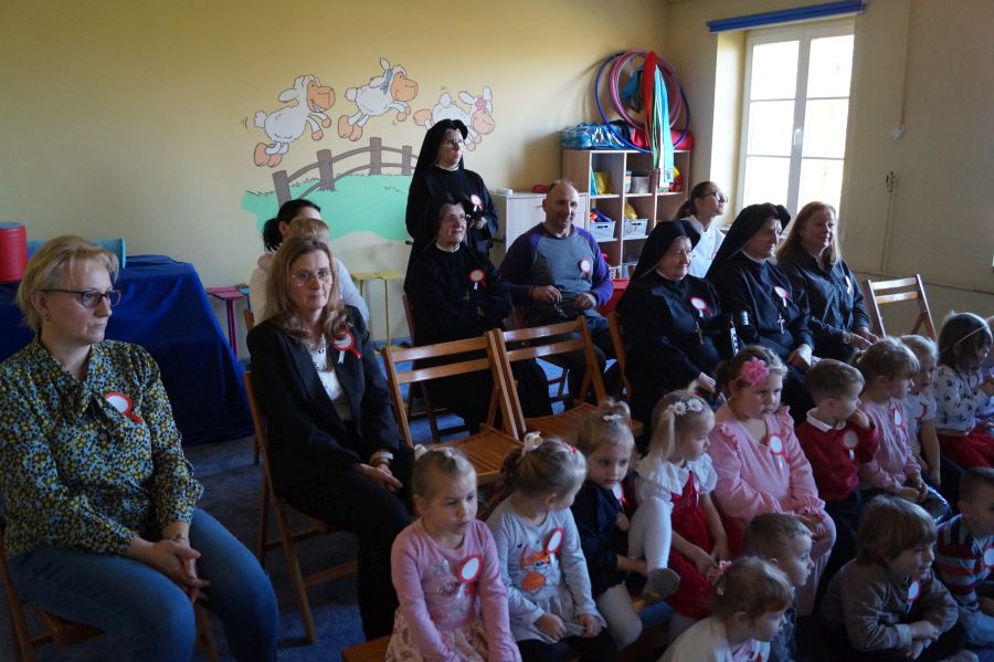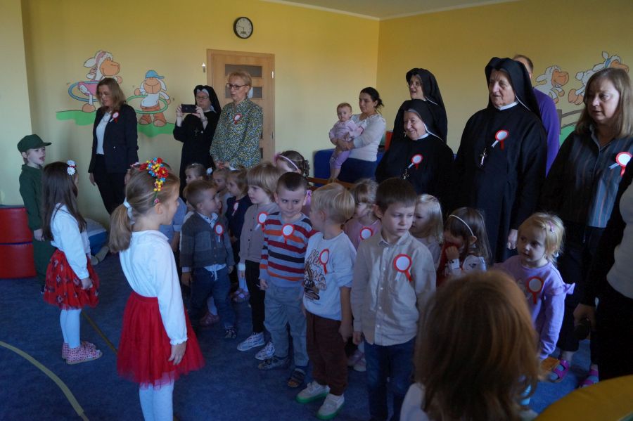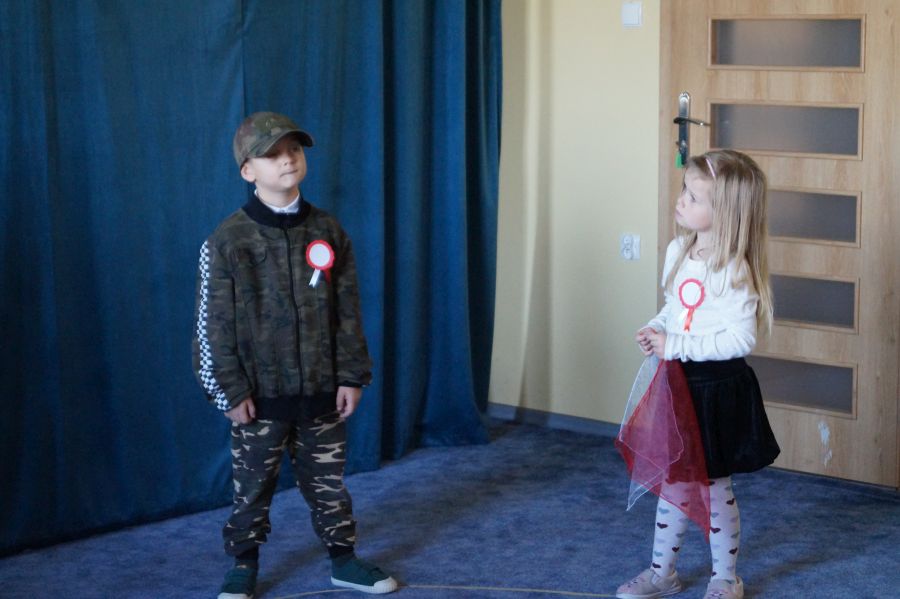 Z okazji Święta Niepodległości naszej Ojczyzny dzieci z grupy starszej, pod kierunkiem p. Katarzyny i p. Michaliny przygotowały montaż słowno- muzyczny. Było to bardzo wzruszające przedstawienie…pełne zadumy…Cała społeczność przedszkola wspólnie odśpiewała również Hymn Narodowy.