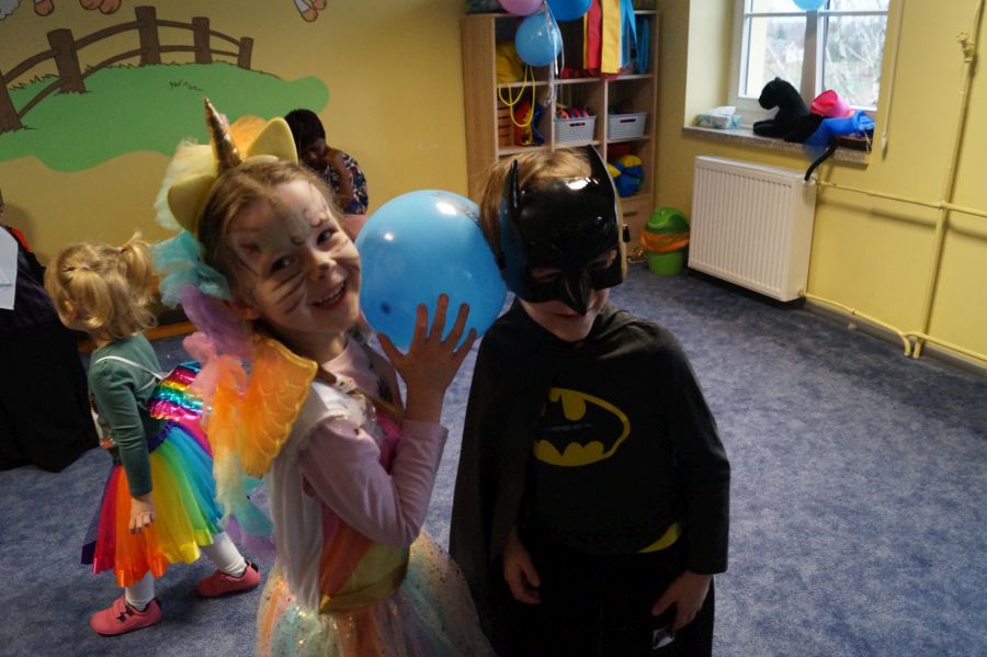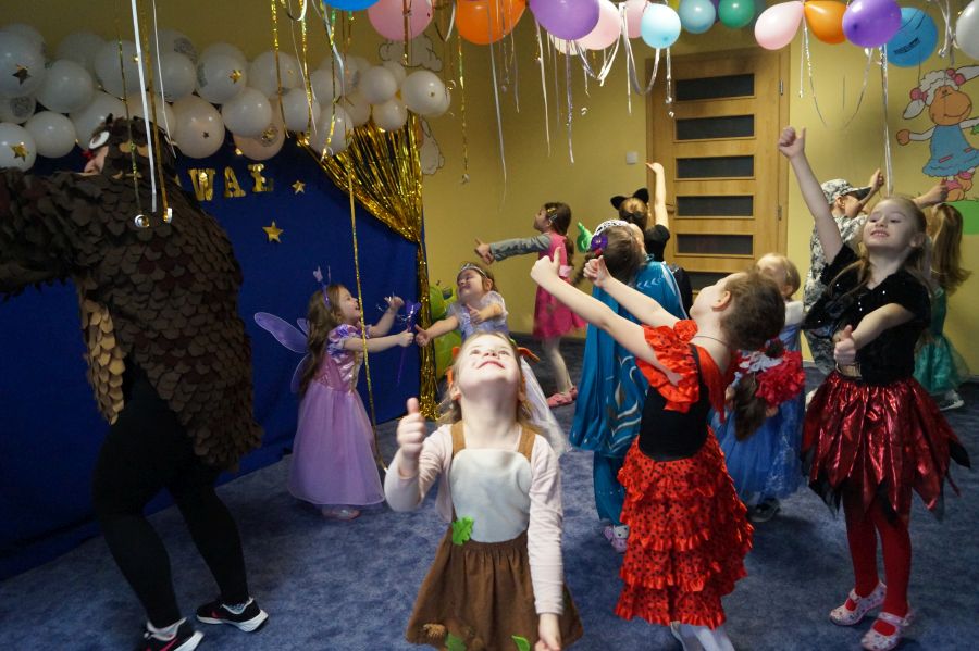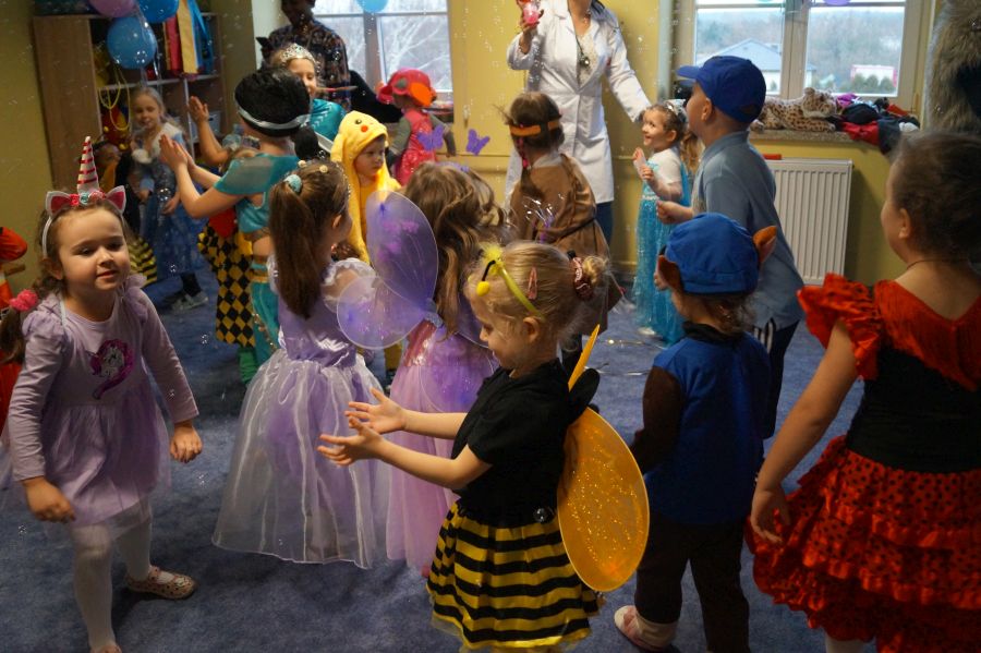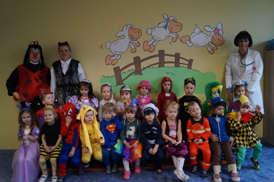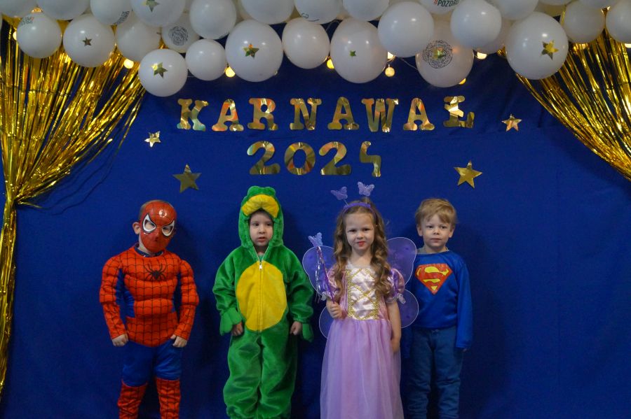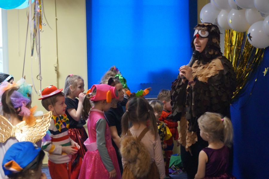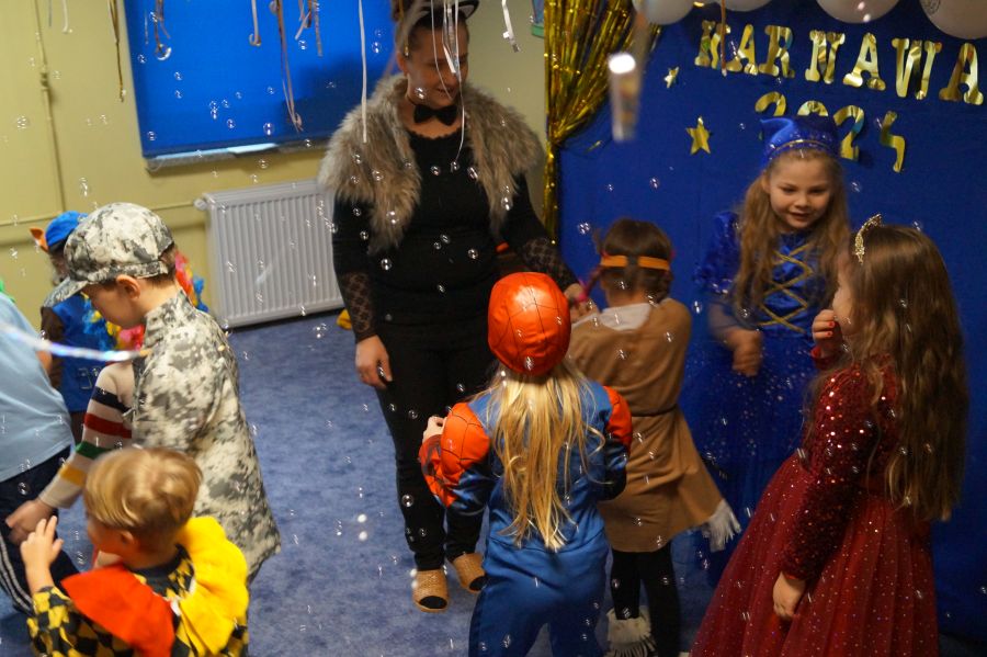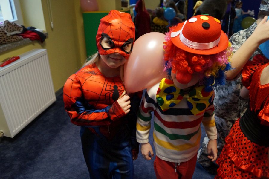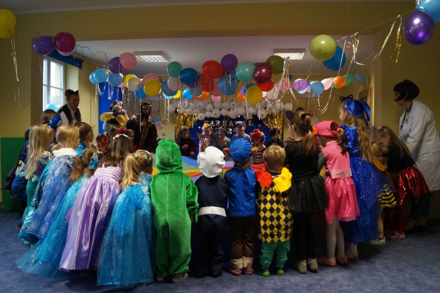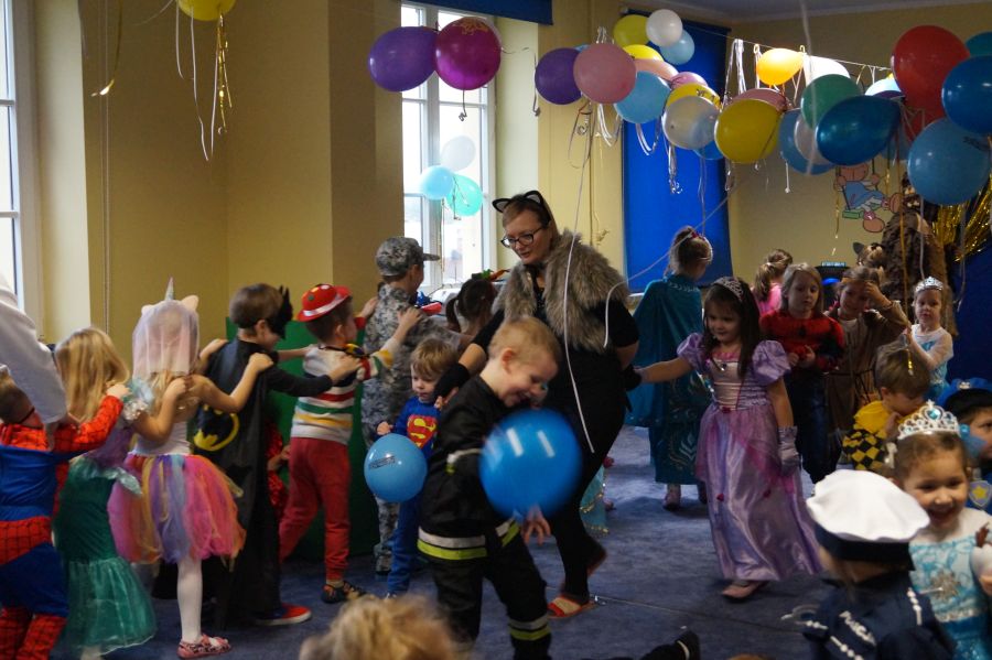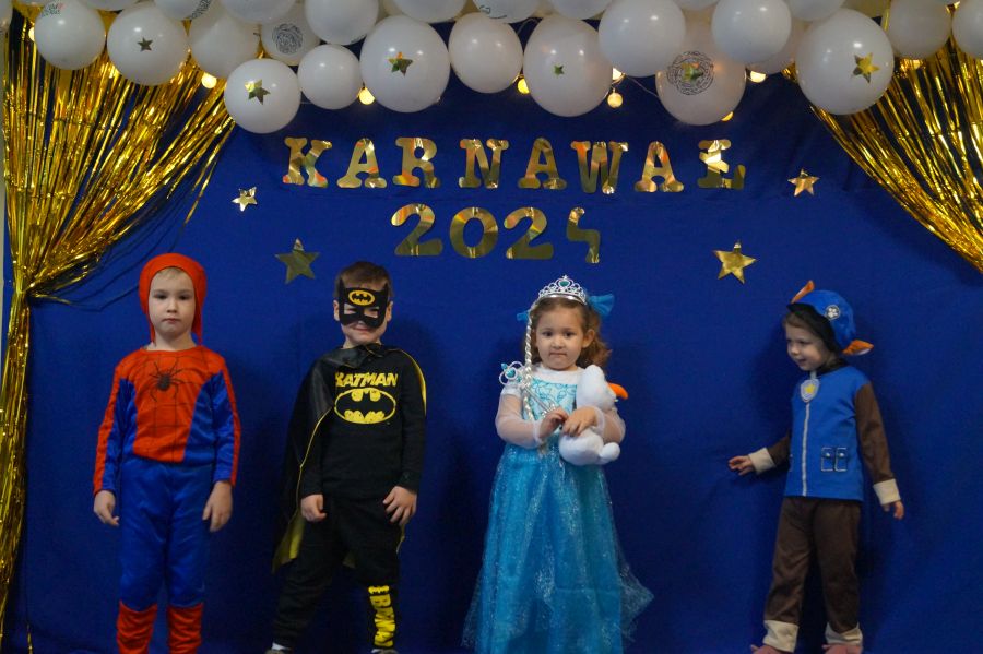 Wszystkie dzieci czekały na zabawę karnawałową, obmyślając kostiumy wraz z rodzicami. Tradycyjnie przybyło wielu super bohaterów, księżniczki, zwierzątka oraz inne bajkowe postacie. Bawiliśmy się świetnie, a to dzięki pani Martynie ze „Szkoły Tańca Vamos”, która poprowadziła całą imprezę.