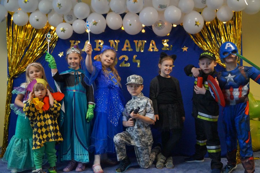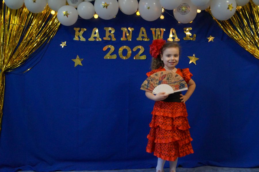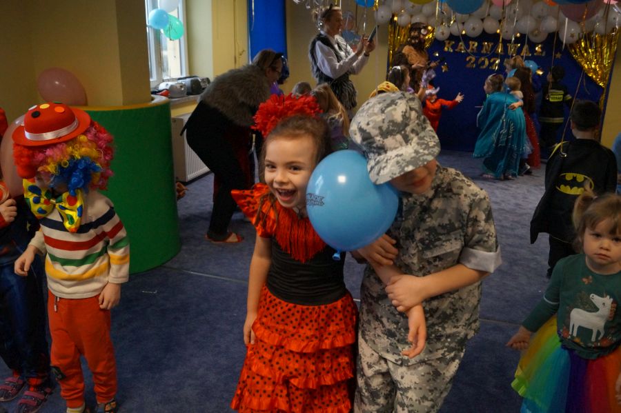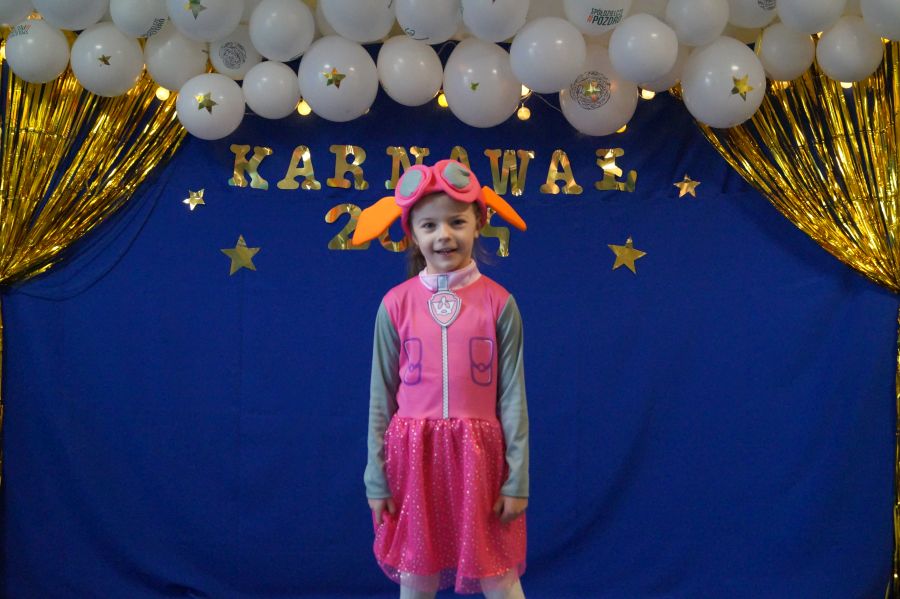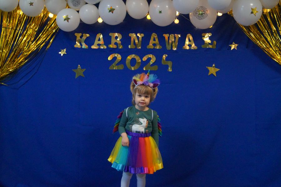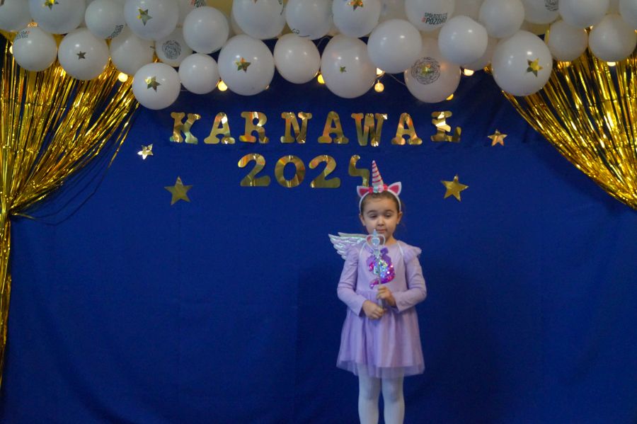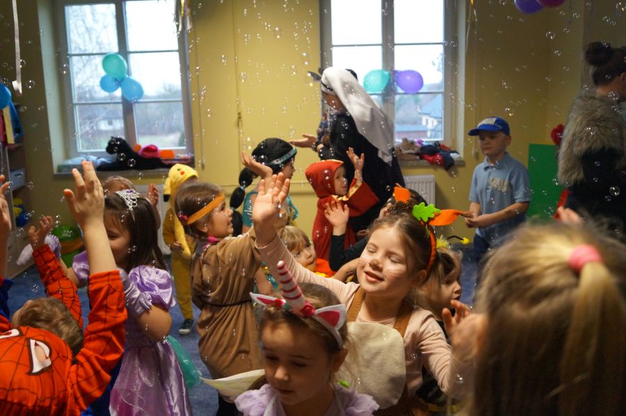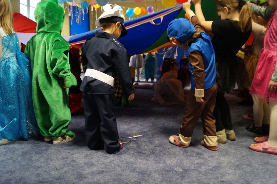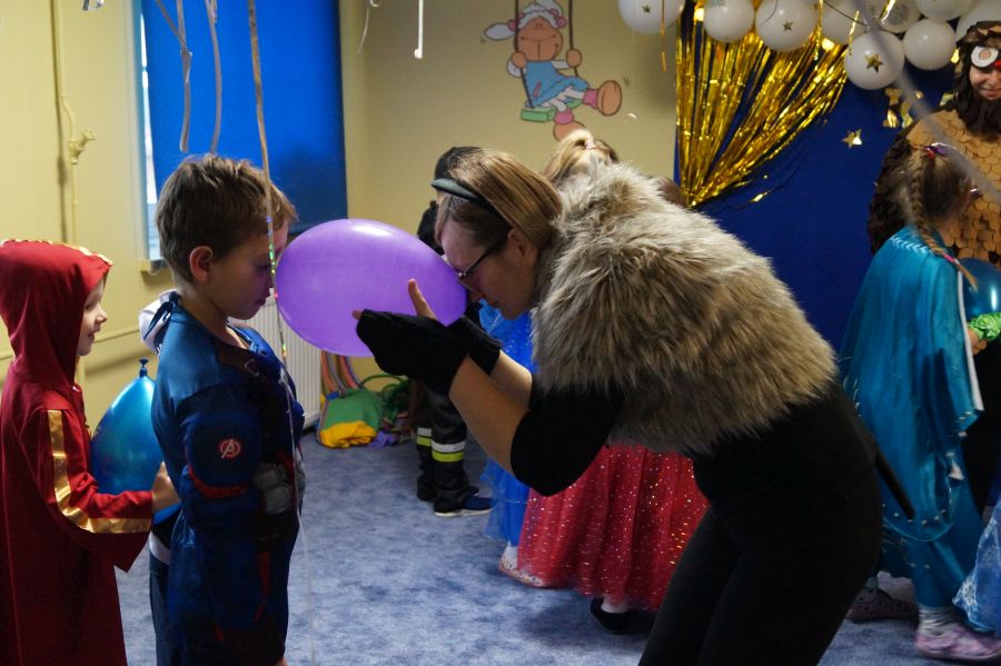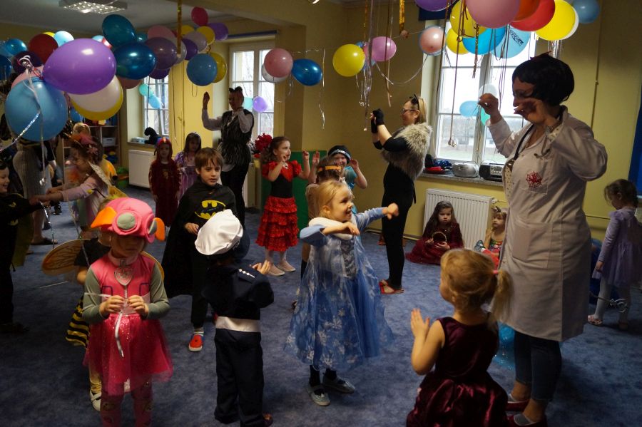 Wszystkie dzieci czekały na zabawę karnawałową, obmyślając kostiumy wraz z rodzicami. Tradycyjnie przybyło wielu super bohaterów, księżniczki, zwierzątka oraz inne bajkowe postacie. Bawiliśmy się świetnie, a to dzięki pani Martynie ze „Szkoły Tańca Vamos”, która poprowadziła całą imprezę.