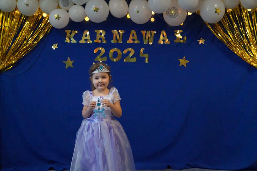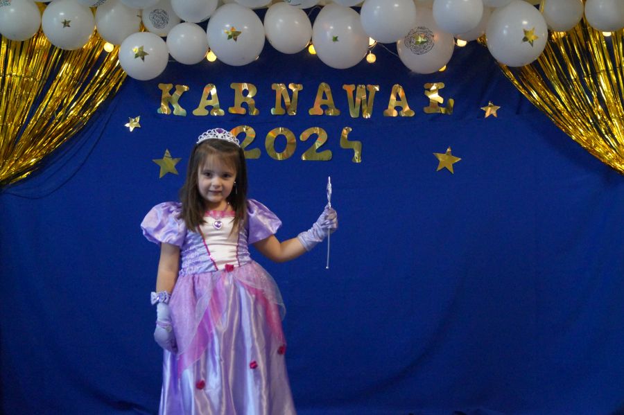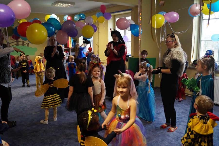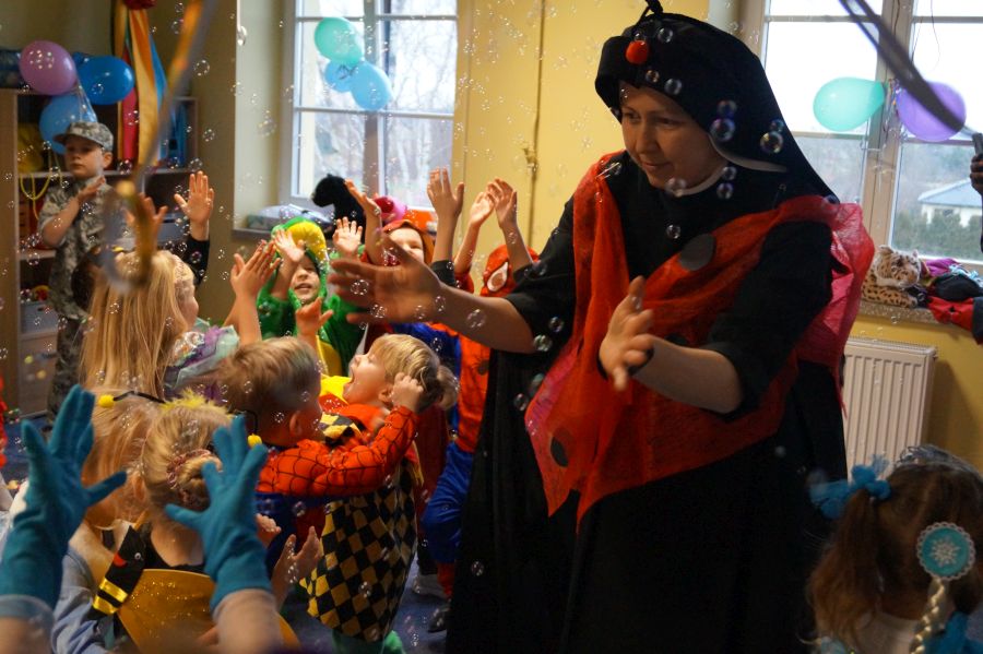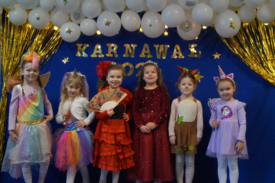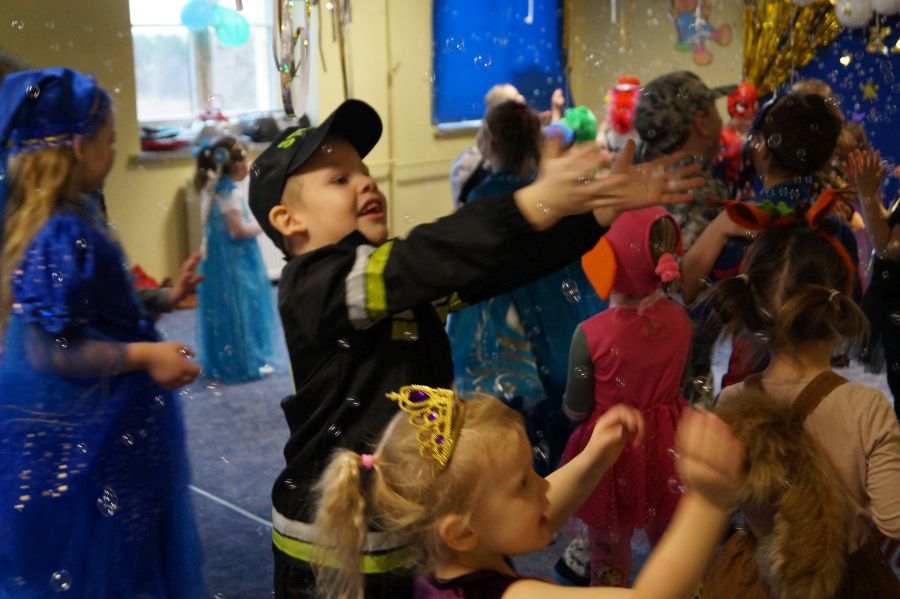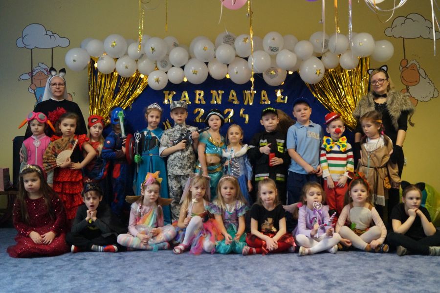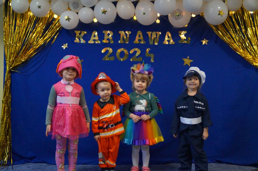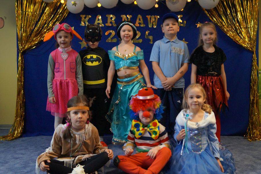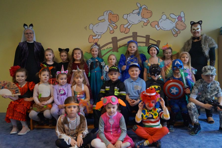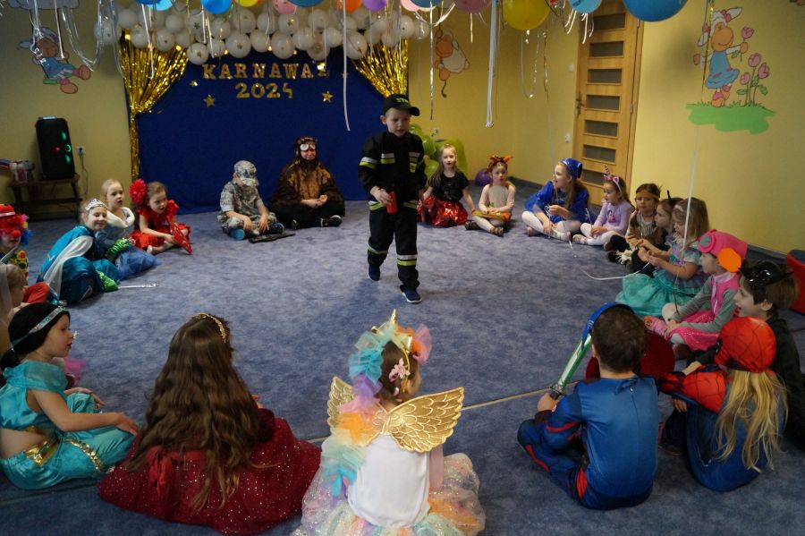 Wszystkie dzieci czekały na zabawę karnawałową, obmyślając kostiumy wraz z rodzicami. Tradycyjnie przybyło wielu super bohaterów, księżniczki, zwierzątka oraz inne bajkowe postacie. Bawiliśmy się świetnie, a to dzięki pani Martynie ze „Szkoły Tańca Vamos”, która poprowadziła całą imprezę.