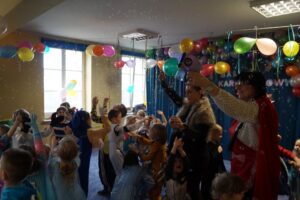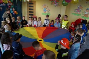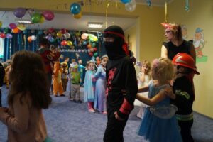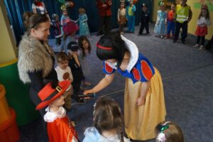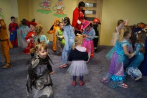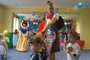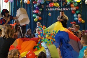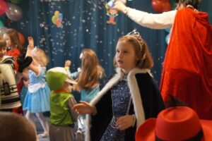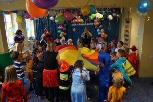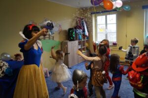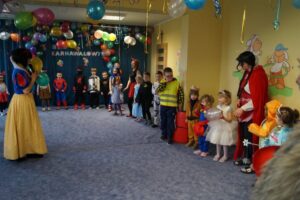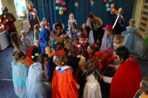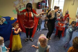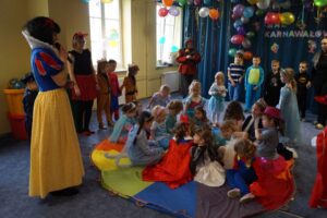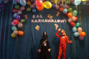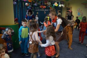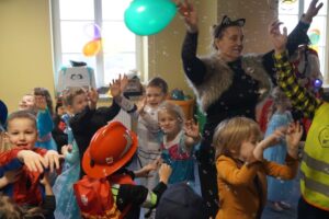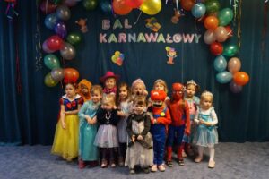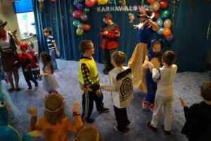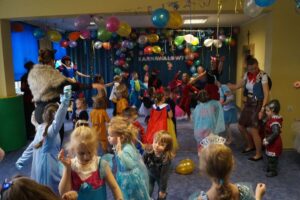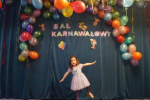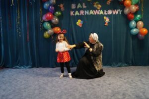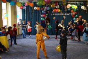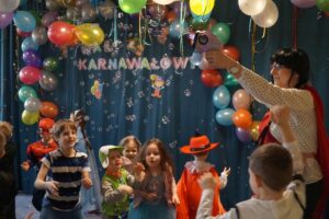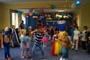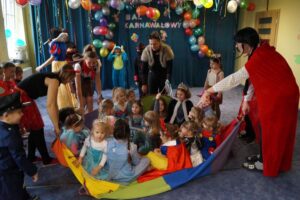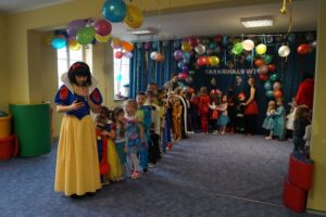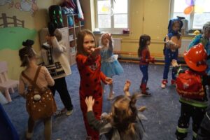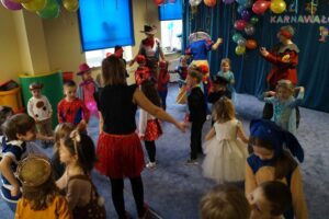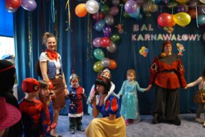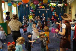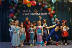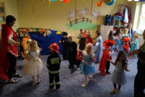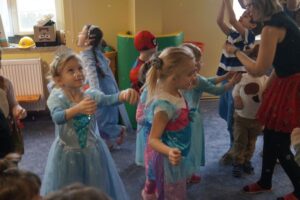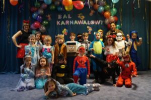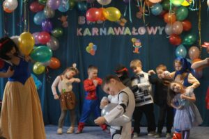 Tradycyjny „Bal karnawałowy”- postacie z bajek już za nami. Dziękujemy paniom Natalii i Martynie z Vamos Dance za jego poprowadzenie. Dzieci szczęśliwe i zmęczone czyli cel osiągnięty 😉