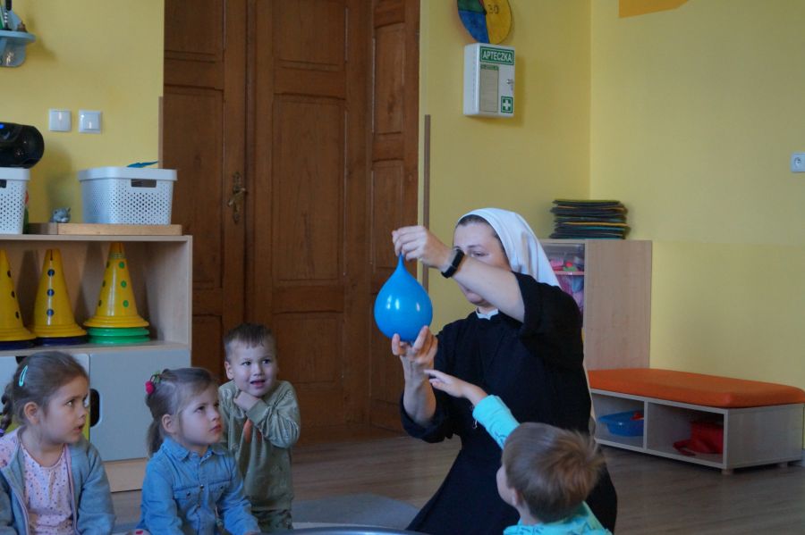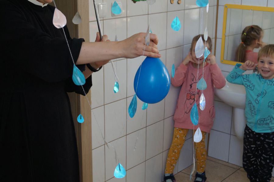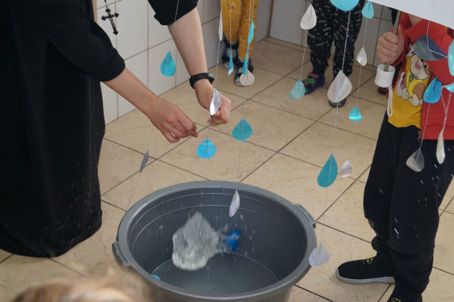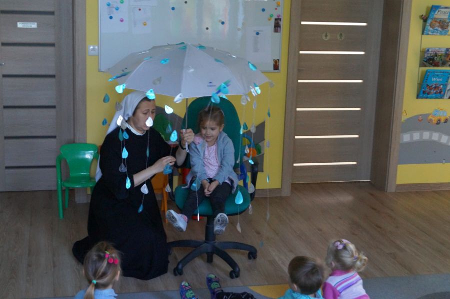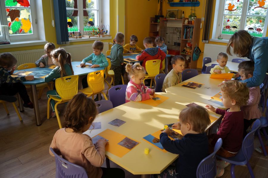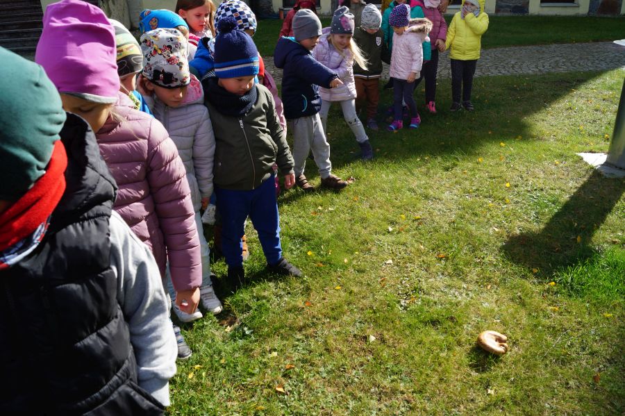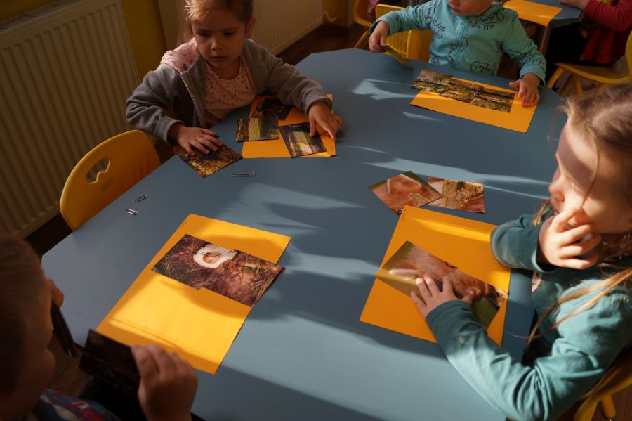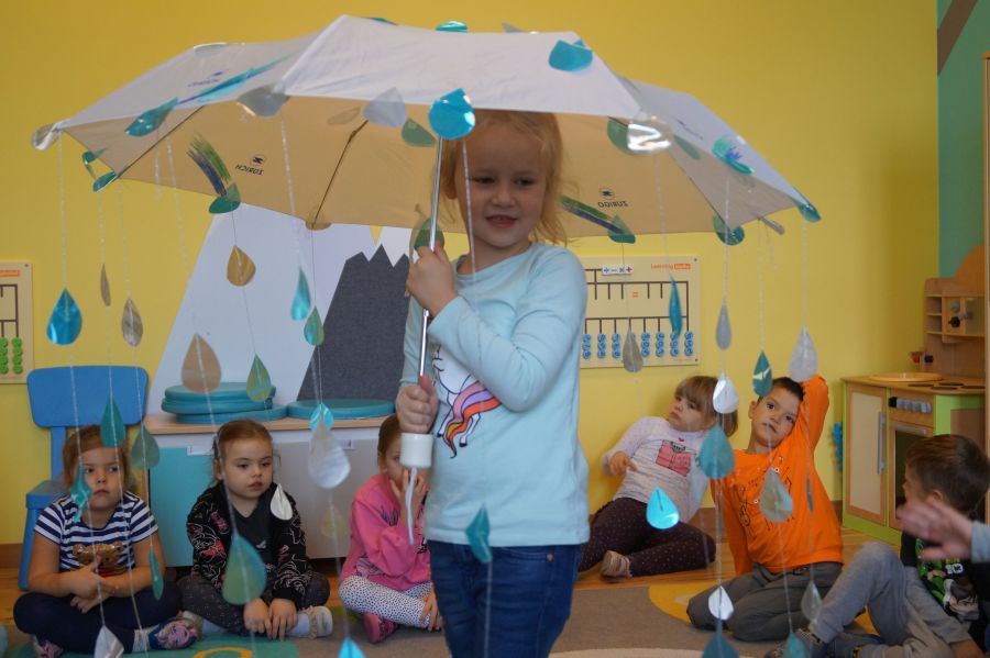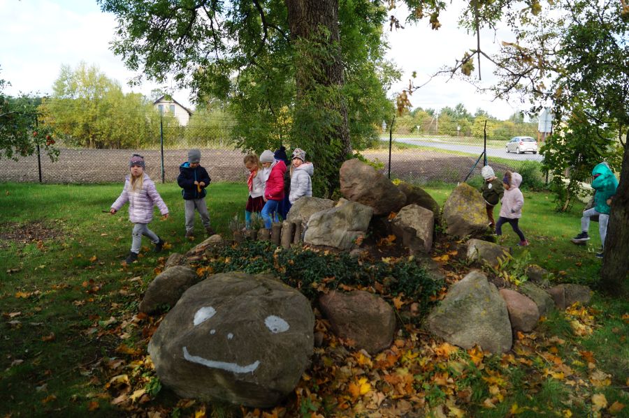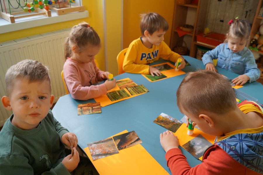 Polska jesień bywa kapryśna, czasem bardzo mokra, innym razem mieniąca się kolorami, bogata w różne dary przyrody. Obie grupy dzieci mogły doświadczyć różnych jej oblicz podczas zabaw oraz spaceru.