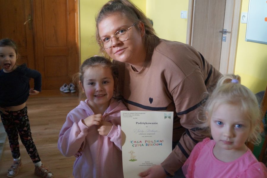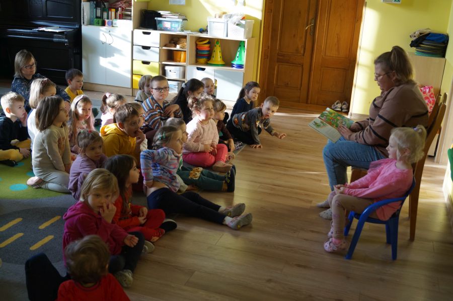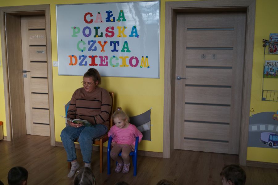 Dzisiaj przyjechała do przedszkola mama Zuzi, aby poczytać dzieciom o przygodach Franklina i jego siostry oraz o Kici Koci. Dzieci z dużym zainteresowaniem słuchały opowiadań. Bardzo dziękujemy pani Julicie za poświęcony czasu jednocześnie zachęcamy innych rodziców do wzięcia udziału w akcji „Cała Polska czyta dzieciom. Zapraszamy.