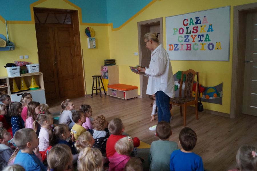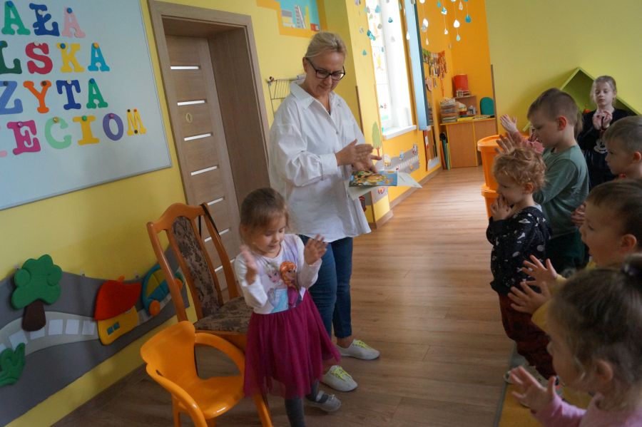 Zawsze serdecznie witamy w naszych progach gości, szczególnie nam miło, gdy rodzice przedszkolaków chcą w jakiś sposób ubogacić nasze spotkania. Dzisiaj odwiedziła nas mama Oli, aby przeczytać dzieciom bajkę.