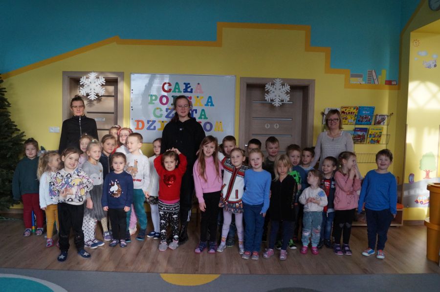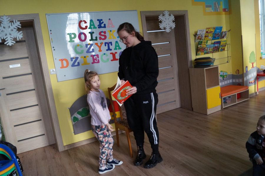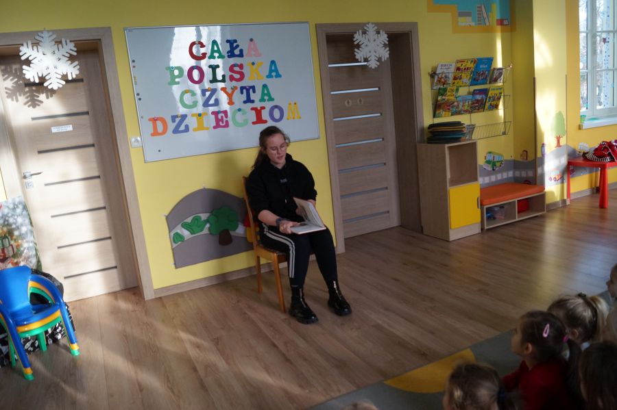 Zawsze nam bardzo miło, gdy w nasze progi zaglądają absolwenci przedszkola. Tym razem w akcji „Cała Polska czyta dzieciom” wzięła udział Eliza, absolwentka i siostra Emilki, z grupy starszej. Dziękujemy za odwiedziny i do zobaczenia.