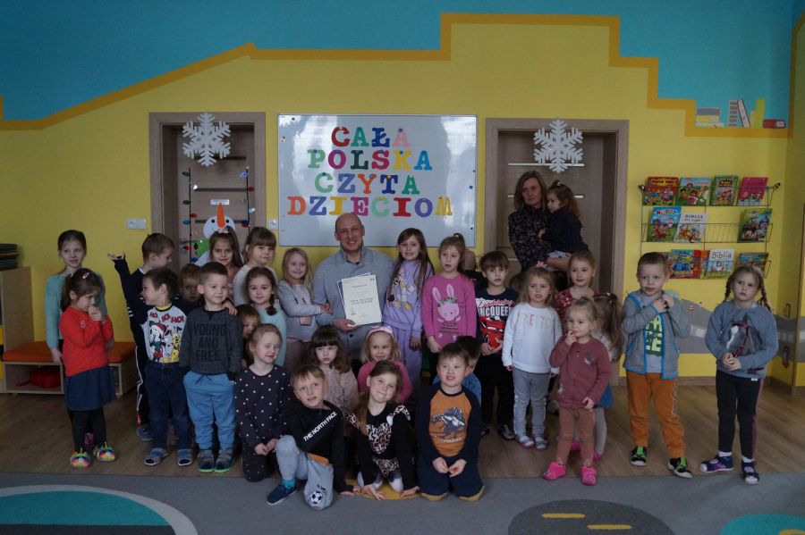 W ramach akcji „Cała Polska czyta dzieciom” odwiedził nas dzisiaj pan Damian- tata Marysi i Agatki. Dzieci wysłuchały utworu Marii Konopnickiej „Na jagody”. Bardzo dziękujemy za spotkanie.