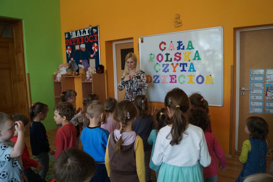 W ramach akcji „Cała Polska czyta dzieciom” odwiedziła nas mama Marysi z grupy młodszej i przeczytała nam bajkę. Bardzo dziękujemy.