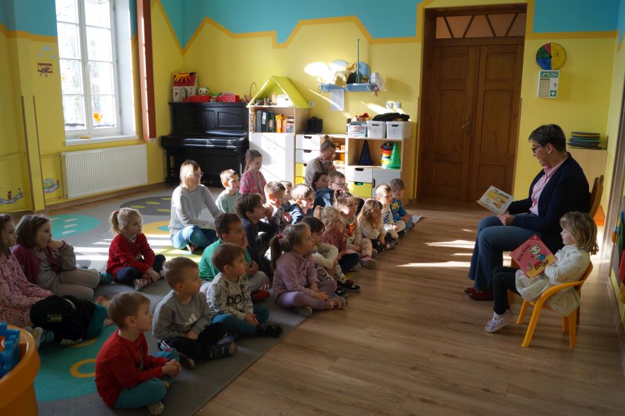 Bardzo dziękujemy pani Marcie, mamie Patrycji za wizytę w przedszkolu i głośne czytanie dzieciom.