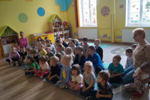 Tradycyjnie, raz w miesiącu zaproszony gość czyta dzieciom wybraną historię. Dzisiaj odwiedziła nas pani Magda- mama Gabrysi i Zuzanny. Bardzo dziękujemy za to spotkanie i zapraszamy kolejnych rodziców.