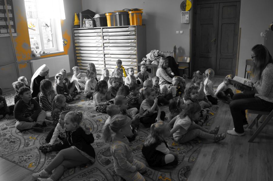 Gościliśmy w naszym przedszkolu mamę Mateusza z grupy młodszej, która przeczytała dzieciom bajkę.