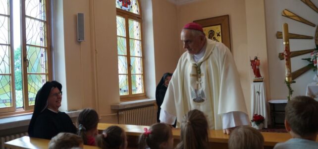 Każdego roku organizujemy w naszym przedszkolu wizytę św. Mikołaja- biskupa. W tym roku przyszedł nieco szybciej 😉 Dzieci z radością go oczekiwały, przygotowały prezent w postaci kolorowej książeczki. Podczas wspólnej zabawy i tańców przedszkolacy oswoili się z jego obecnością i