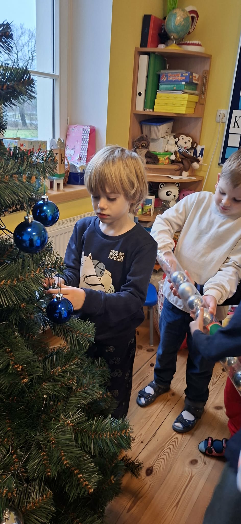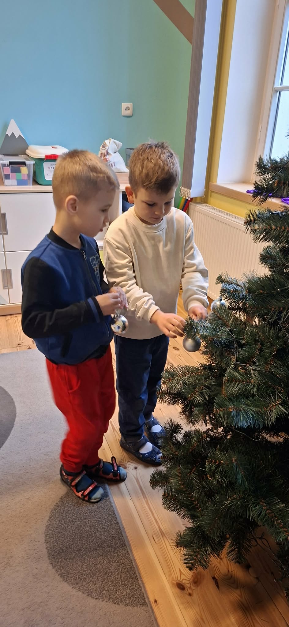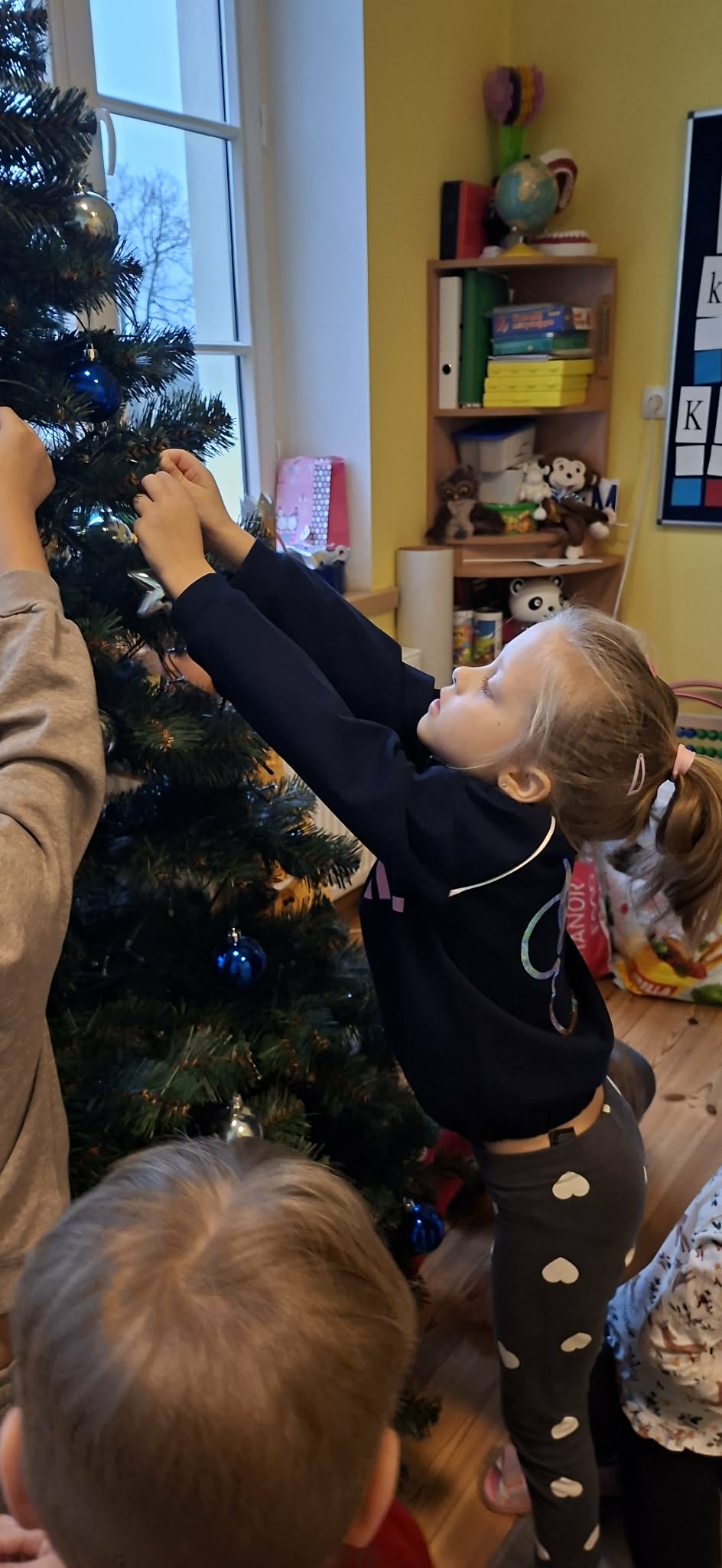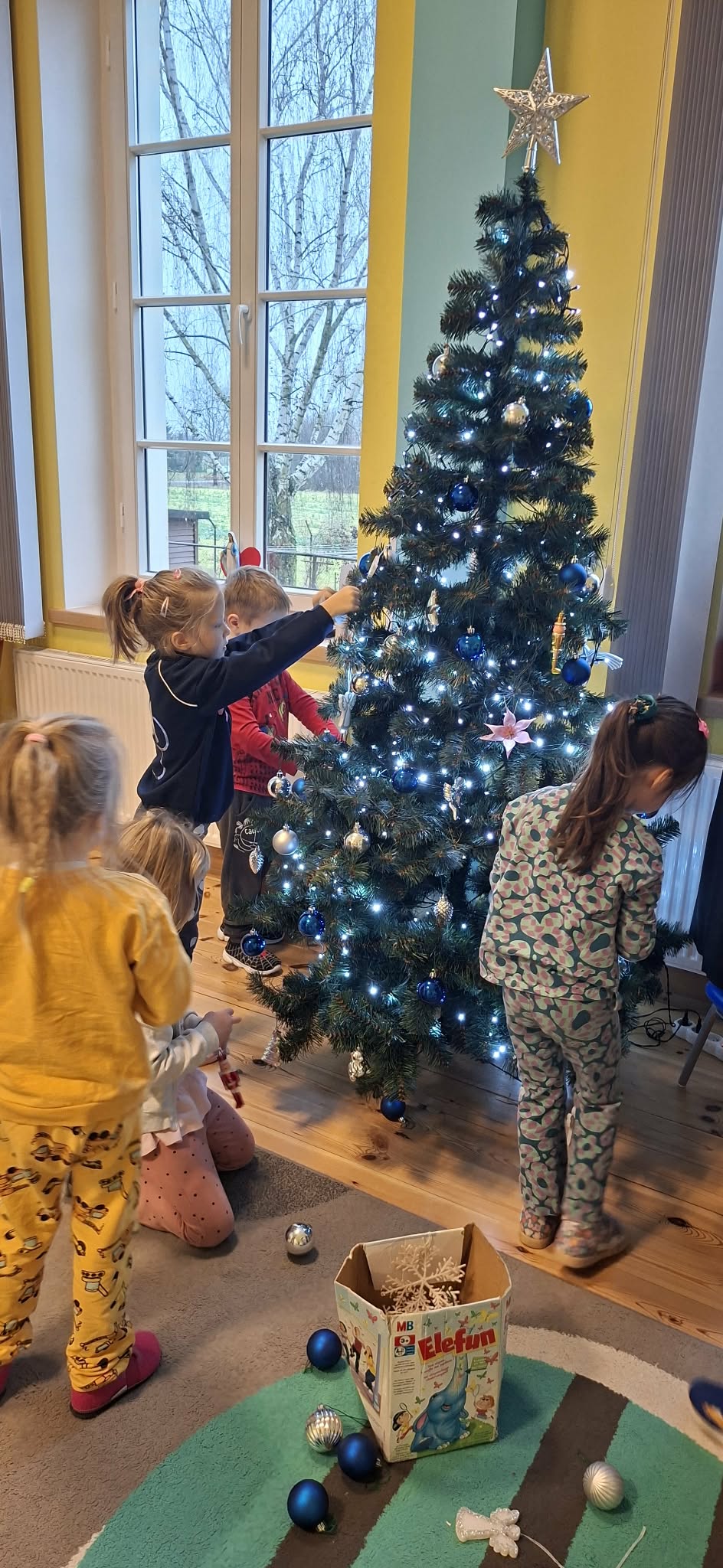 Kultywując tradycje świąteczne grupa starsza przystroiła choinkę w swojej sali. Choinka u starszaków.