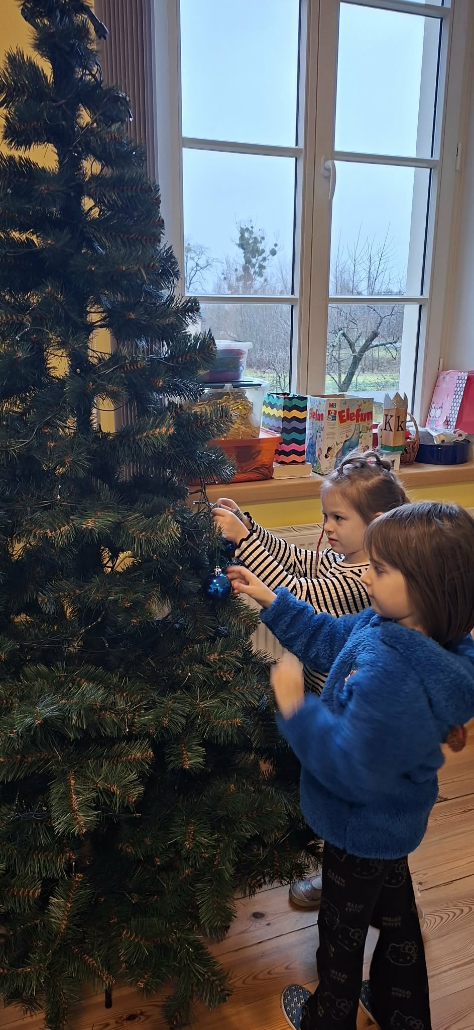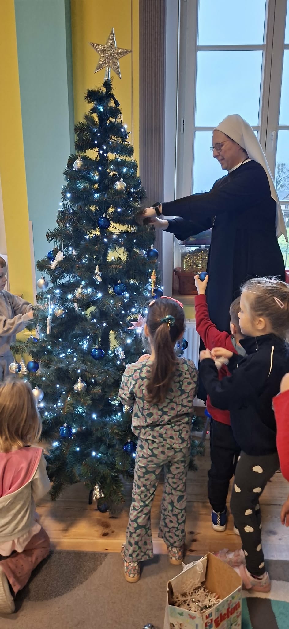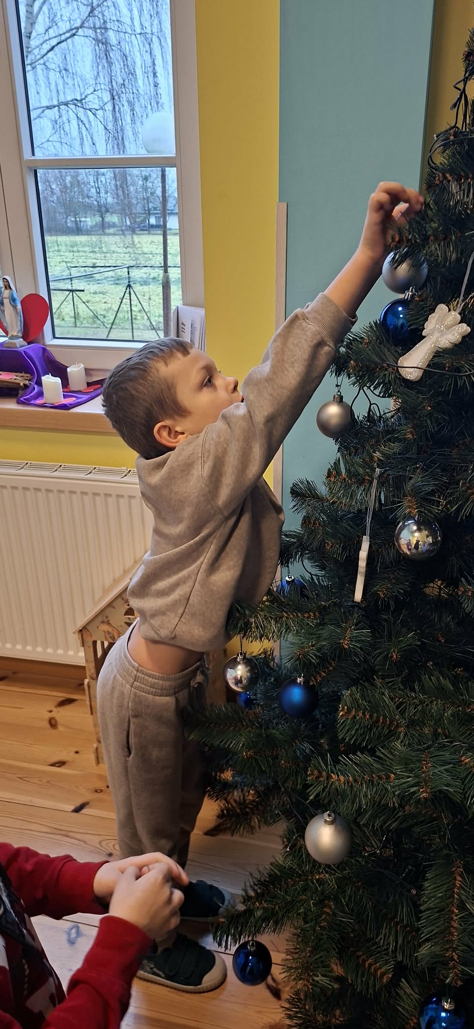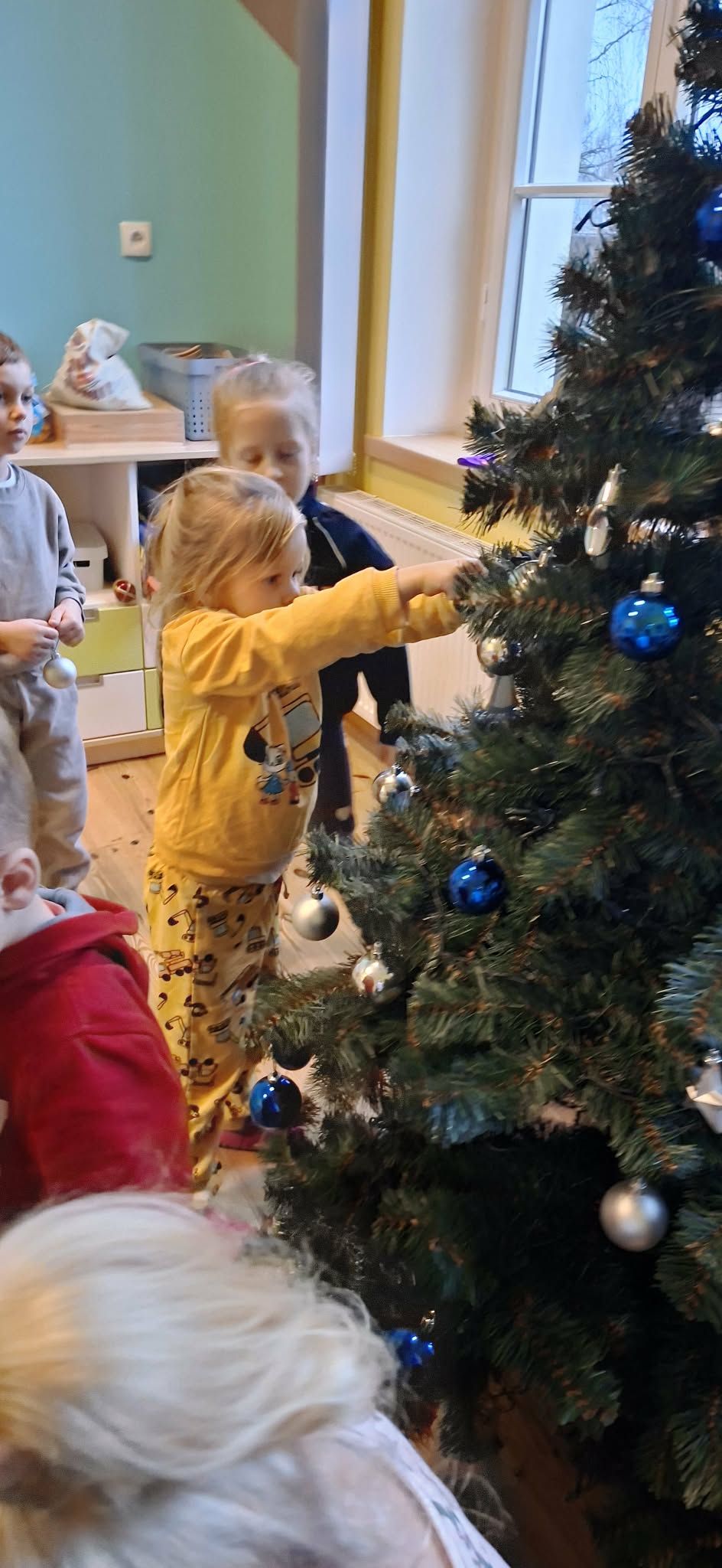 Kultywując tradycje świąteczne grupa starsza przystroiła choinkę w swojej sali. Choinka u starszaków.