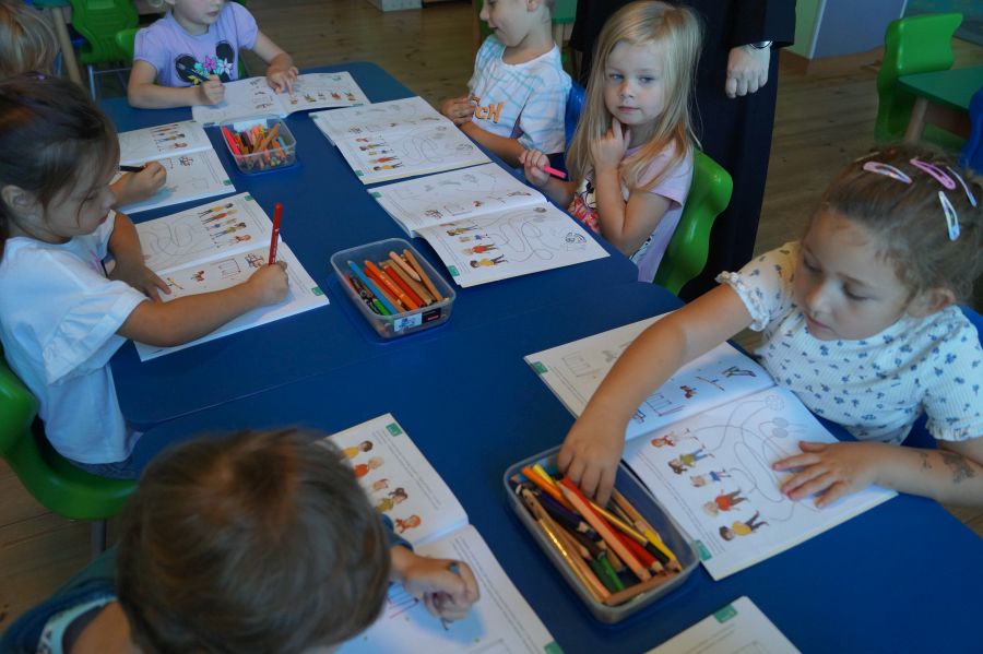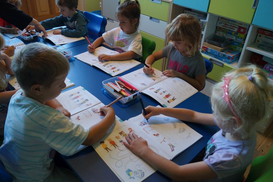 Grupa starsza poza tym, że pilnie się uczy, to znajduje również czas na zabawę swobodną zarówno w swojej sali jak i na placu zabaw. Codzienność u starszaków 😉