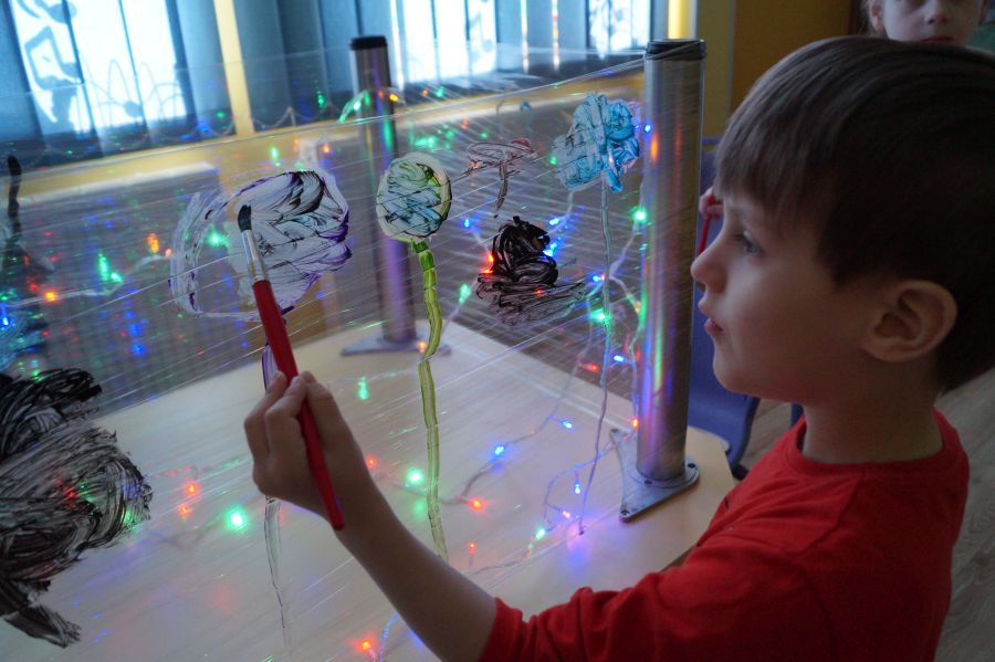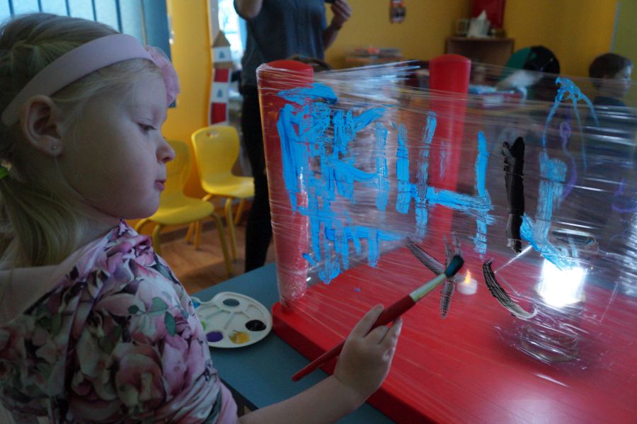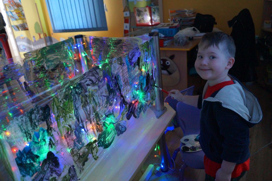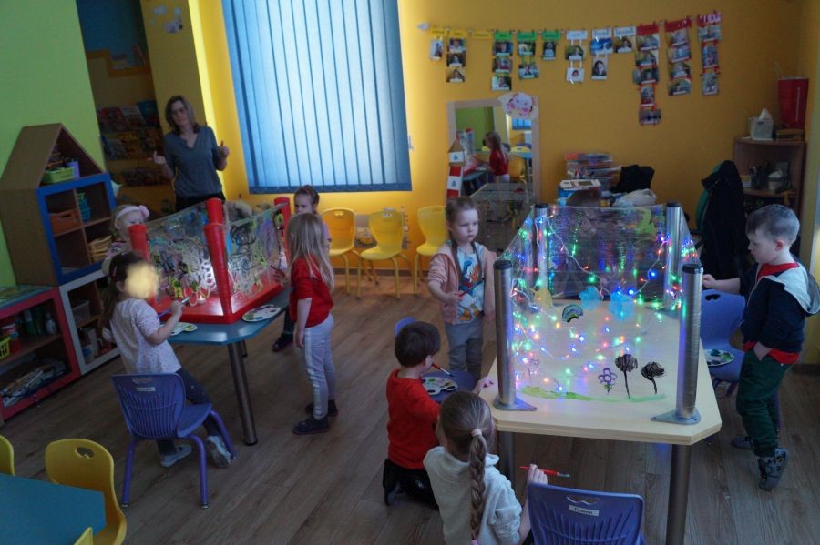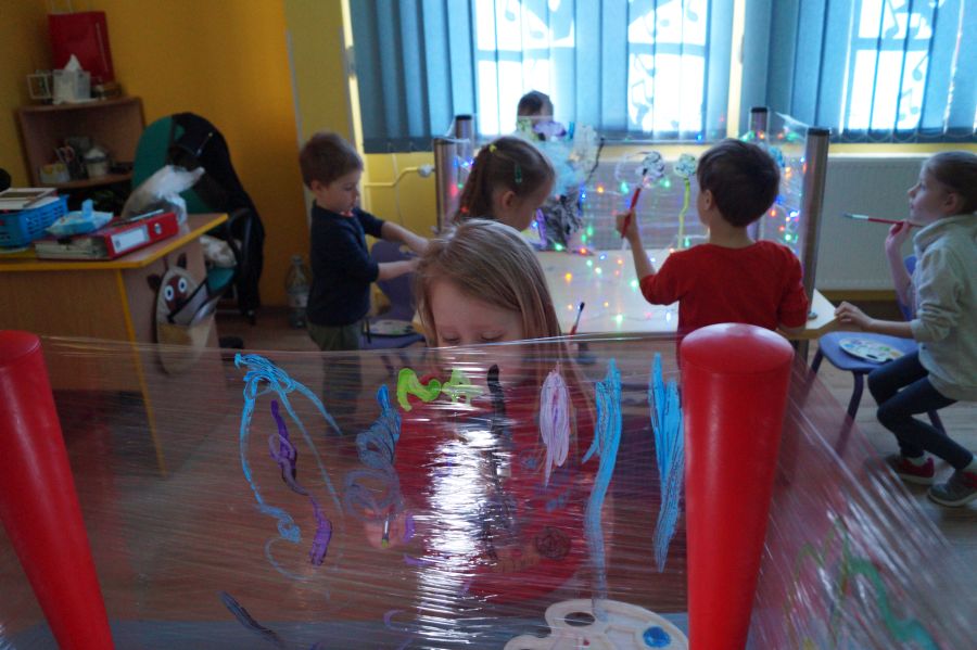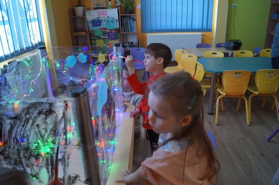 Obie grupy przeżywały dzisiaj „Dzień Artysty”. U maluchów były to zajęcia z arteterapii , malowanie farbami przy muzyce i świetle. Starszacy zaś zajęli się szkicowaniem.