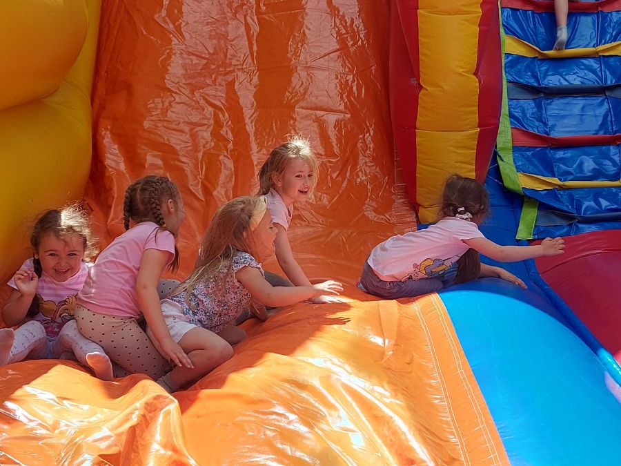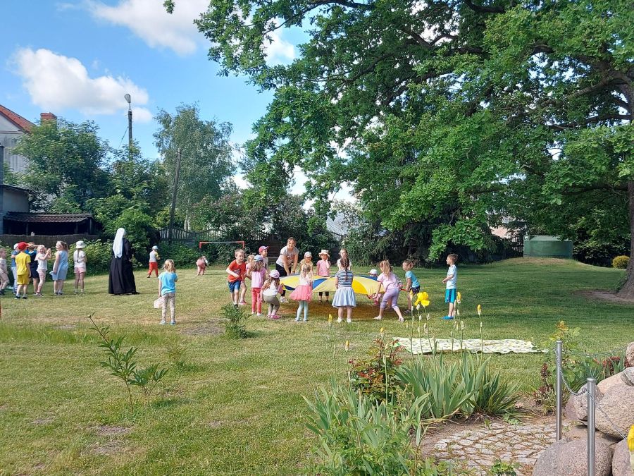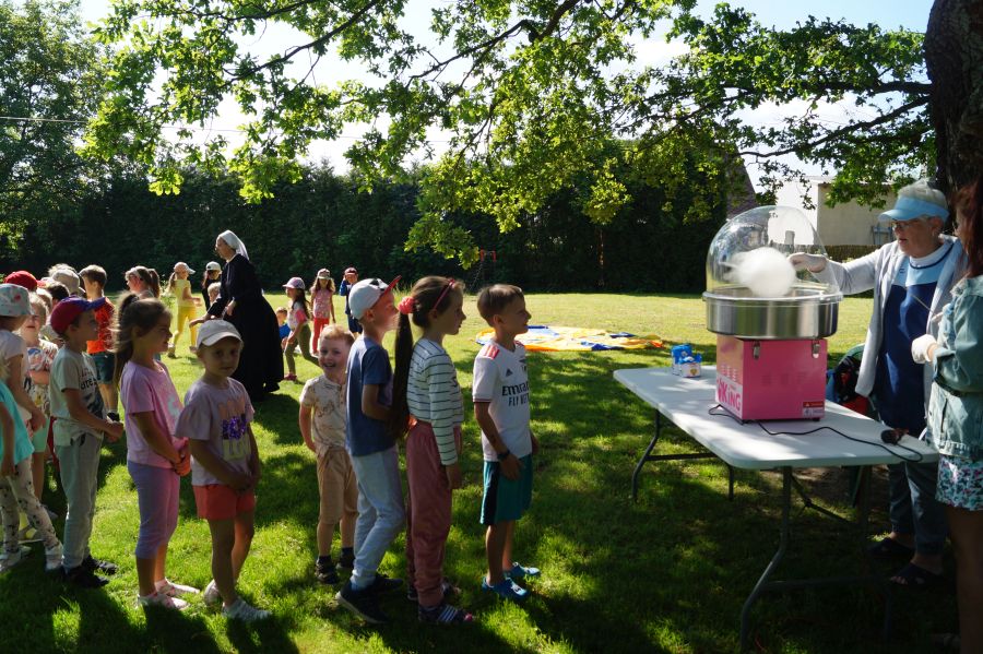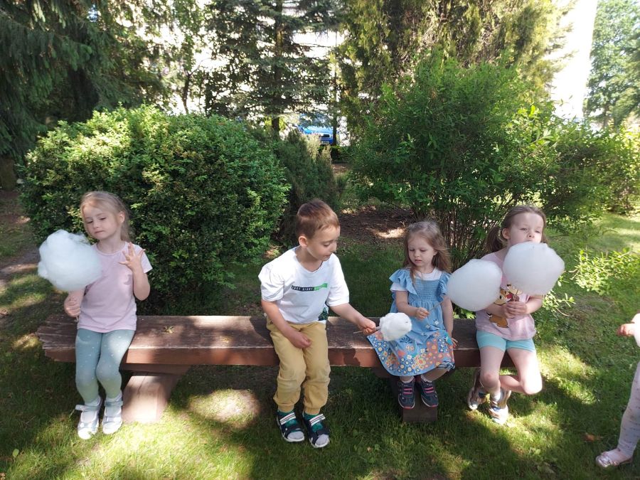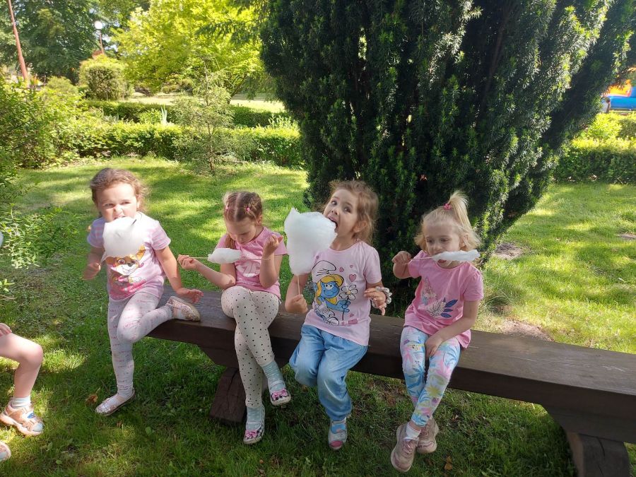 Międzynarodowy dzień dziecka pełen wrażeń i atrakcji dla wszystkich dzieci, tych dużych i małych. Dziękujemy s. Dyrektor za zamówione atrakcje oraz mamie i babci Leona z grupy starszej za „kręcenie” waty cukrowej, a także za odwiedziny naszych przyszłych przedszkolaków.