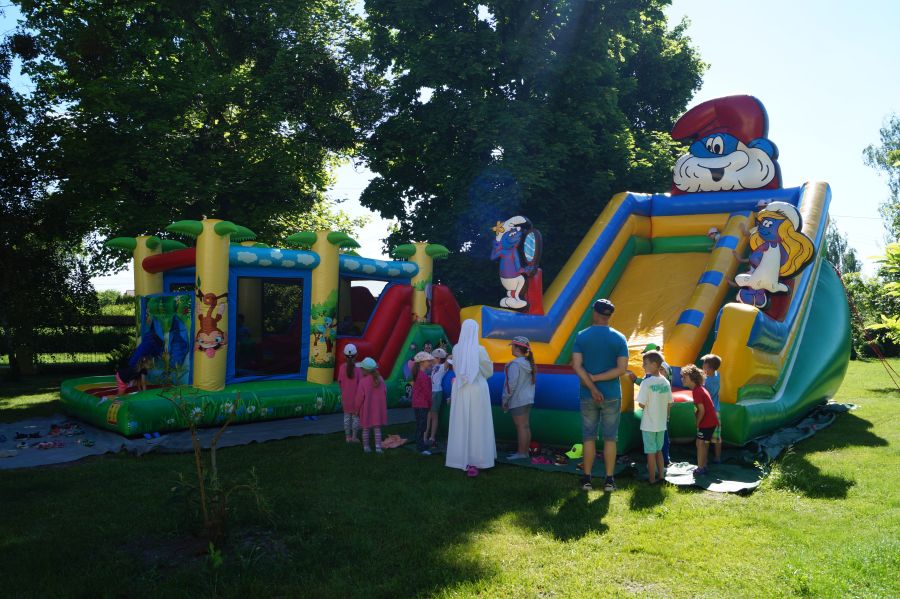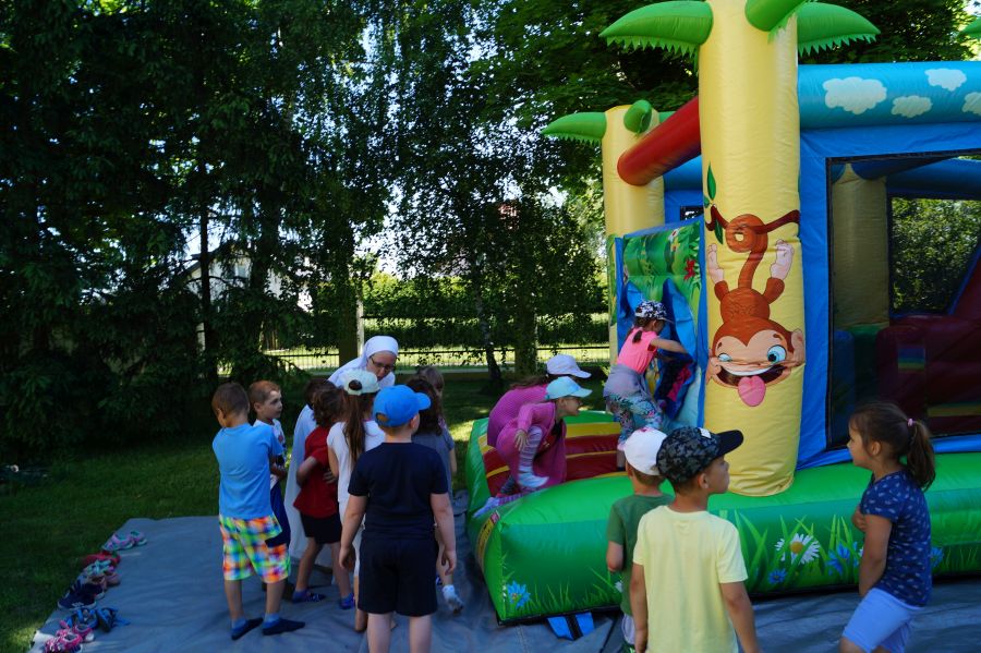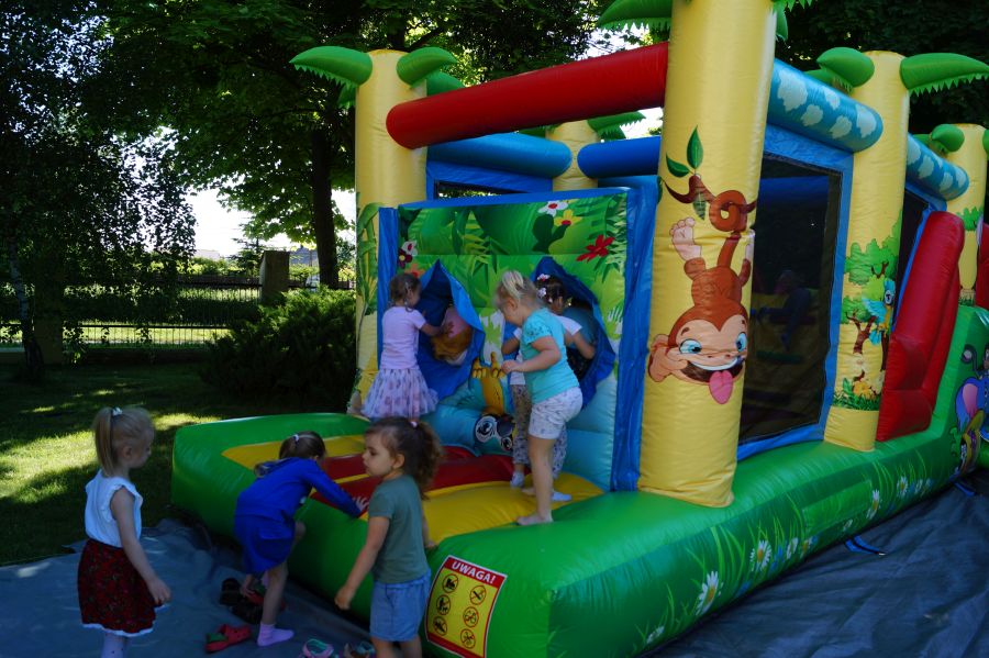 Pogoda nam dopisała i do przedszkola przyjechały zamówione dmuchańce. Ponadto drugie śniadanie mogliśmy zjeść w tzw. restauracji pod chmurką 😉 Dzieci były przeszczęśliwe. Dmuchańce zapewniła firma „FH-U DAMAX” pana  Tomasza Dudzińskiego z Parlina. Polecamy!