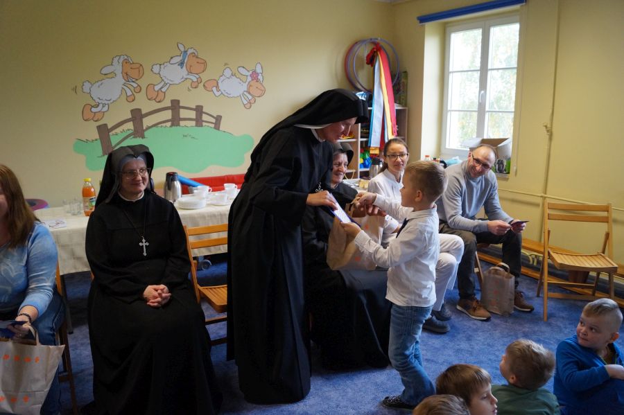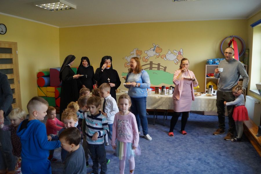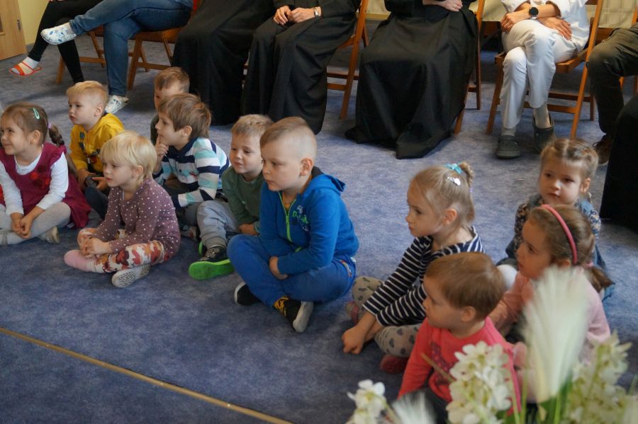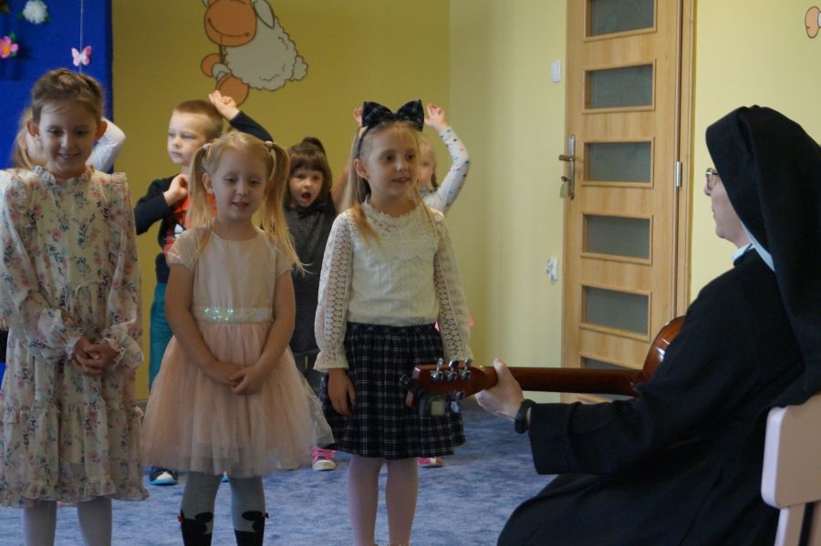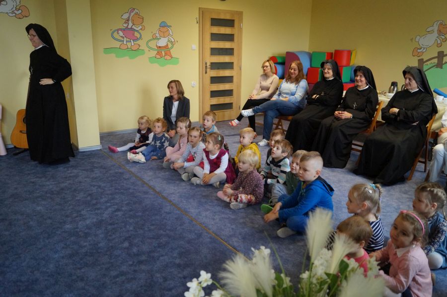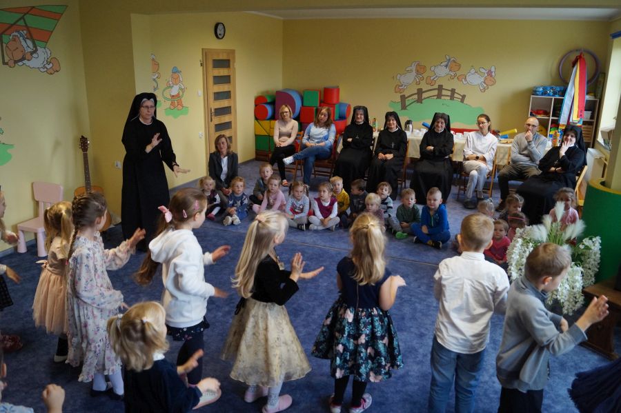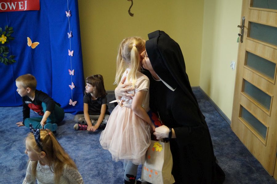 Tradycyjnie cała nasza przedszkolna społeczność spotkała się, aby uczcić Dzień Edukacji Narodowej. Grupa starsza przygotowała pod kierunkiem s. Katarzyny i pani Michaliny montaż słowno- muzyczny. W ten sposób dzieci wyraziły swoją wdzięczność wszystkim pracownikom przedszkola. S. Dyrektor dołączyła się do życzeń dzieci, dziękując pracownikom za codzienną troskę i zaangażowanie wkładane w wychowanie, i nauczanie przedszkolaków.