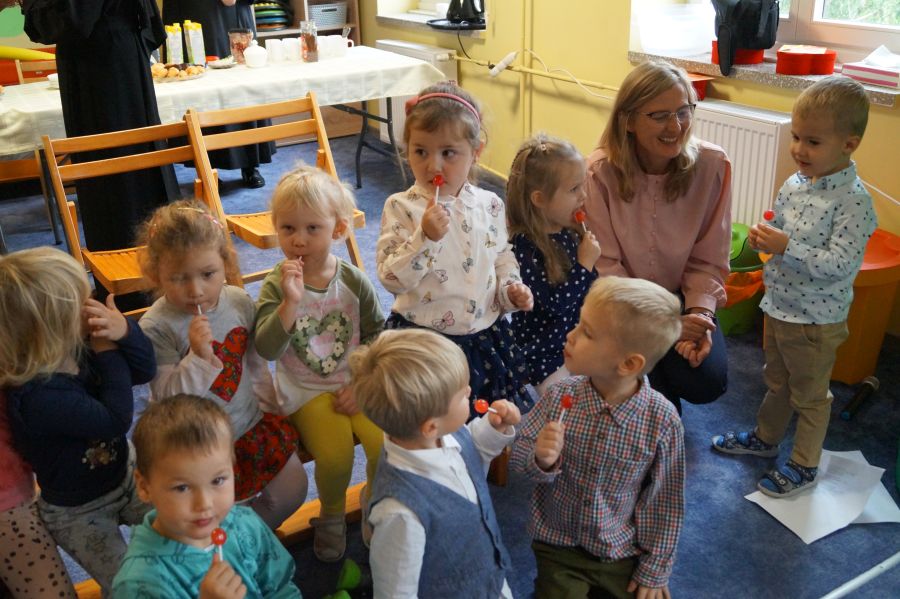 Piątkowe przedpołudnie upłynęło w sympatycznej atmosferze składanych życzeń i podziękowań wszystkim pracownikom naszego przedszkola. Dzieci starsze przygotowały piękny montaż słowno- muzyczny pod kierunkiem p. Kasi i p. Michaliny. s. Dyrektor przygotowała niespodzianki prosto z serca. Kadra mogła wspólnie wypić kawę, chwilę porozmawiać, a dzieci delektowały się smakami „Psiego Patrolu” 😉