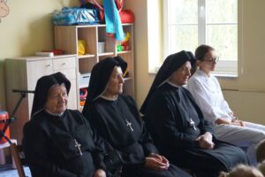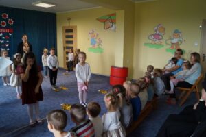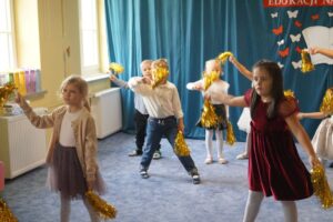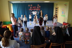 Jest taki dzień, kiedy świętuje cała społeczność przedszkola- Dzień Edukacji Narodowej. Dzieci starsze pięknie przygotowały montaż słowno- muzyczny pod kierunkiem pań i siostry. Maluszki w skupieniu oglądały występ kolegów, a pracownicy mogli na chwilę się zatrzymać i cieszyć dobrym słowem płynącym od wychowanków. Dziękujemy także wszystkim rodzicom, którzy obdarzyli nas dzisiaj życzeniami, dobrym słowem i niespodziankami.