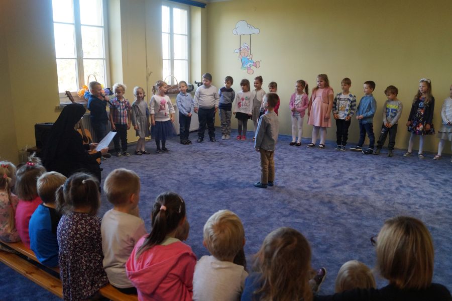 Wielkie święto w całym przedszkolu czyli Dzień Edukacji Narodowej. Tradycyjnie już grupa starsza przygotowała montaż słowno – muzyczny, składając życzenia wszystkim pracownikom. Bardzo dziękujemy za wszystkie słowa i gesty życzliwości, także ze strony rodziców naszych przedszkolaków.