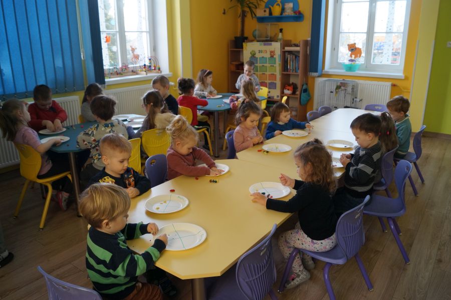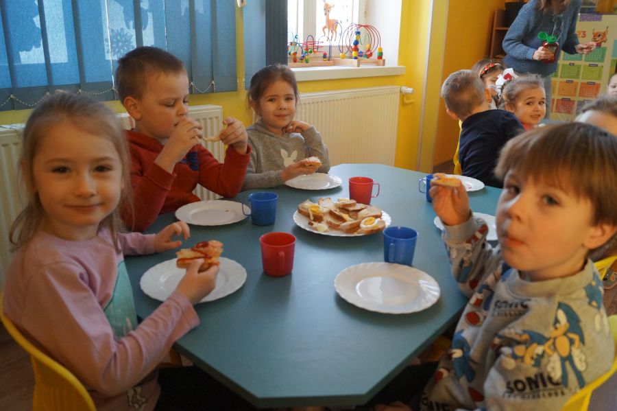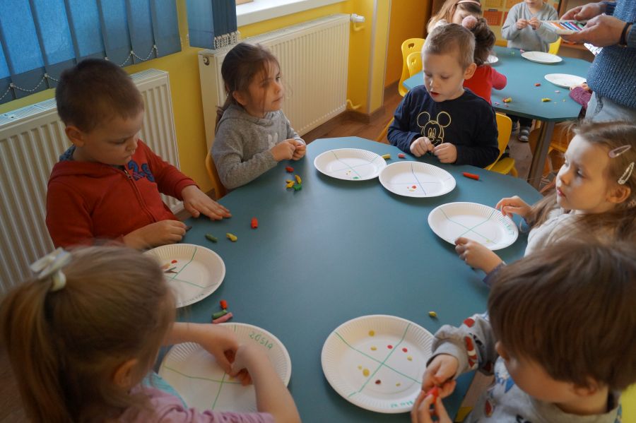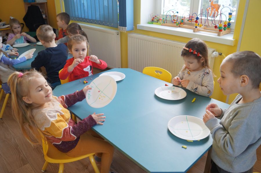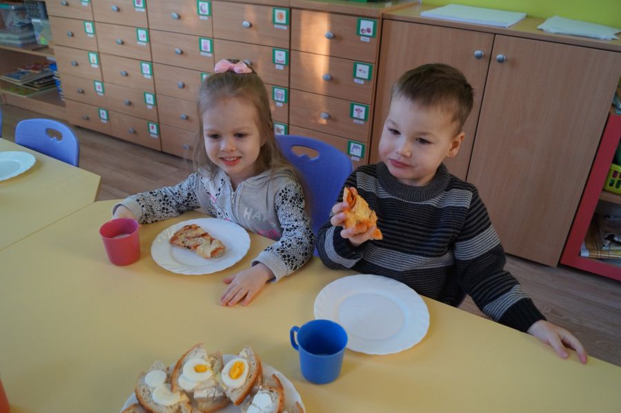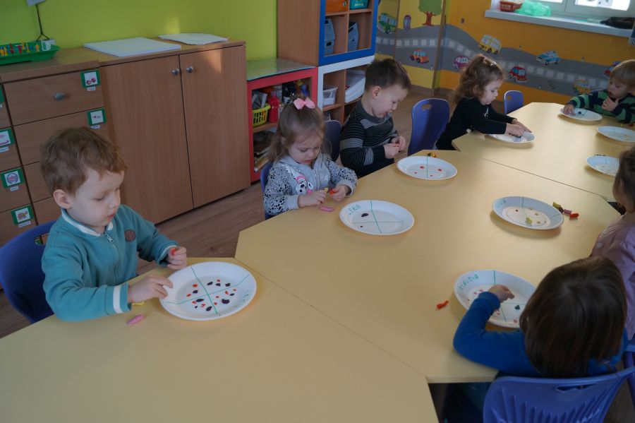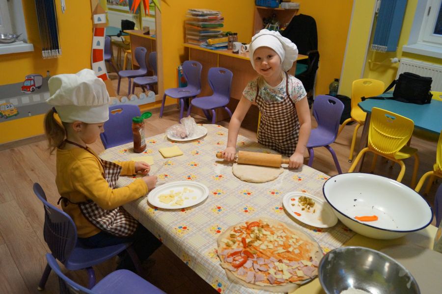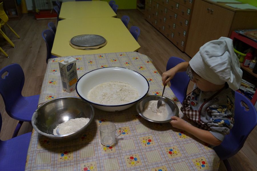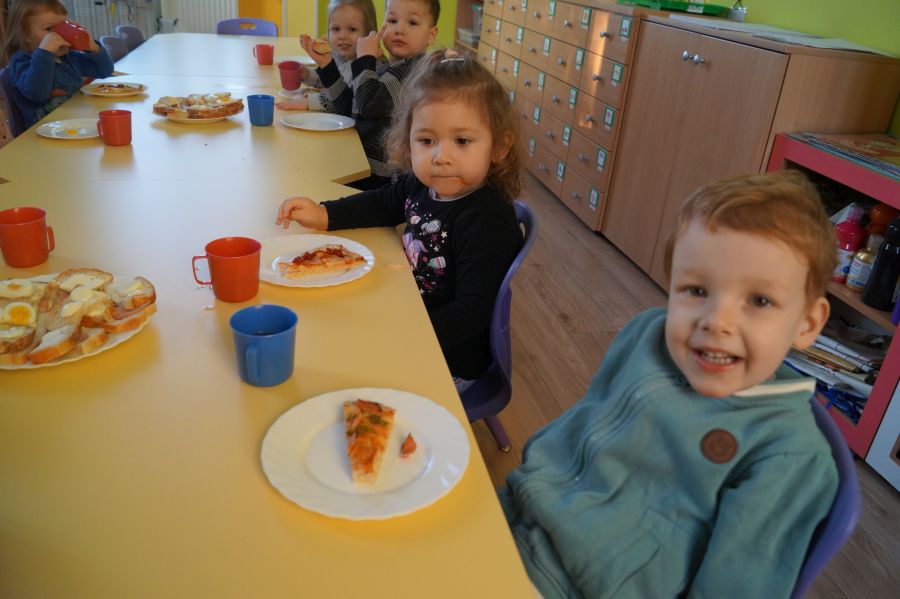Od samego rana w przedszkolu praca wre. Dzieci obchodziły „Dzień pizzy”. Przygotowały smaczną pizzę, bawiły się w zabawy ruchowe i przygotowały prace plastyczną.