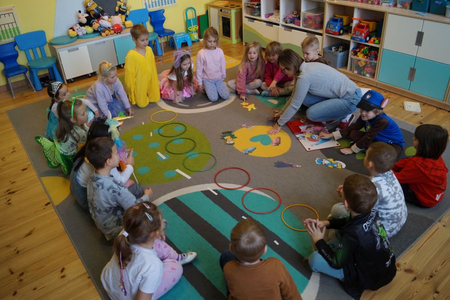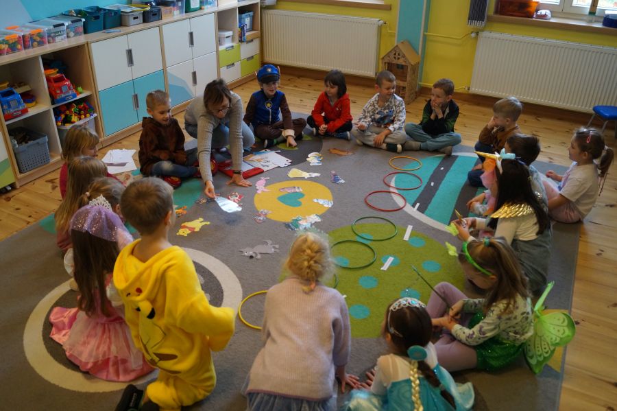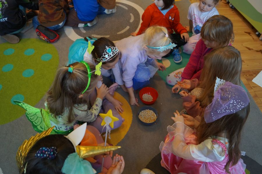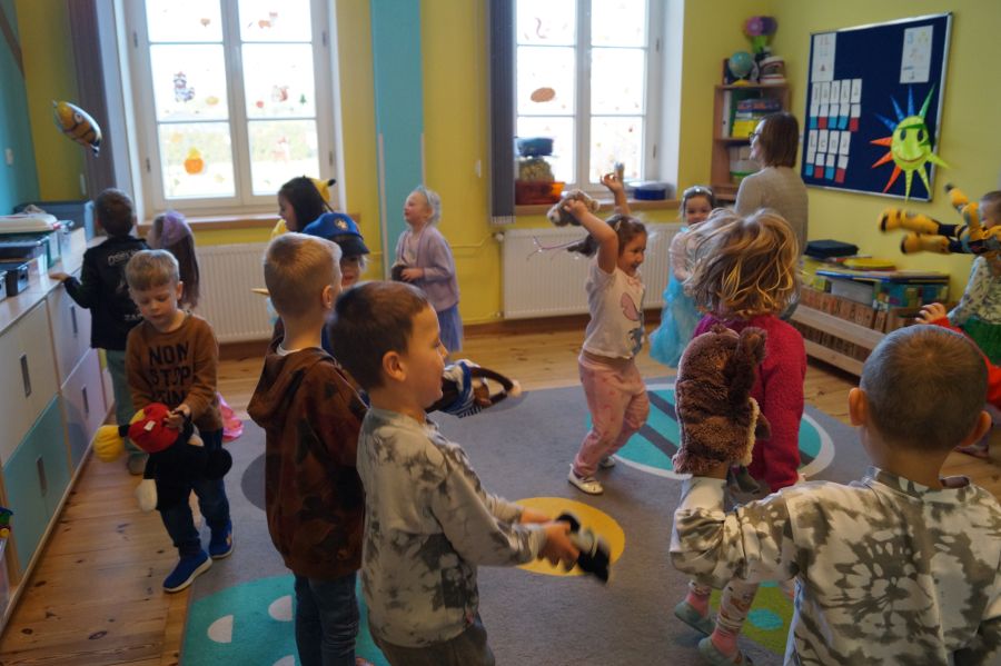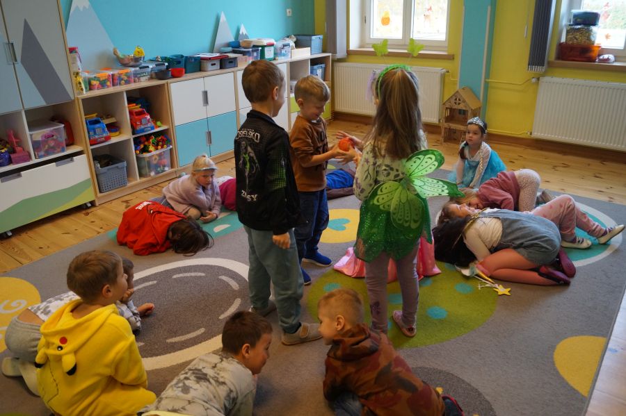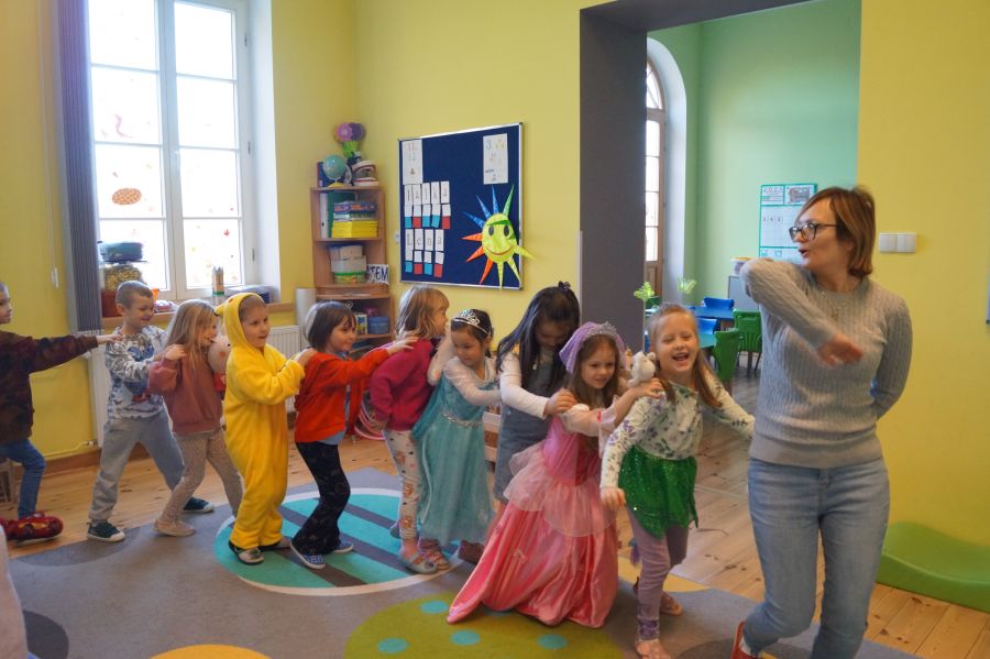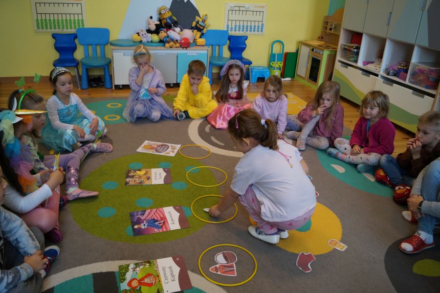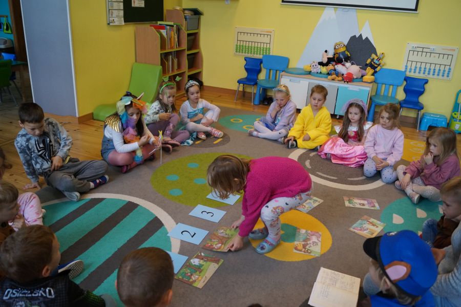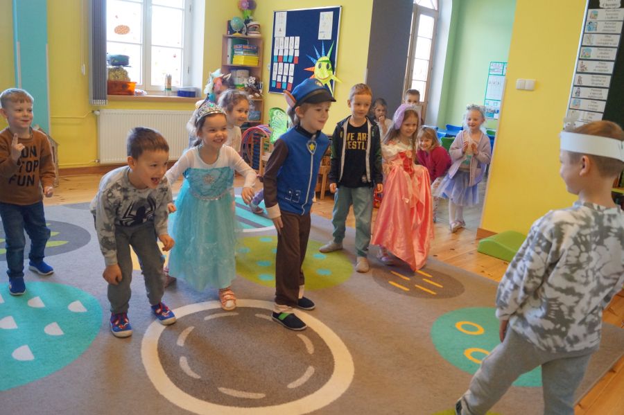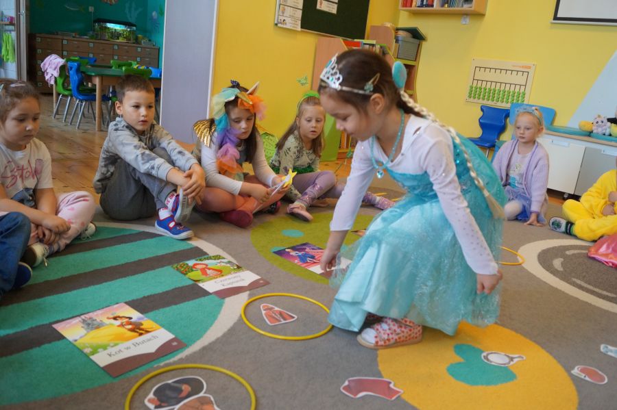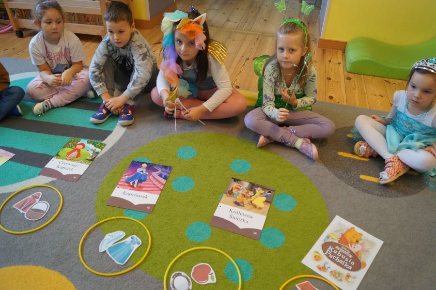 Starszacy utrwalali wiedzę na temat kultowych bajek poprzez zabawy i gry dydaktyczne. Dzieci poznały ponadto, jakich wartości uczą bohaterowie danych bajek. Na zakończenie tego wyjątkowego dnia odbył się bajkowy bal.