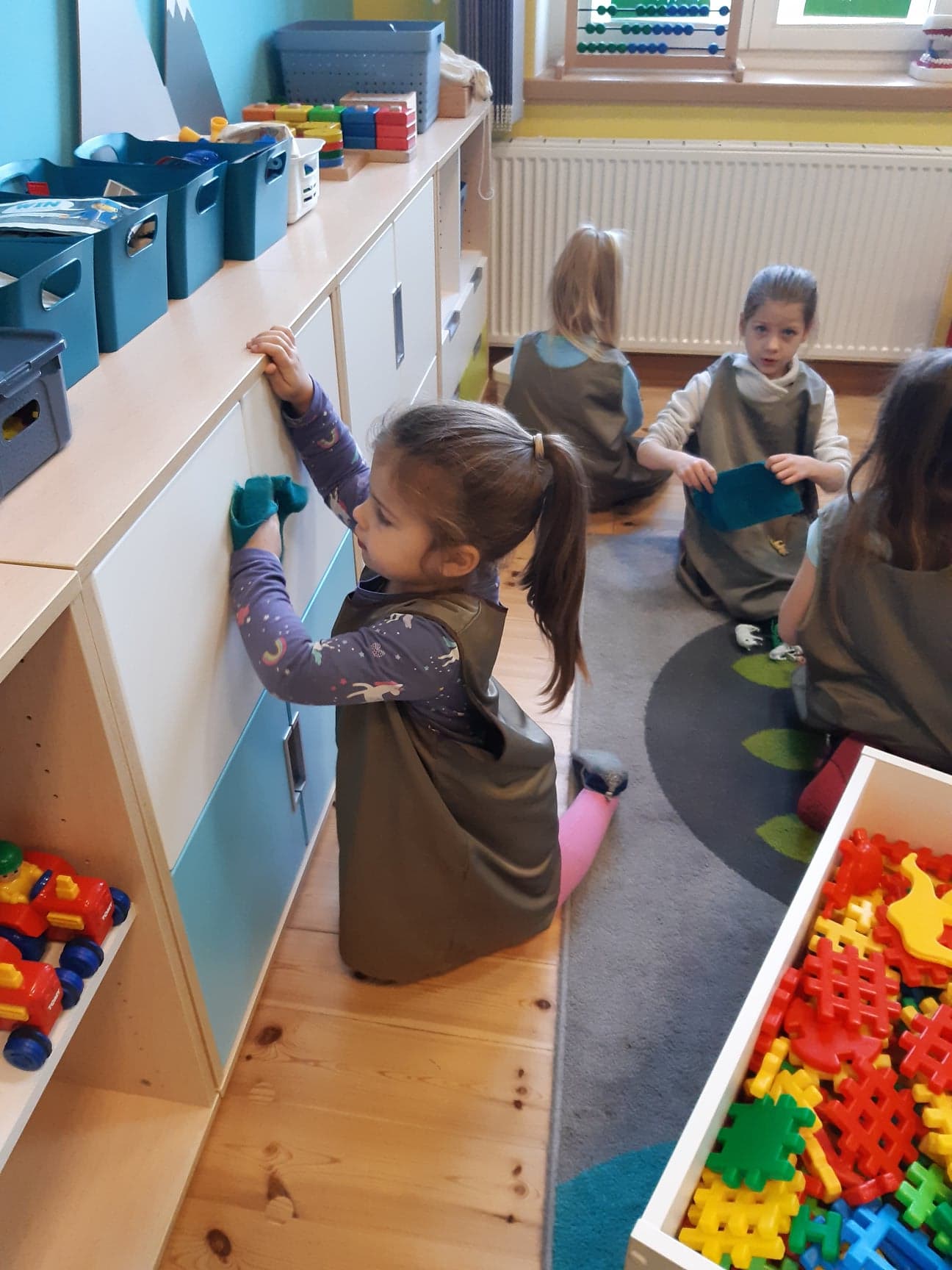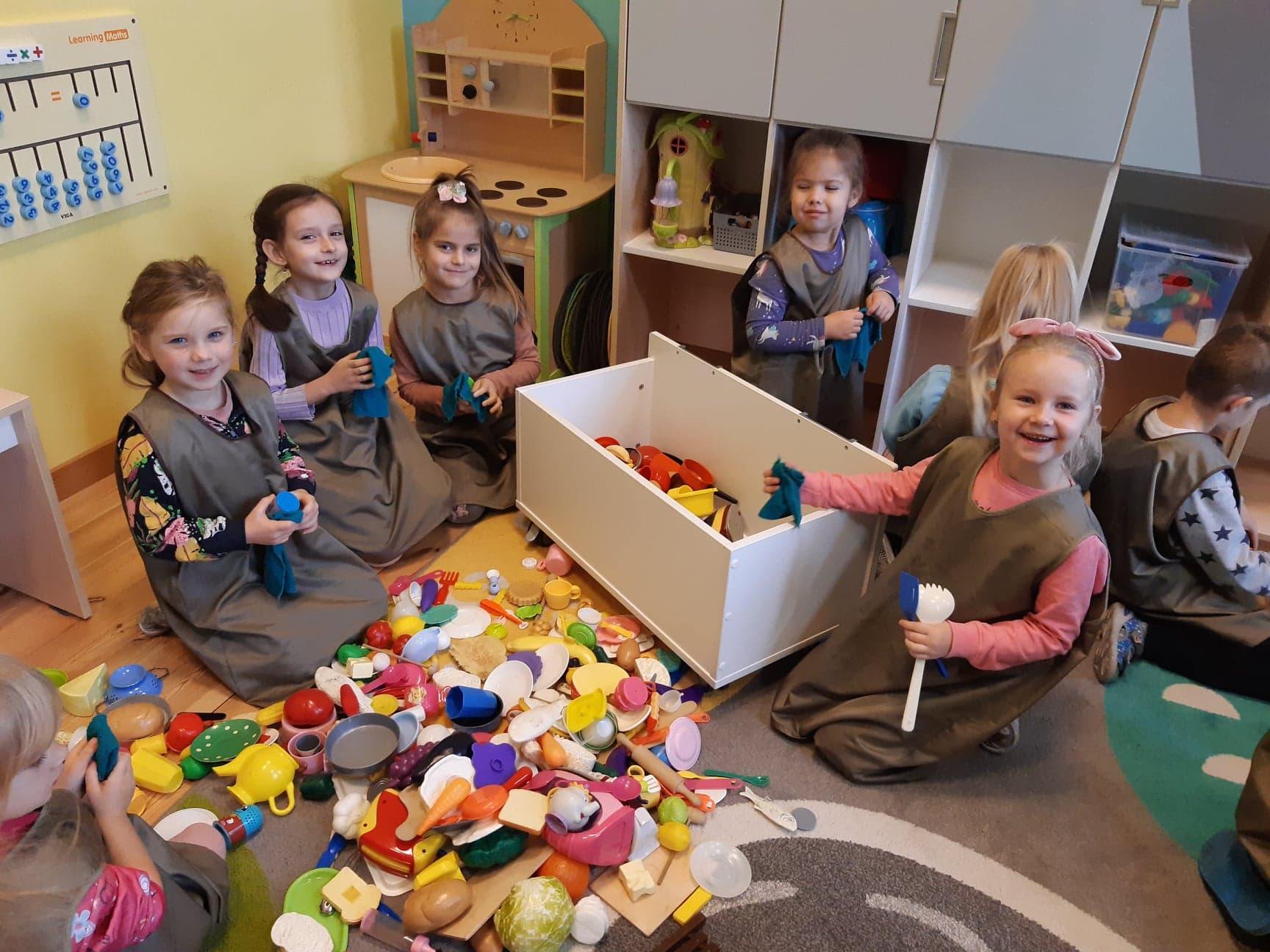 Wszyscy przedszkolacy chętnie podejmują czynności higieniczno- porządkowe w swoich salach. Mamy nadzieję, że w domach rodzinnych równie chętnie pomagają rodzicom 😉