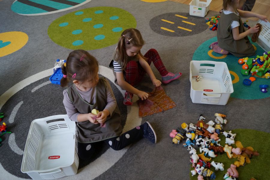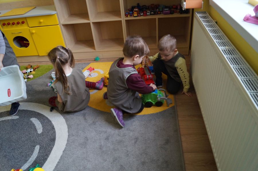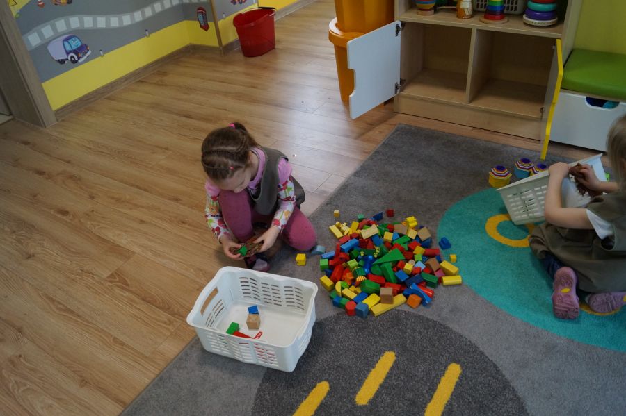 Nasze maluchy potrafią już coraz więcej, co widać także w precyzji ruchów. Dzisiaj chętnie podjęły czynności higieniczno- porządkowe w kącikach zabaw.