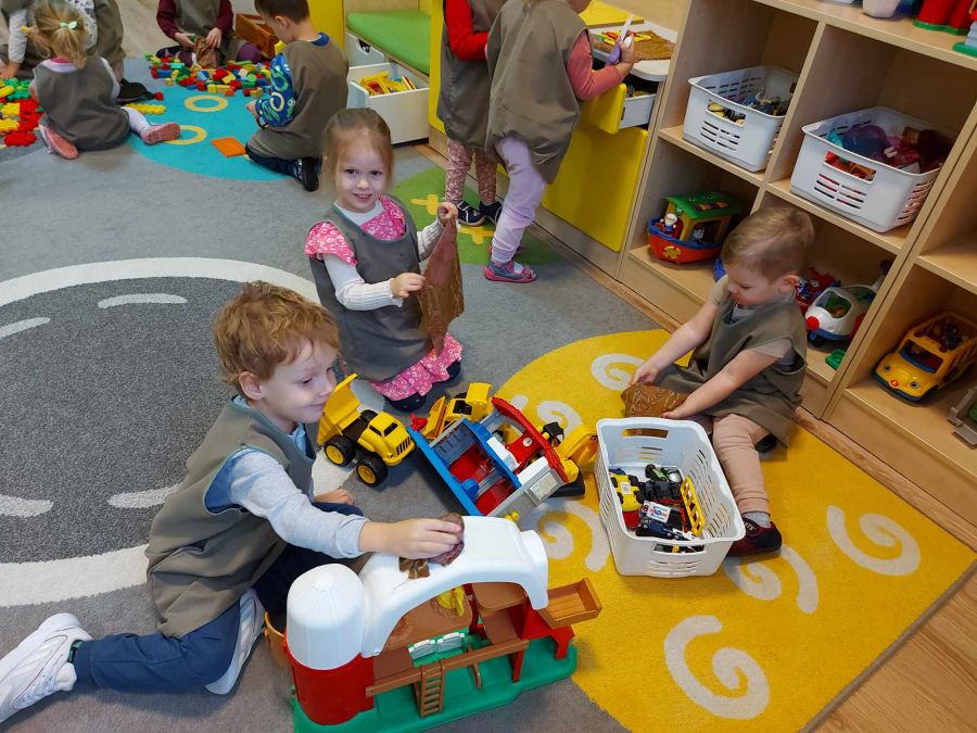 Nasze maluchy dzielnie podjęły się po raz kolejny sprzątania swojej sali. Zobaczcie sami.. Dzień Pracusia w grupie młodszej.