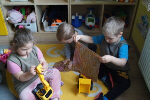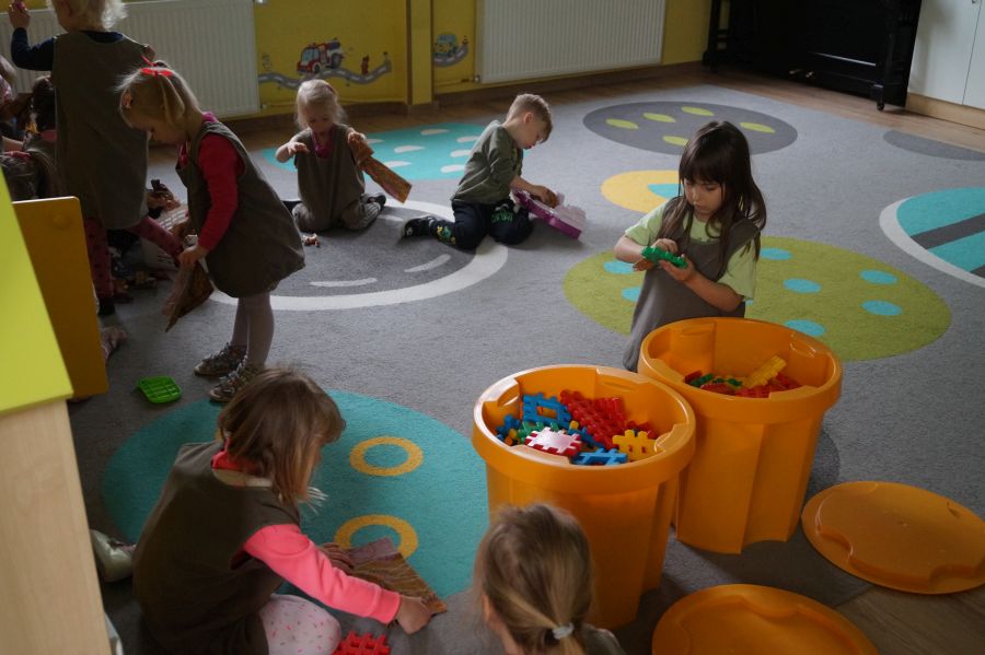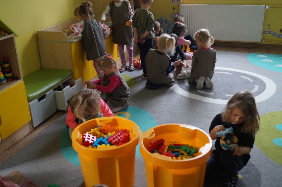 Dzień Pracusia u maluszków. Dzisiaj dzieci bardzo chętnie i szybko zrobiły dokładne porządki w sali. Dzień Pracusia w grupie młodszej.