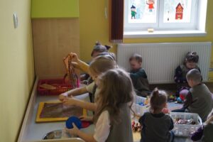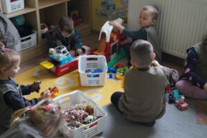 Dzisiaj u Stokrotek pracowity dzień. Dzieci dzielnie i sumiennie sprzątały swoje zabawki. Z efektów były bardzo zadowolone.