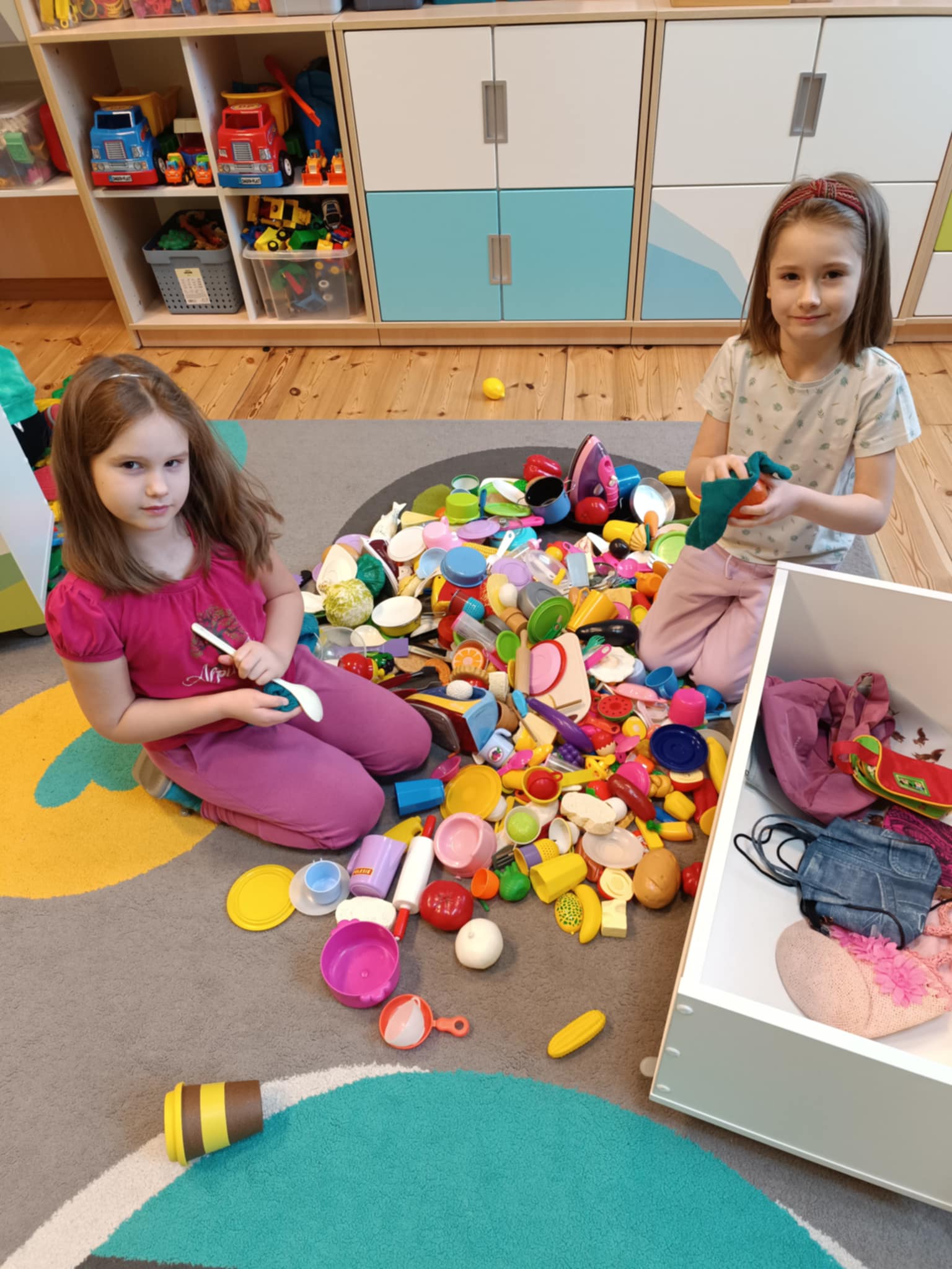 Jutro ważny dzień, bo nasze przedszkole odwiedzą dziadkowie. Dlatego Bratki postanowiły posprzątać swoją salę.