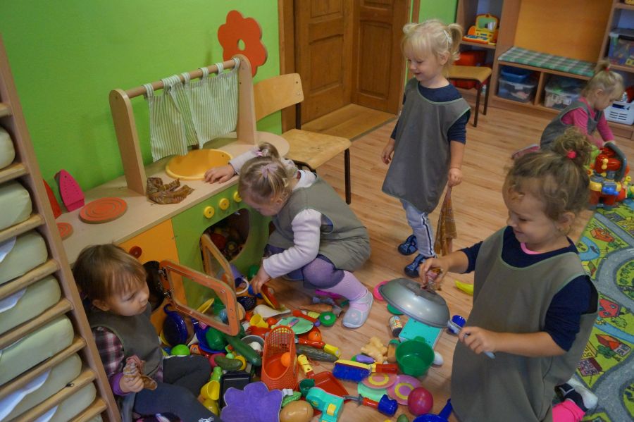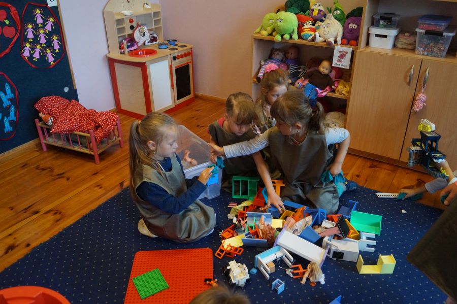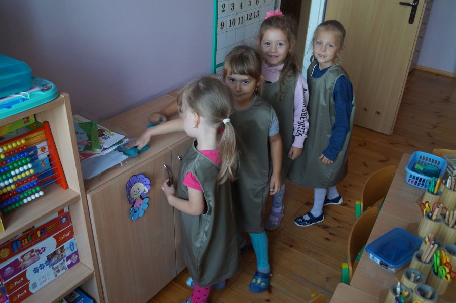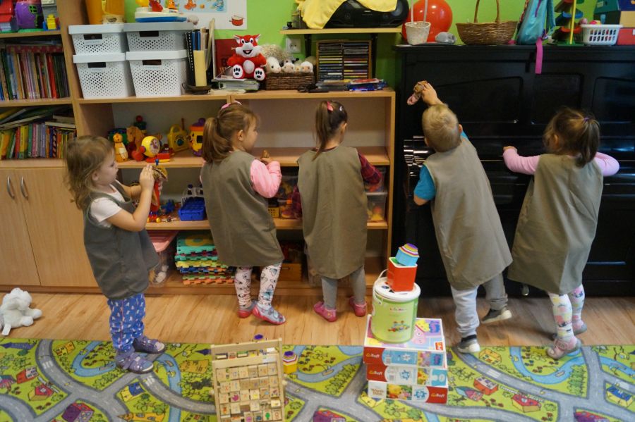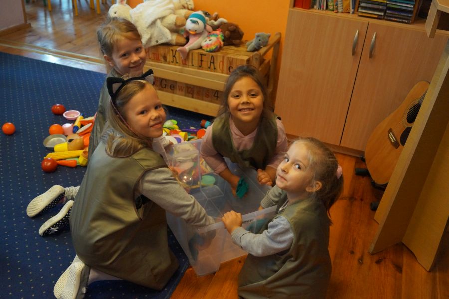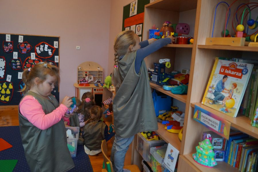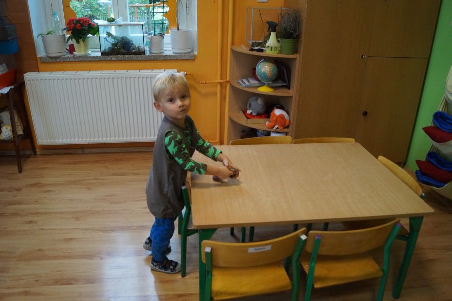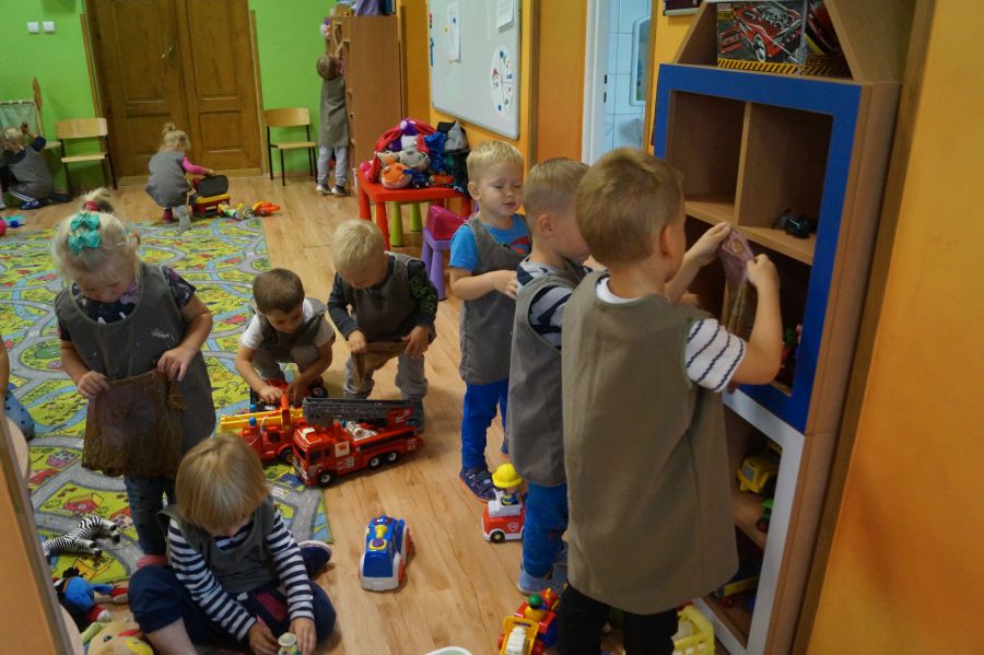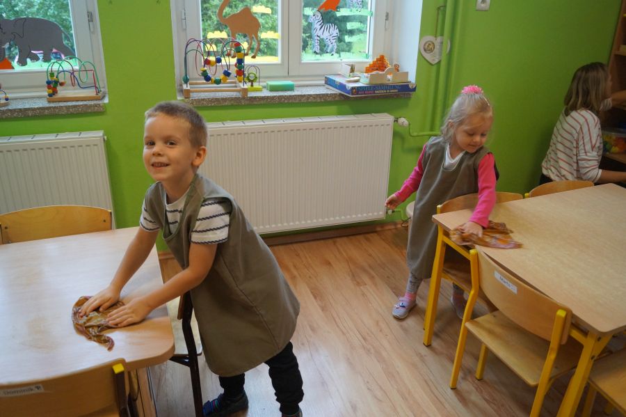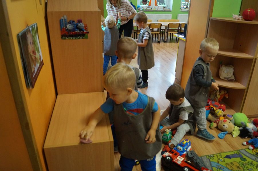 Obie grupy zabrały się dzisiaj za porządki w swoich salach. Wszyscy chętnie podjęli to zadanie, nawet dzieci młodsze, którym jeszcze ciężko przychodzi rozstanie z rodzicami.