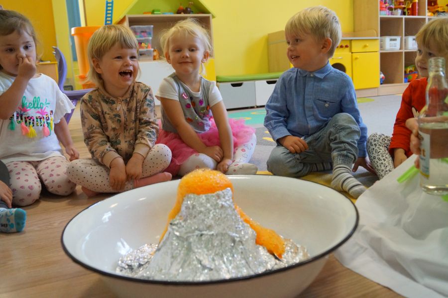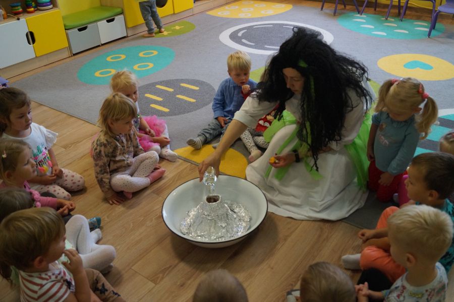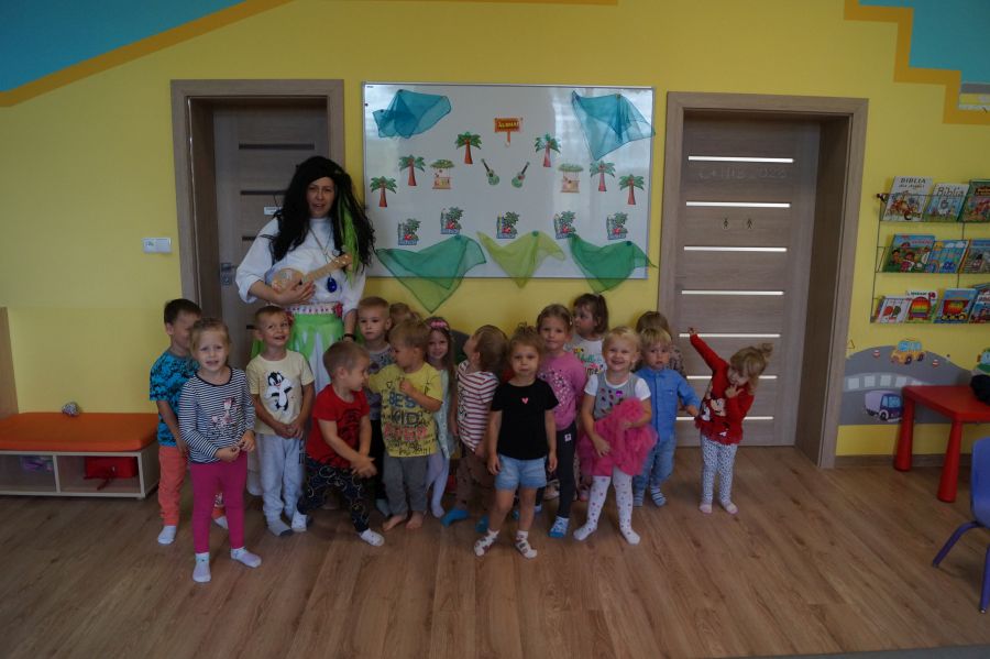 W piękną wrześniową środę nasze maluchy wybrały się na zagraniczną wycieczkę ;). Tak przeżyliśmy „Dzień Przedszkolaka”. Był lot samolotem na Hawaje, tańce, zwiedzanie wyspy, szukanie ananasów i kokosów, smakowanie lokalnych przekąsek a na koniec zobaczyliśmy jak wygląda wybuch wulkanu- taki w skali mikro. Udało się nam też stworzyć portret małych Hawajczyków. Chętne dzieci pozowały także w foto- budce.
