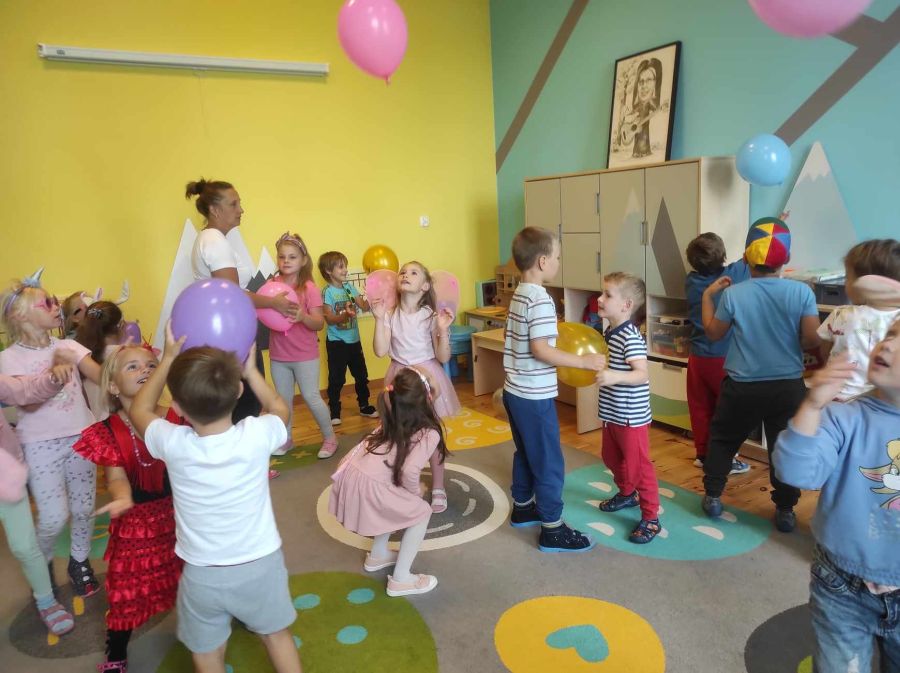 Starszacy przeżyli dzisiaj bardzo miły dzień, obchodząc „Dzień Przedszkolaka”. Dzieci mogły przynieść z domów swoje własne zabawne akcesoria. Chętnie brały udział w zabawach tanecznych i nie tylko. Wszyscy zostali nagrodzeni medalami super przedszkolaka. Ponadto z radością ustawiały się w kolejce do „foto- budki”.