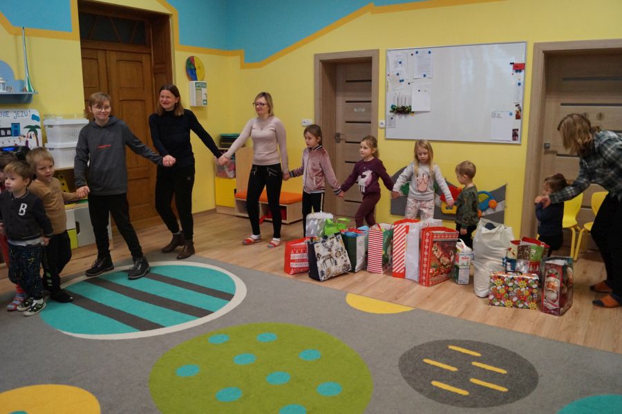 Przeżywając „dzień wolontariatu” staraliśmy się ukazać dzieciom idee bezinteresownej pomocy innym. Na zaproszenie p. Katarzyny Gackowskiej do przedszkola przyjechała p. Karolina wraz z synem Igorem, którzy byli adresatami akcji „Świąteczna paczka”. Dziękujemy wszystkim rodzicom, pracownikom, którzy przynieśli dary dla tej rodziny.