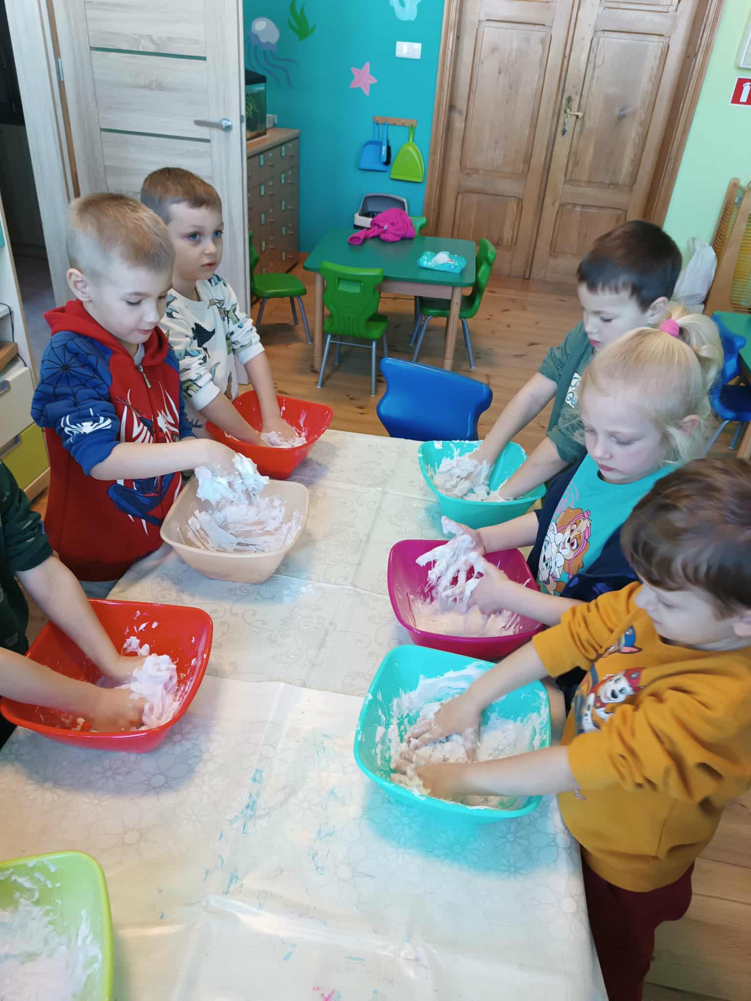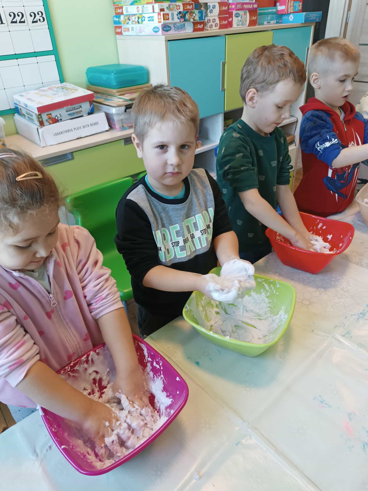 Starszacy w ramach programu własnego robiły na dzisiejszych zajęciach ciastolinę. Sprawiło im to wiele frajdy i radości.
