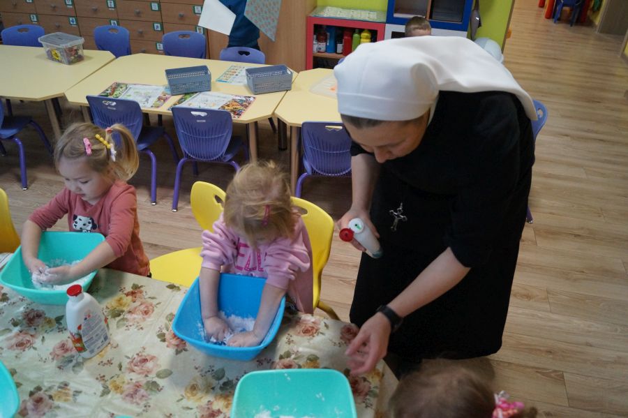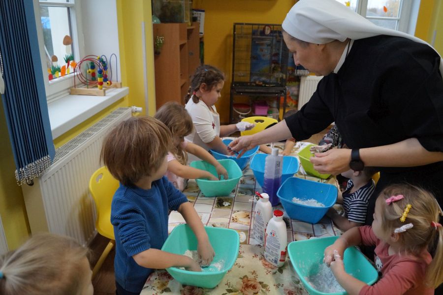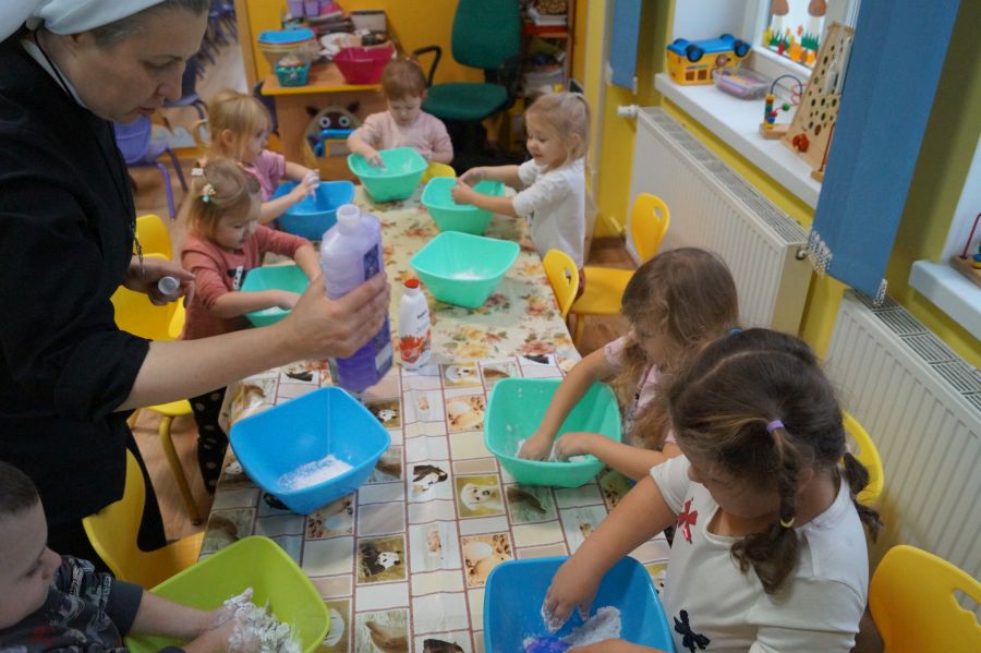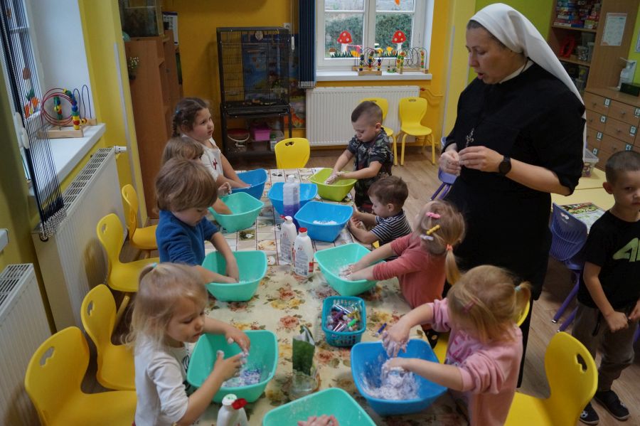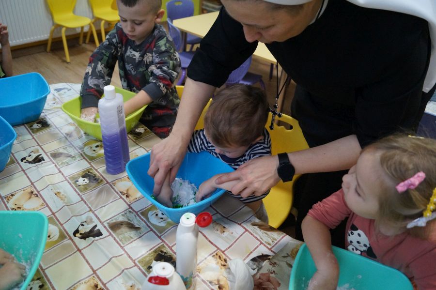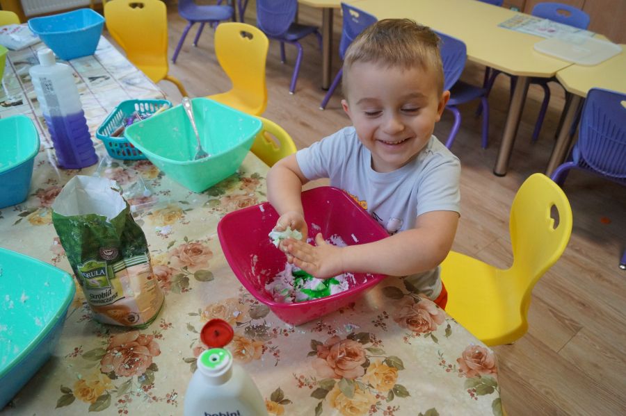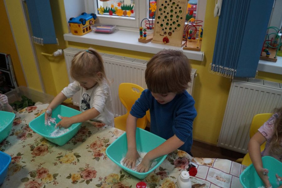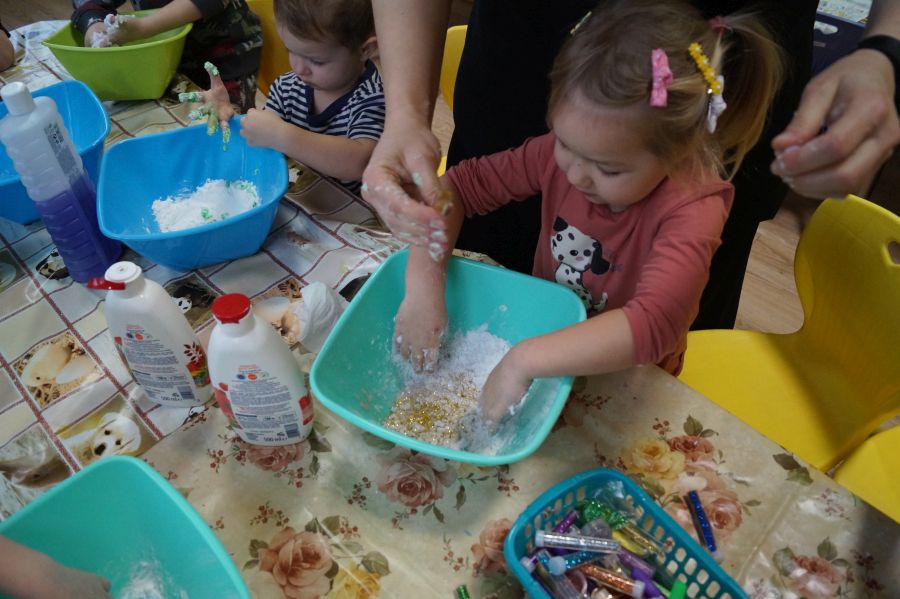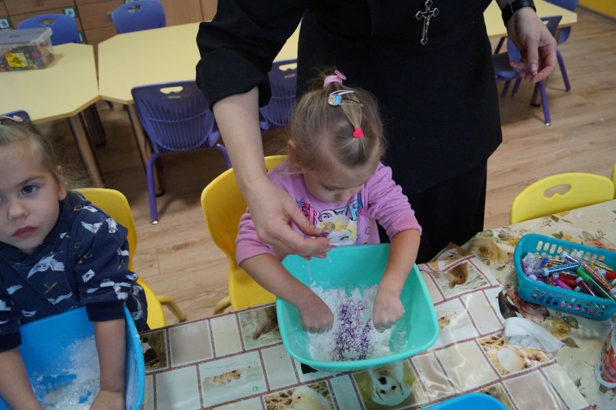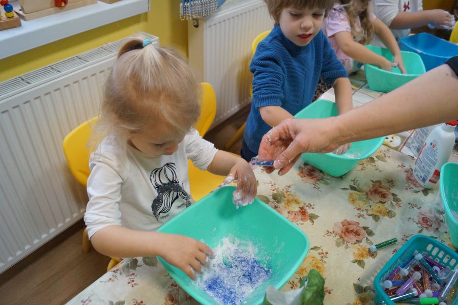 W ramach programu własnego „Dzień zabaw kreatywnych” dzieci młodsze zrobiły własną ciastolinę. Przepis rzeczywiście dziecinnie prosty ;)- mąka ziemniaczana, mydło dla dzieci- pięknie pachnące, kolorowe- oraz brokat.