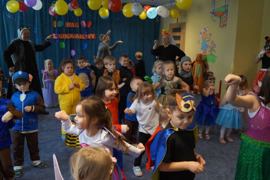 Tegoroczny bal był bardzo udany. Dzieci wybiegane, wytańczone i wyskakane 😉
