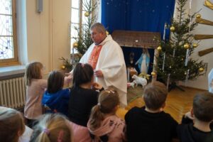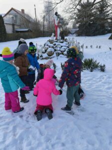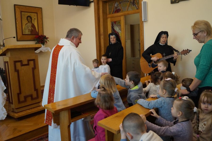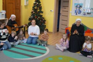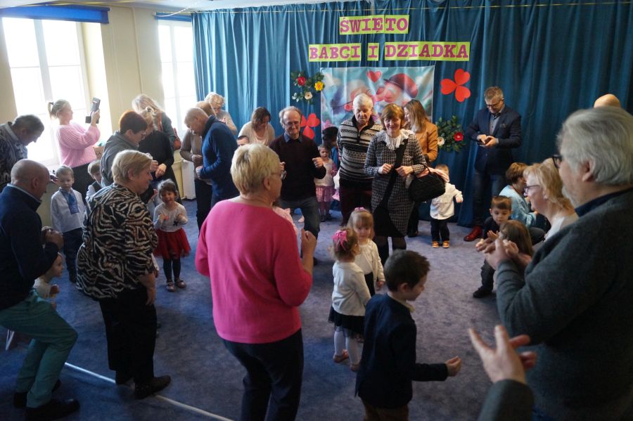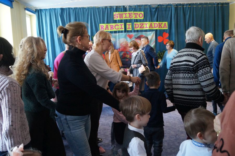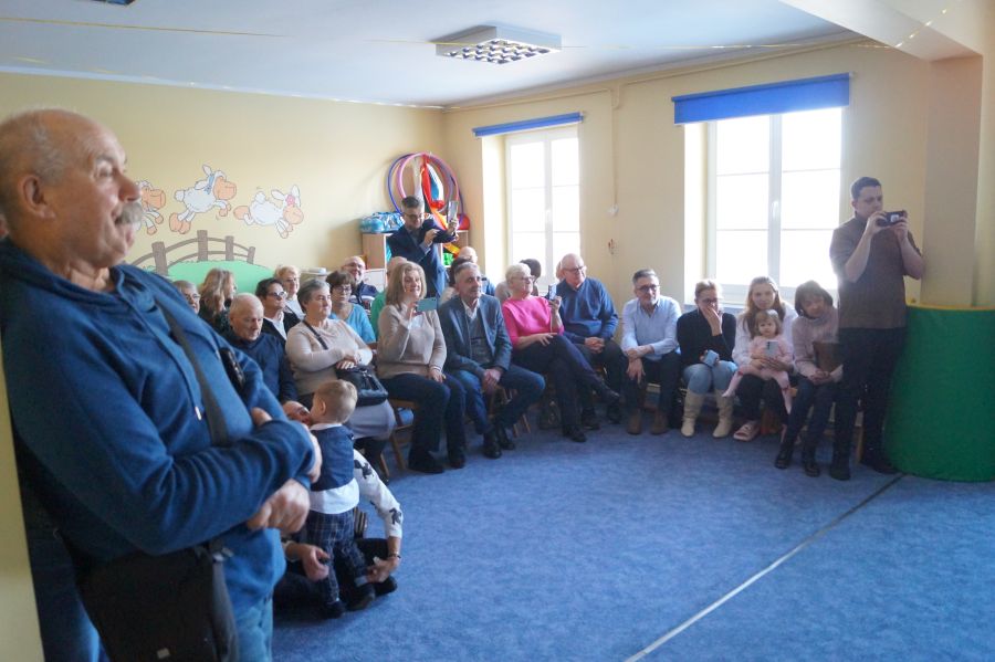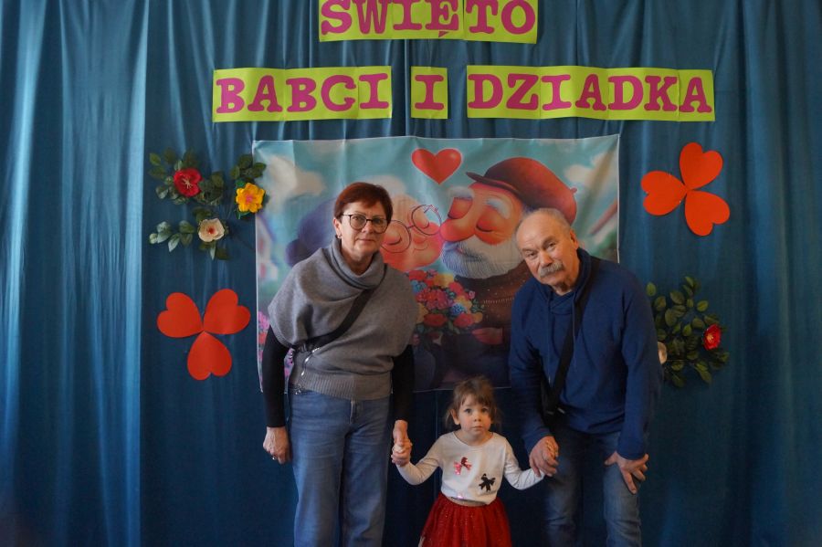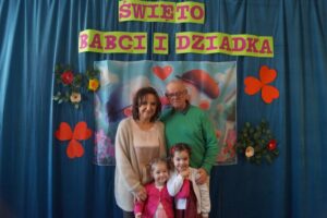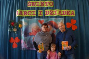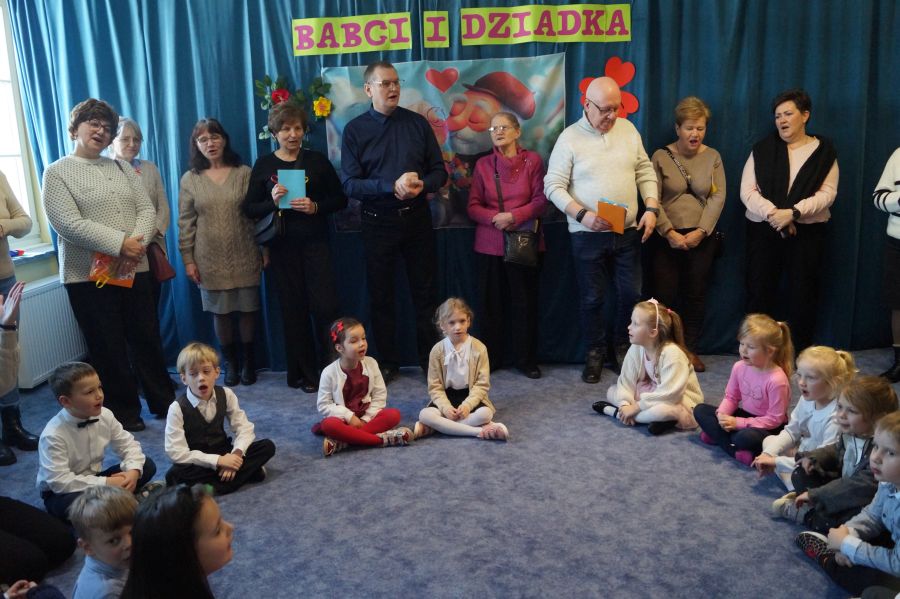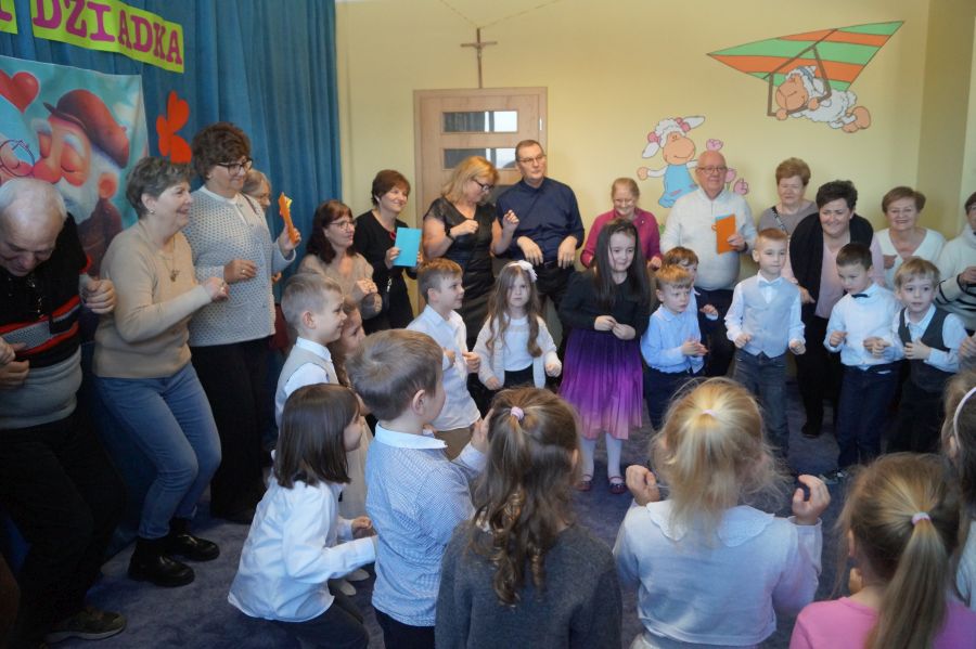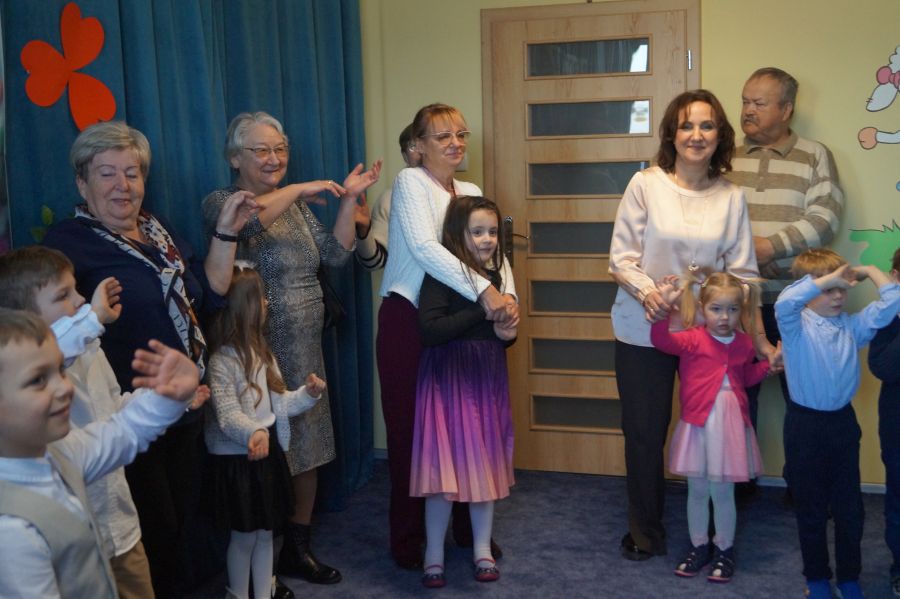 Grupa starsza przygotowała dla swoich dziadków montaż słowno- muzyczny oraz zaprosiła ich do wspólnego kolędowania.