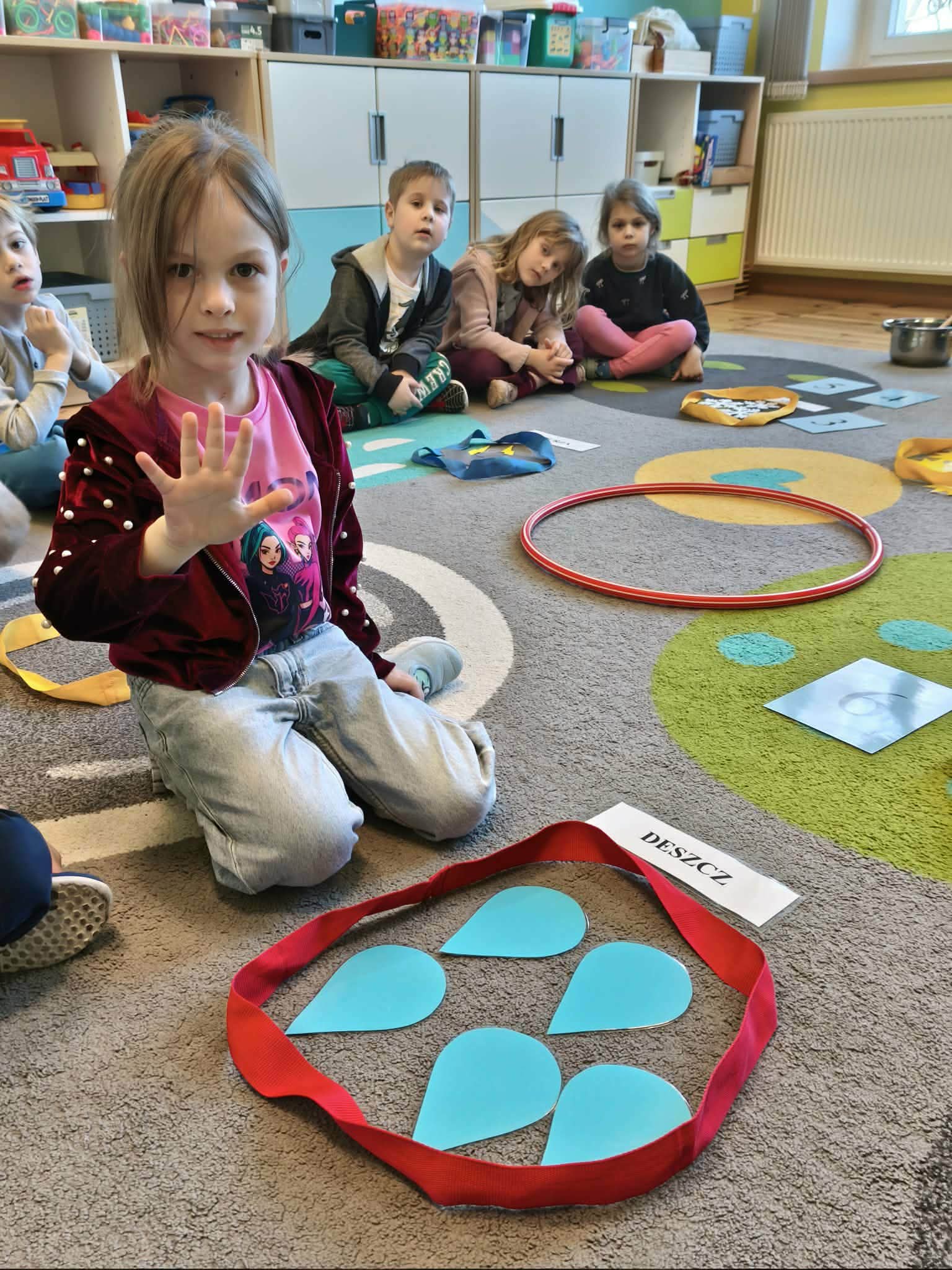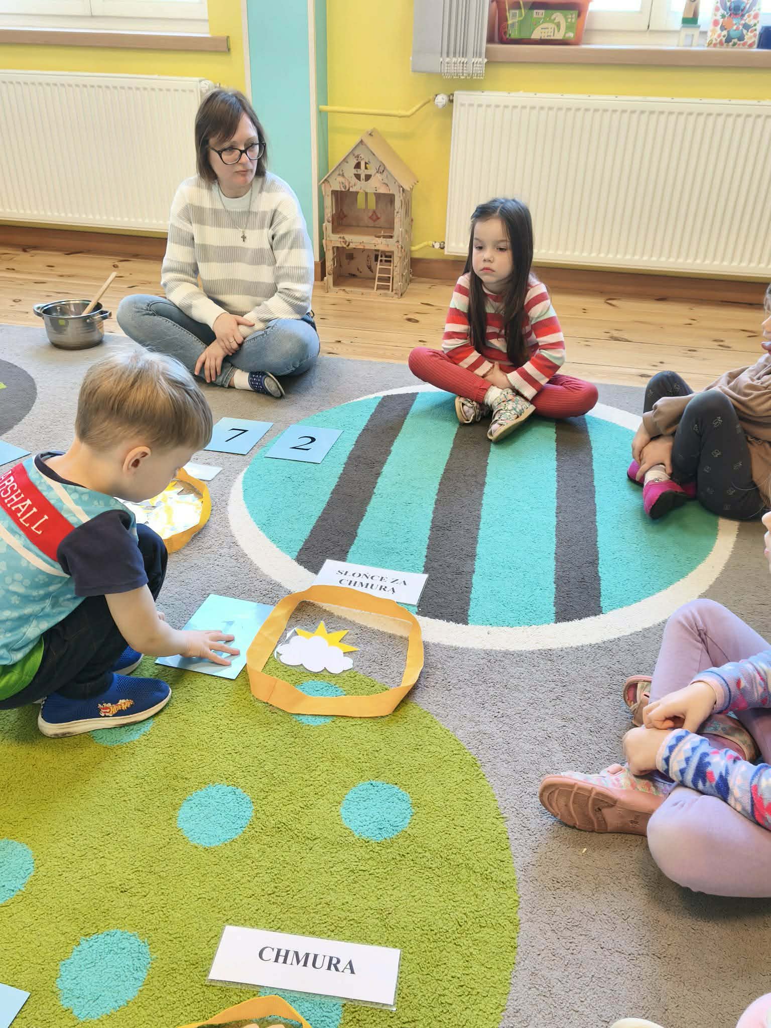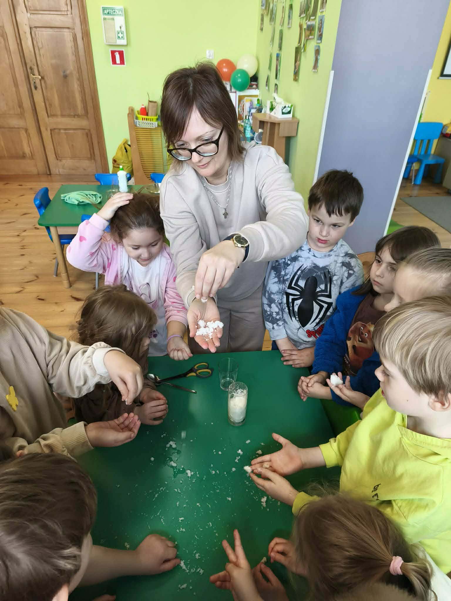 Grupa starsza podczas zajęć poznała znaczenie przysłowia „W marcu jak w garncu”. Dzieci wspólnie opracowały przepis na marcową pogodę z zastosowaniem zabaw matematycznych: segregowały, przeliczały. Ponadto wzięły udział w pogodowych eksperymentach.