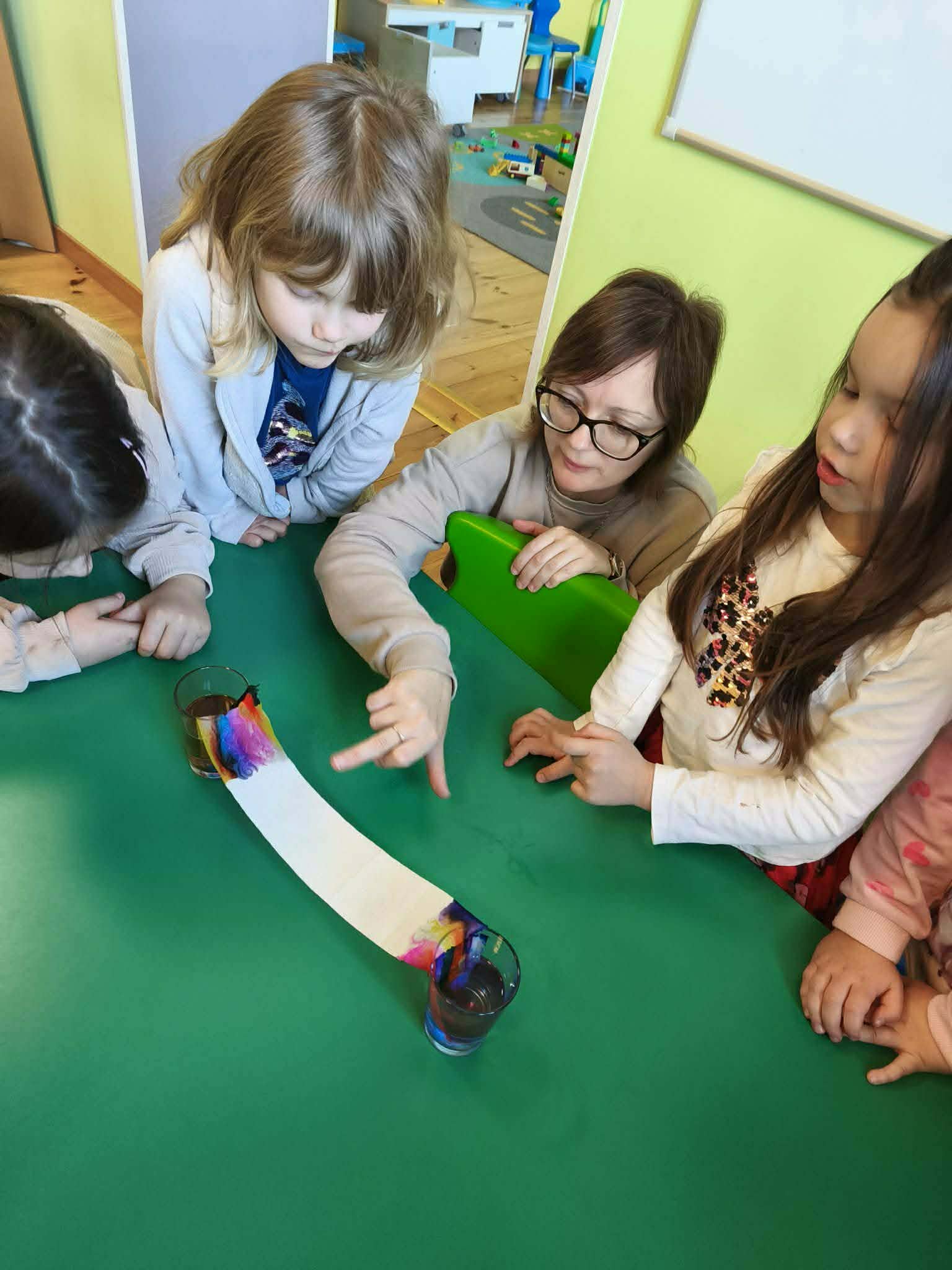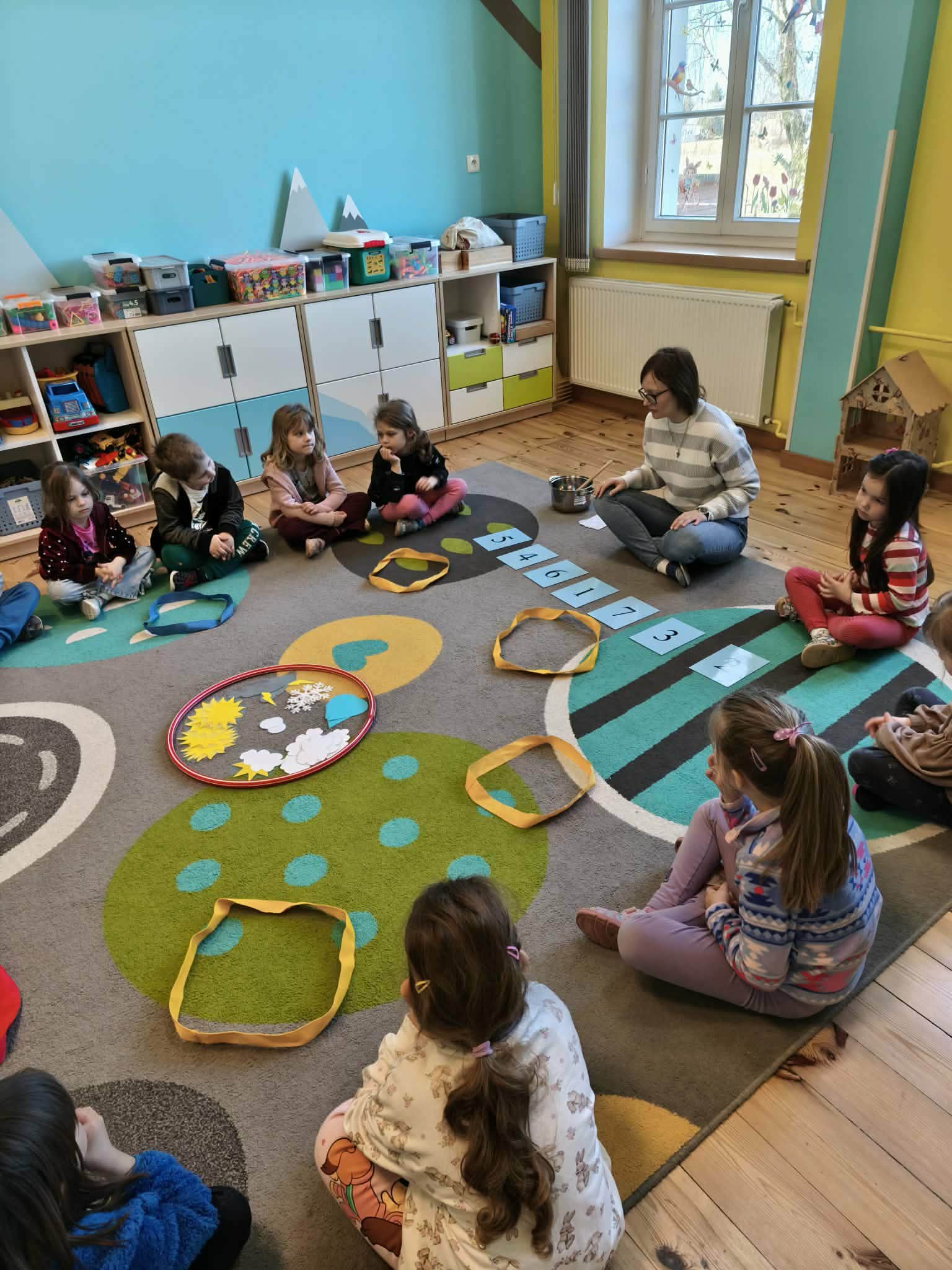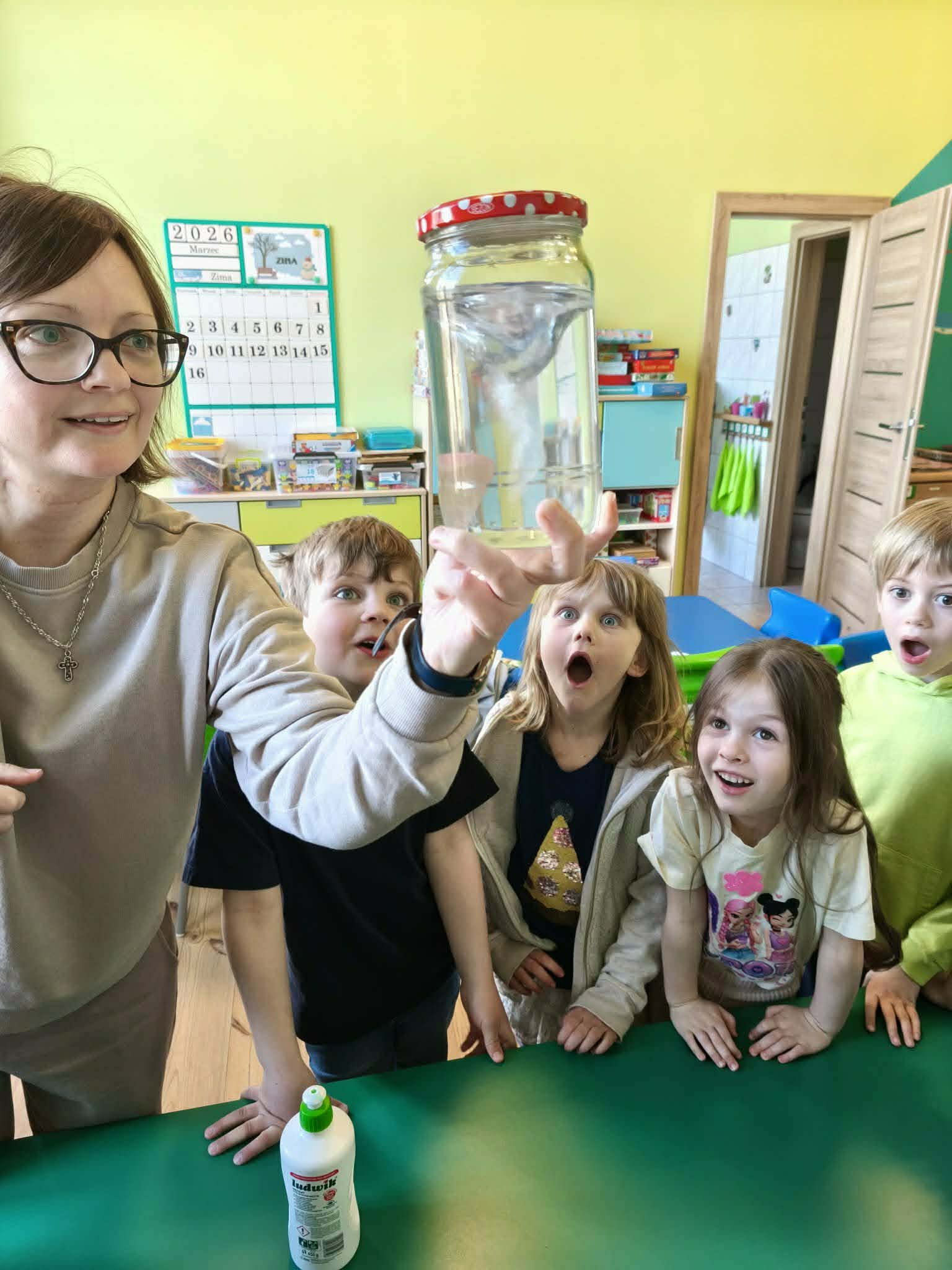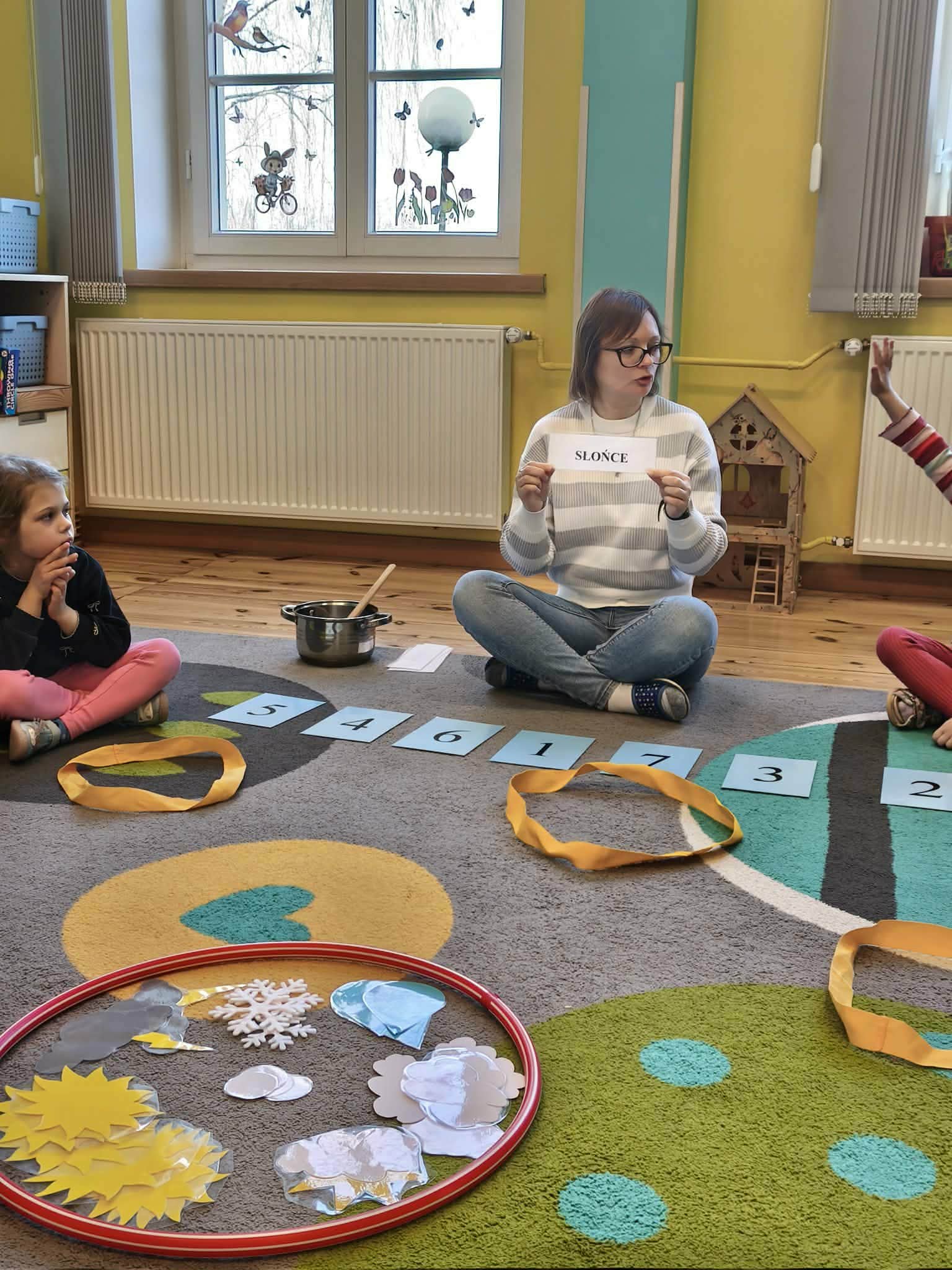 Grupa starsza podczas zajęć poznała znaczenie przysłowia „W marcu jak w garncu”. Dzieci wspólnie opracowały przepis na marcową pogodę z zastosowaniem zabaw matematycznych: segregowały, przeliczały. Ponadto wzięły udział w pogodowych eksperymentach.