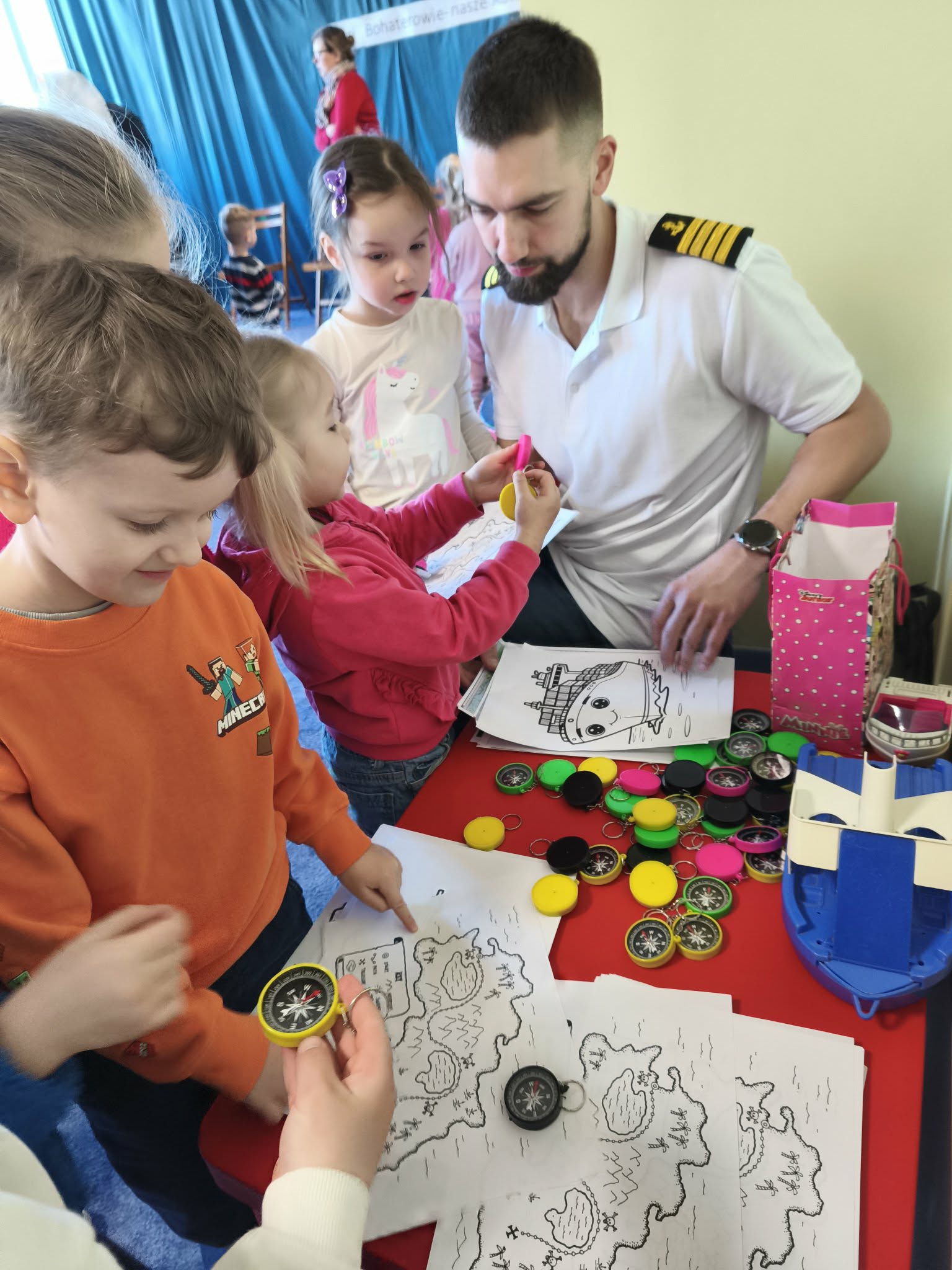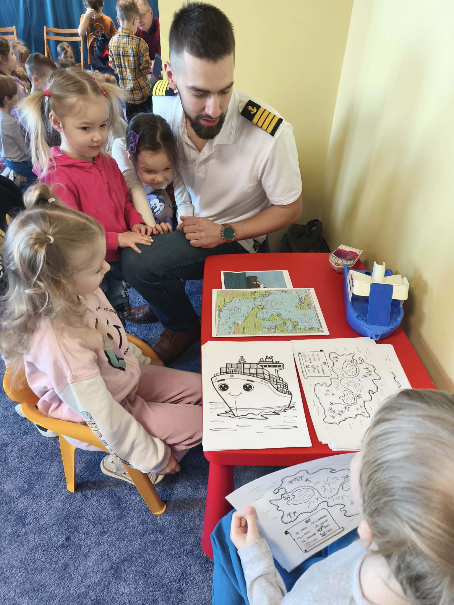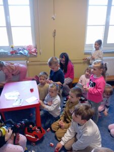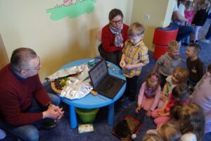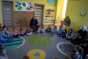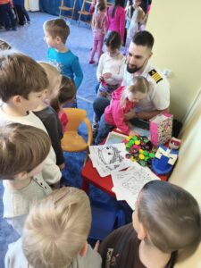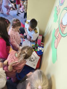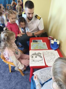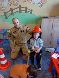 Dzisiaj w przedszkolu niecodzienne wydarzenia- spotkanie z rodzicami w ramach doradztwa zawodowego. Jesteśmy wdzięczni naszym ekspertom- państwu Małgorzacie i Dariuszowi, panu Dariuszowi, panu Danielowi i panu Maciejowi. Dla dzieci była to niezwykła okazja poznać ciekawe zawody- strażak, maszynista, kapitan statku, rolnicy/ hodowcy. Przedszkolacy sami podejmowali decyzję do kogo podejdą i o co zapytają, co było bardzo interesującym doświadczeniem.